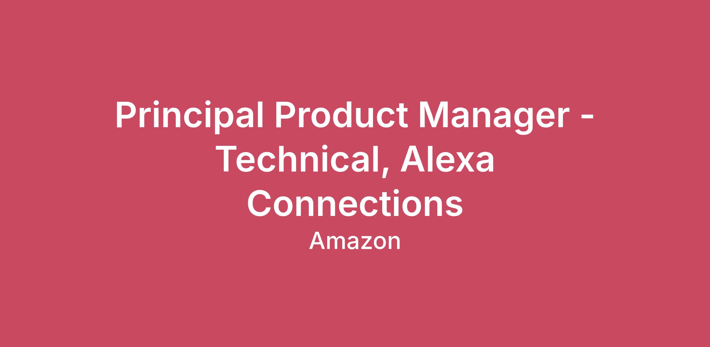 Come help us build the worlds most personal and proactive AI assistant with Alexa+. With over 600 million Alexa devices now out in the world, the latest advancements in generative AI have unlocked new possibilities—enabling us to reimagine the personal communication experience in our pursuit of making customers' lives better and easier every day.Our vision at Alexa Connections is to build the most trusted AI assistant that helps our customers gets things done and creates moments of joy. We build delightful Communication Experiences for connecting within customers household (Announcements, Drop-In's), with their community (Video Calling, Phone Number calling, Emailing, Texting, Sharing) and with AI for improved productivity (Calendar/Task extraction). We also build real time multi-modal AI primitives that help serve customers across Amazon portfolio of devices that include Alexa, FireTV, Ring etc. Generative AI is deeply embedded in our product development life cycle across all our experiences and primitives.If you’re passionate about building magical experiences for customers, while solving complex technical problems, then this role is for you. You will operate at the intersection of large language models, real time communications, voice and graphical user interfaces, and mixed reality to deliver delightful experiences for end customers.Come join us to invent the future of how billion's of customers will connect with and through their virtual AI assistants.Key job responsibilitiesAs a Principal Product Manager - Technical in Alexa Connections, you will bring AI-Native product building skills to accelerate value for our customers. You will be responsible strategizing and building Alexa communications and real time multi-modal AI experiences. This role is highly cross-functional — you will work closely with engineering, science, design, business intelligence, operations, finance and executive teams to bring features to market and develop and grow business opportunities for Amazon. You will drive products strategies with our industry partners to launch multiple 0-1 product lines. A successful candidate will be highly analytical, able to work effectively in a matrix organization, and adept at synthesizing a variety of technologies and capabilities into high quality, simple products and applications that customers love.About the teamAlexa Connections is a highly distributed team across six Amazon approved sites. We have industry experts in real time communications, computer vision, media processing, consumer facing UX. We imbibe Amazon's Leadership Principles, hold each other accountable and have lots of fun while building a product billions of our users love. You will constantly help us foster a culture where everyone can do their best work.- 8+ years of product or program management, product marketing, business development or technology experience- Bachelor's degree- Experience with feature delivery and tradeoffs of a product- Experience owning/driving roadmap strategy and definition- Experience with end to end product delivery- Experience contributing to engineering discussions around technology decisions and strategy related to a product- Experience technical product management- Experience working directly with Engineers on product enhancements- Experience in project management methodologies, business analysis, or process improvementAmazon is an equal opportunity employer and does not discriminate on the basis of protected veteran status, disability, or other legally protected status.Los Angeles County applicants: Job duties for this position include: work safely and cooperatively with other employees, supervisors, and staff; adhere to standards of excellence despite stressful conditions; communicate effectively and respectfully with employees, supervisors, and staff to ensure exceptional customer service; and follow all federal, state, and local laws and Company policies. Criminal history may have a direct, adverse, and negative relationship with some of the material job duties of this position. These include the duties and responsibilities listed above, as well as the abilities to adhere to company policies, exercise sound judgment, effectively manage stress and work safely and respectfully with others, exhibit trustworthiness and professionalism, and safeguard business operations and the Company’s reputation. Pursuant to the Los Angeles County Fair Chance Ordinance, we will consider for employment qualified applicants with arrest and conviction records.Our inclusive culture empowers Amazonians to deliver the best results for our customers. If you have a disability and need a workplace accommodation or adjustment during the application and hiring process, including support for the interview or onboarding process, please visit https://amazon.jobs/content/en/how-we-hire/accommodations for more information. If the country/region you’re applying in isn’t listed, please contact your Recruiting Partner.The base salary range for this position is listed below. Your Amazon package will include sign-on payments and restricted stock units (RSUs). Final compensation will be determined based on factors including experience, qualifications, and location. Amazon also offers comprehensive benefits including health insurance (medical, dental, vision, prescription, Basic Life & AD&D insurance and option for Supplemental life plans, EAP, Mental Health Support, Medical Advice Line, Flexible Spending Accounts, Adoption and Surrogacy Reimbursement coverage), 401(k) matching, paid time off, and parental leave. Learn more about our benefits at https://amazon.jobs/en/benefits.USA, CA, Sunnyvale - 206,900.00 - 279,900.00 USD annuallyUSA, WA, Seattle - 179,900.00 - 243,400.00 USD annually