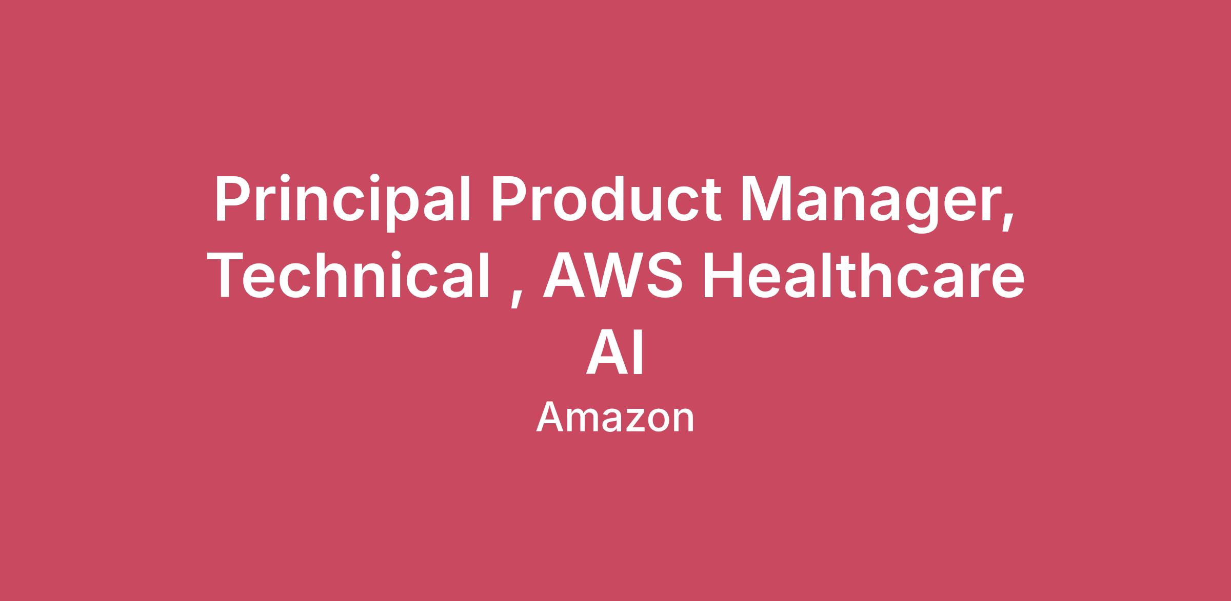 As part of the AWS Applied AI Solutions organization, we have a vision to provide business applications, leveraging Amazon’s unique experience and expertise, that are used by millions of companies worldwide to manage day-to-day operations. We will accomplish this by accelerating our customers’ businesses through delivery of intuitive and differentiated technology solutions that solve enduring business challenges. We blend vision with curiosity and Amazon’s real-world experience to build opinionated, turnkey solutions. Where customers prefer to buy over build, we become their trusted partner with solutions that are no-brainers to buy and easy to use. The AWS Healthcare AI team is looking for a stellar Principal Product Manager - Technical to join the team and build world-class Agentic AI powered for our healthcare customers. Our team's mission is to build fit-for-purpose solutions for our healthcare customers. Our products make it easy for healthcare customers to use Generative and Agentic AI to achieve better outcomes. You will work with a diverse team that is brought together and motivated by work that improves people's lives, while being challenged on a daily basis. In this role, you will be owning one or more products that are in production and getting in on the ground floor of new projects to bring Applied AI solutions to customers worldwide. You will be responsible for revenue and adoption of the services that you will be responsible for. You'll use your passion for technology and solving customer problems to develop and drive product plans to develop an exciting offering for customers.As a Principal Product Manager, you will be part of the larger product leadership community at AWS. This community plays a critical role in the broad business planning, working closely with senior management to develop business targets and resource requirements, influences our long-term technical and business strategy, helps us hire talented team of PMs and ultimately enables us to deliver innovative new solutions rapidly. You will be seen as the subject matter expert for your area of focus within Amazon AI. A successful candidate will bring a passion for technology services, strong business acumen and judgment, proven experience of launching products and building business around them, ability to define ground breaking products, desire to have an industry wide impact and ability to work within a fast moving environment in a large company to rapidly deliver services that have a broad business impact. You will manage and be responsible for understanding customer needs and delivering some of our most strategic technical projects, and have a significant bottom-line impact on our business and competitive position. Your responsibilities will include: Lead Product Definition – Own and drive the customer working backwards strategy, tenets, long-term goals and working backwards documents (press release, FAQ) including customer and market feedback, competitive analysis and business metrics to inform direction.Define Product Vision – Including all aspects to future roadmap, investment, innovation and experimentation.Execution of Product Planning and Development – Including customer goals and business requirements for product release, ensuring implementation is aligned with product goals and requirements, and ownership of product positioning.Lead Product Launch – Own the GTM plan to deliver results that ensure the customer and business goals are met in operational launch plans.Lead Operations – Including monitoring and response to customer feedback, continuous improvement and business growthLead interaction with Technical Team – Including helping the technical team make tradeoffs based on customer requirements, QA/testing of the product. Business reporting - Track revenue and adoption on a daily basis. Own writing business reports on a weekly and monthly basis and review with leadership.Key job responsibilities- Work backwards from customers to build service roadmap and work with engineering and scientists to execute on the roadmap- Creating/revise GTM strategy and be responsible for pricing new features or update pricing for existing features working closely with finance- Work with field and BD team to create customer funnel and drive POC-pilot-ptoduction- Responsible for creating and reporting on the service's revenue and customer traction through weekly and monthly business reports that is shared with leadership. About the teamABOUT AWS:Diverse Experiences Amazon values diverse experiences. Even if you do not meet all of the preferred qualifications and skills listed in the job description, we encourage candidates to apply. If your career is just starting, hasn’t followed a traditional path, or includes alternative experiences, don’t let it stop you from applying. Why AWS Amazon Web Services (AWS) is the world’s most comprehensive and broadly adopted cloud platform. We pioneered cloud computing and never stopped innovating — that’s why customers from the most successful startups to Global 500 companies trust our robust suite of products and services to power their businesses.Work/Life Balance We value work-life harmony. Achieving success at work should never come at the expense of sacrifices at home, which is why flexible work hours and arrangements are part of our culture. When we feel supported in the workplace and at home, there’s nothing we can’t achieve in the cloud. Inclusive Team Culture Here at AWS, it’s in our nature to learn and be curious. Our employee-led affinity groups foster a culture of inclusion that empower us to be proud of our differences. Ongoing events and learning experiences, including our Conversations on Race and Ethnicity and AmazeCon conferences, inspire us to never stop embracing our uniqueness.Mentorship and Career GrowthWe’re continuously raising our performance bar as we strive to become Earth’s Best Employer. That’s why you’ll find endl