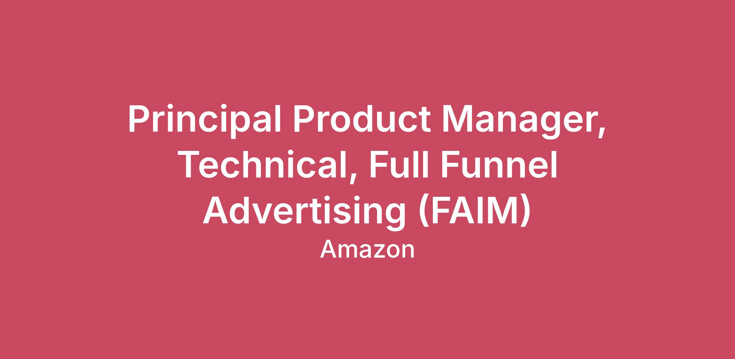 Are you passionate about solving big problems from ground-up? Do you enjoy building new state-of-the-art advertising products at internet scale? Amazon Ads is one of Amazon's fastest growing organizations. We are at the forefront of re-inventing advertising experiences with full-funnel advertising, at scale, with specialized agentic AI-powered models and diversify the demand to strategic verticals. The agentic product recommends campaign setups tailored to each brand. Once launched, campaigns leverage AI and intelligence to automatically adjust budgets, audiences, and tactics, alongside an Ads Agent to answer questions and explain strategies using natural language.We are a passionate group of innovators dedicated to developing full funnel ad products that balance the needs of advertisers, enhance the shopping experience, and strengthen the marketplace ecosystem. We are seeking a strong Principal Product Manager (Technical) to own, build and execute plans for launching 0-1 products for brands and customers. We seek that rare combination of product and technical depth, a proven track record of applying AI and technology at scale in online advertising, and a willingness to challenge the status quo and raise the bar on every service and feature we build.This is a hands-on leadership position seeking individuals who can think big, create structure and effectiveness in ambiguity, draw on their deep dive understanding of the digital Ads landscape by levering experience in working with cross- functional teams, including distribution leaders, applied scientists and engineers.If you're energized by solving complex challenges and pushing the boundaries of what's possible with AI, join us in shaping the future of advertising.Key job responsibilitiesBuild products that leverage AI and technology for full-funnel campaigns. Invent and launch new products & solutions leveraging Agentic AI and LLMs.Identify new opportunities and write proposals to help us drive growth areas for our advertisers. Work closely with science, engineering, design, operations, legal, customer service, measurement, customers, partners, and executive teams to ensure seamless execution. Collaborate with cross-functional product teams, in a fast-paced environment, experimenting with new possibilities and taking calculated risks. Develop product strategies, roadmaps, and detailed requirements to execute your vision. Leverage your analytical skills and work independently, with high standards. A day in the lifeThroughout, you will internalize Amazon’s Leadership Principles, and live those into everyday practices to guide your products to success.- Bachelor's degree- 8+ years of technical product or program management experience- 2+ years of end to end product delivery experience- Experience owning/driving roadmap strategy and definition- Experience with feature delivery and tradeoffs of a product- Experience working directly with Engineers on product enhancements- Experience in project management methodologies, business analysis, or process improvement- Experience with AdTechAmazon is an equal opportunity employer and does not discriminate on the basis of protected veteran status, disability, or other legally protected status.Our inclusive culture empowers Amazonians to deliver the best results for our customers. If you have a disability and need a workplace accommodation or adjustment during the application and hiring process, including support for the interview or onboarding process, please visit https://amazon.jobs/content/en/how-we-hire/accommodations for more information. If the country/region you’re applying in isn’t listed, please contact your Recruiting Partner.The base salary range for this position is listed below. Your Amazon package will include sign-on payments and restricted stock units (RSUs). Final compensation will be determined based on factors including experience, qualifications, and location. Amazon also offers comprehensive benefits including health insurance (medical, dental, vision, prescription, Basic Life & AD&D insurance and option for Supplemental life plans, EAP, Mental Health Support, Medical Advice Line, Flexible Spending Accounts, Adoption and Surrogacy Reimbursement coverage), 401(k) matching, paid time off, and parental leave. Learn more about our benefits at https://amazon.jobs/en/benefits.USA, WA, Seattle - 179,900.00 - 243,400.00 USD annually