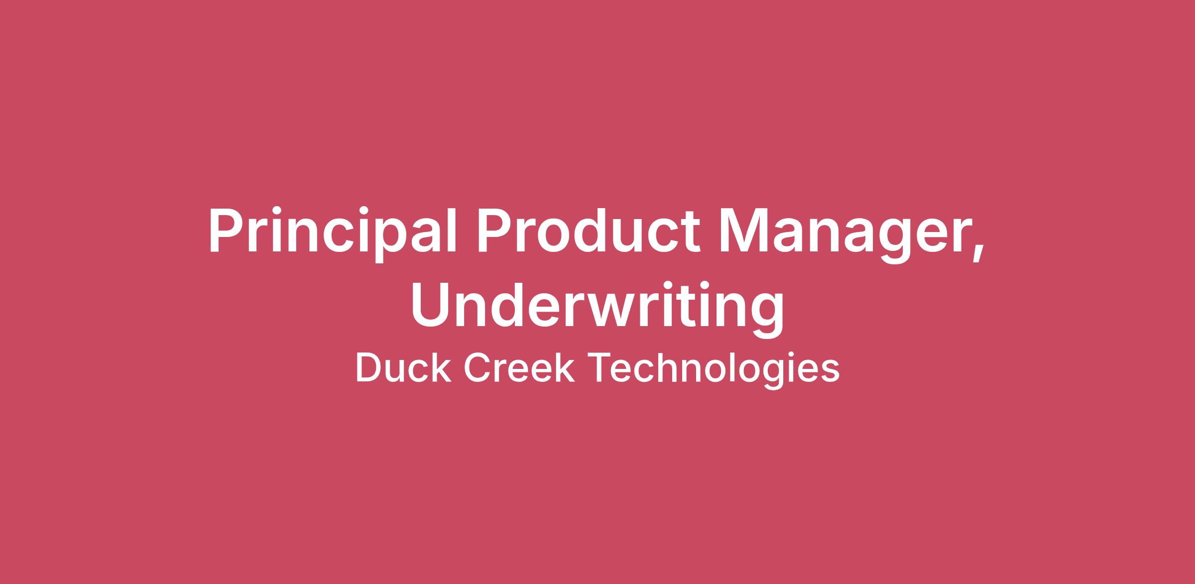 Helping careers take flight. Reshaping an industry. Enable your career to be Made on Duck Creek. WHO WE ARE: Duck Creek Technologies is the intelligent solutions provider defining the future of the property and casualty (P&C) and general insurance industry. We are the platform upon which modern insurance systems are built, enabling the industry to capitalize on the power of the cloud to run agile, intelligent, and evergreen operations. Our modern SaaS solutions help insurers set a new standard and revolutionize how consumers interact with insurance companies. Authenticity, purpose, and transparency are core to Duck Creek, and we believe insurance should be there for individuals and businesses when, where, and how they need it most. Our market-leading solutions are available on a standalone basis or as a full suite, and all are available via Duck Creek OnDemand. With more than 1,000 successful implementations to date, Duck Creek removes the IT burden for insurers so they can focus on the business of insurance. We have a flock of more than 1,700 employees across the globe and are proud to be a Flexible-First employer. We empower our employees with the choice to work from an office, from home, or on a hybrid schedule. Our flexible-first environment fosters productivity, inclusion, collaboration, and ensures a consistent employee experience regardless of location. If working in a fast-paced, rapidly evolving company that is transforming one of the world’s oldest and largest industries sounds exciting, let us know. We are excited you are considering Duck Creek as a future employer and hope you decide to join “The Flock”! To learn more about us, visit www.duckcreek.com and follow us on our social channels for the latest information – LinkedIn and Twitter. TITLE: Principal Product Manager, Underwriting WHAT YOU’LL DO: The Principal Product Manager, Underwriting defines and evolves the product strategy for Duck Creek’s underwriting capabilities, ensuring solutions enable effective risk selection, operational efficiency, and profitable growth. This role owns the product roadmap for underwriting workflows and decision-support experiences and translates insurer practices, regulatory requirements, and data-driven insights into scalable product capabilities. Operating as an individual contributor, this principal level role exercises significant judgment and autonomy within established product strategy and governance frameworks. The role partners closely with Engineering, Architecture, Data, Actuarial, and customer stakeholders to deliver governed, explainable, and compliant underwriting solutions. Define and own the product strategy and roadmap for Duck Creek’s underwriting domain, including workflows, decision support, and automation capabilities. Act as the general manager for your product, owning strategy, execution, and financial outcomes. Translate insurer underwriting practices, risk appetite, and regulatory considerations into clear, prioritized product capabilities and outcomes. Provide product leadership for underwriting workbench experiences that support underwriter productivity, decision quality, and throughput. Lead structured product discovery to frame complex underwriting and risk-selection problems in partnership with customers and internal stakeholders. Serve as the primary product steward for the underwriter persona, ensuring workflows reflect real-world decision contexts and operational constraints. Provide product leadership for application-level decision-support and AI-enabled capabilities that augment underwriter judgment within defined controls. Partner with data science and analytics teams to integrate models, scores, and insights into underwriting workflows in an explainable and trusted manner. Translate underwriting guidelines, rules, and authority structures into configurable, scalable product capabilities, balancing automation and human oversight. Guide adoption of straight-through processing while ensuring transparency, exception handling, and appropriate escalation paths. Ensure underwriting workflows and recommendations are auditable, compliant, and aligned with internal and external governance requirements. Partner with Engineering and Architecture to ensure underwriting capabilities are technically sound, scalable, and aligned with platform standards. Collaborate with Product Marketing, Sales, and Professional Services to support value articulation, enablement, and consistent product positioning. WHAT YOU’VE DONE: Bachelor’s or Masters Degree and/or equivalent experience relevant to functional area 8–12 years of experience in product management within SaaS or enterprise software environments Demonstrated experience owning complex workflow – or decision-centric product domains KNOWLEDGE, SKILLS, ABILITIES & BEHAVIORS: Deep understanding of P&C commercial lines underwriting, including underwriting workflows, risk selection practices, and regulatory and compliance considerations; hands-on experience with underwriting systems preferred. Experience delivering configurable, decision-centric platforms, including rules-driven and AI-enabled or model-informed workflows, and translating customer needs, regulatory constraints, and analytical outputs into governed product decisions. Strong product management fundamentals, including the ability to decompose complex underwriting problems into structured product capabilities, prioritize initiatives using value-, risk-, and effort-based trade-offs, and operate effectively within agile, iterative delivery models. Proven ability to partner cross-functionally with engineering, data, architecture, and business leaders, communicating clearly across technical and non-technical audiences. Demonstrated judgment and autonomy in operating within defined strategic direction and governance frameworks, proactively identifying and surfacing risks, trade-offs, and dependencies with clear recommendations. Strong execution discip