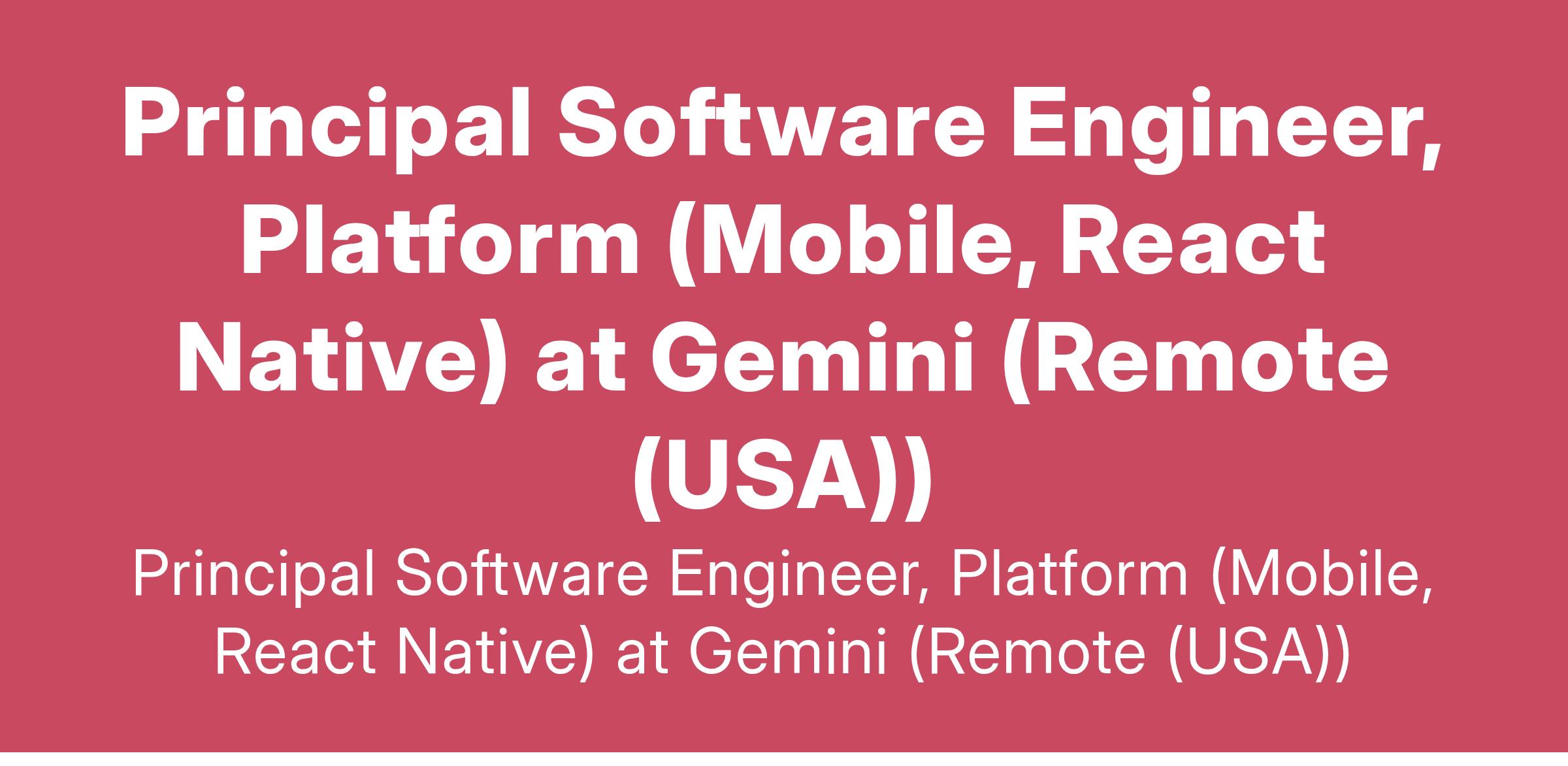 Principal Software Engineer, Platform (Mobile, React Native) at Gemini (Remote (USA))