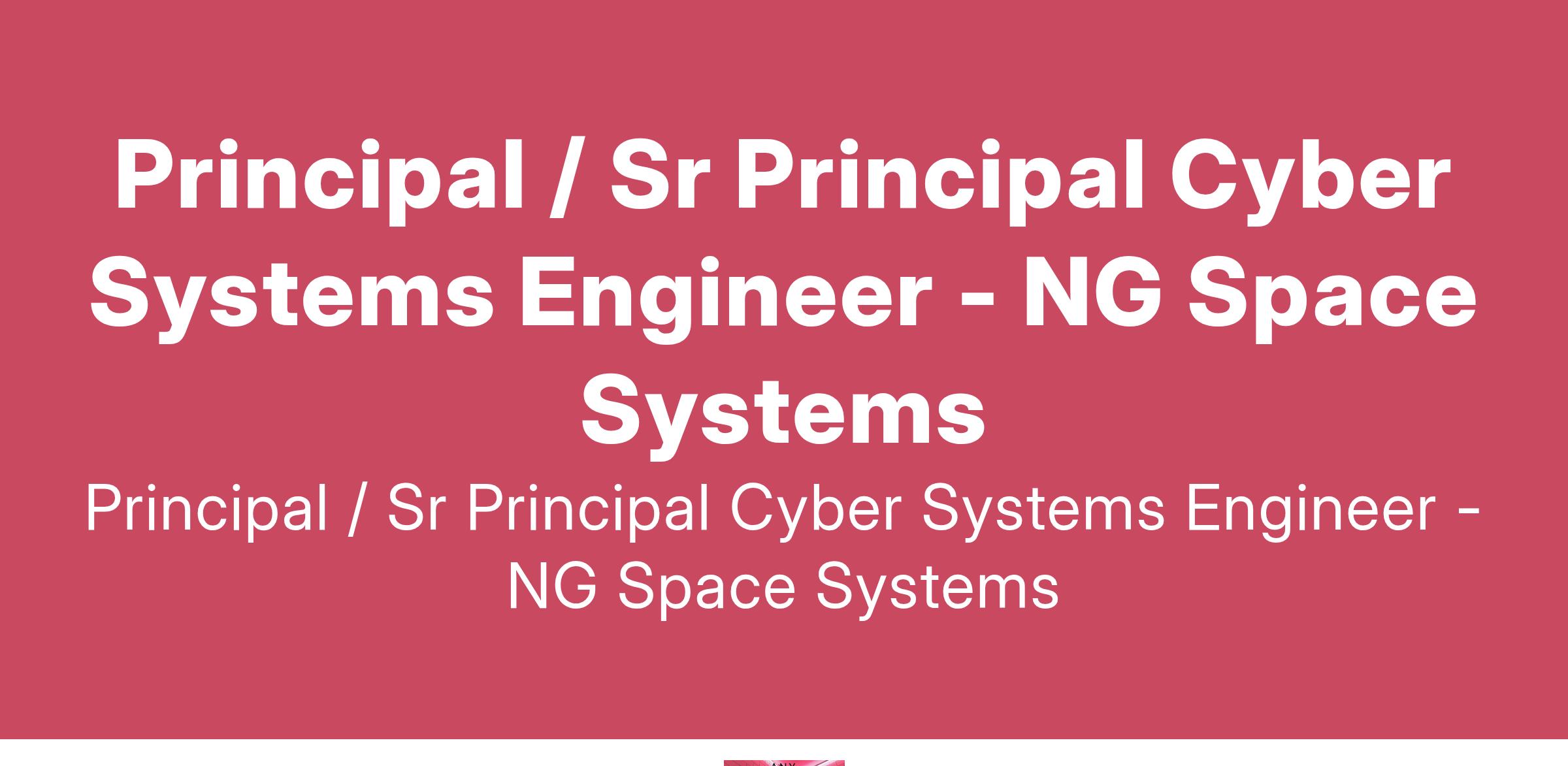 Principal / Sr Principal Cyber Systems Engineer - NG Space Systems