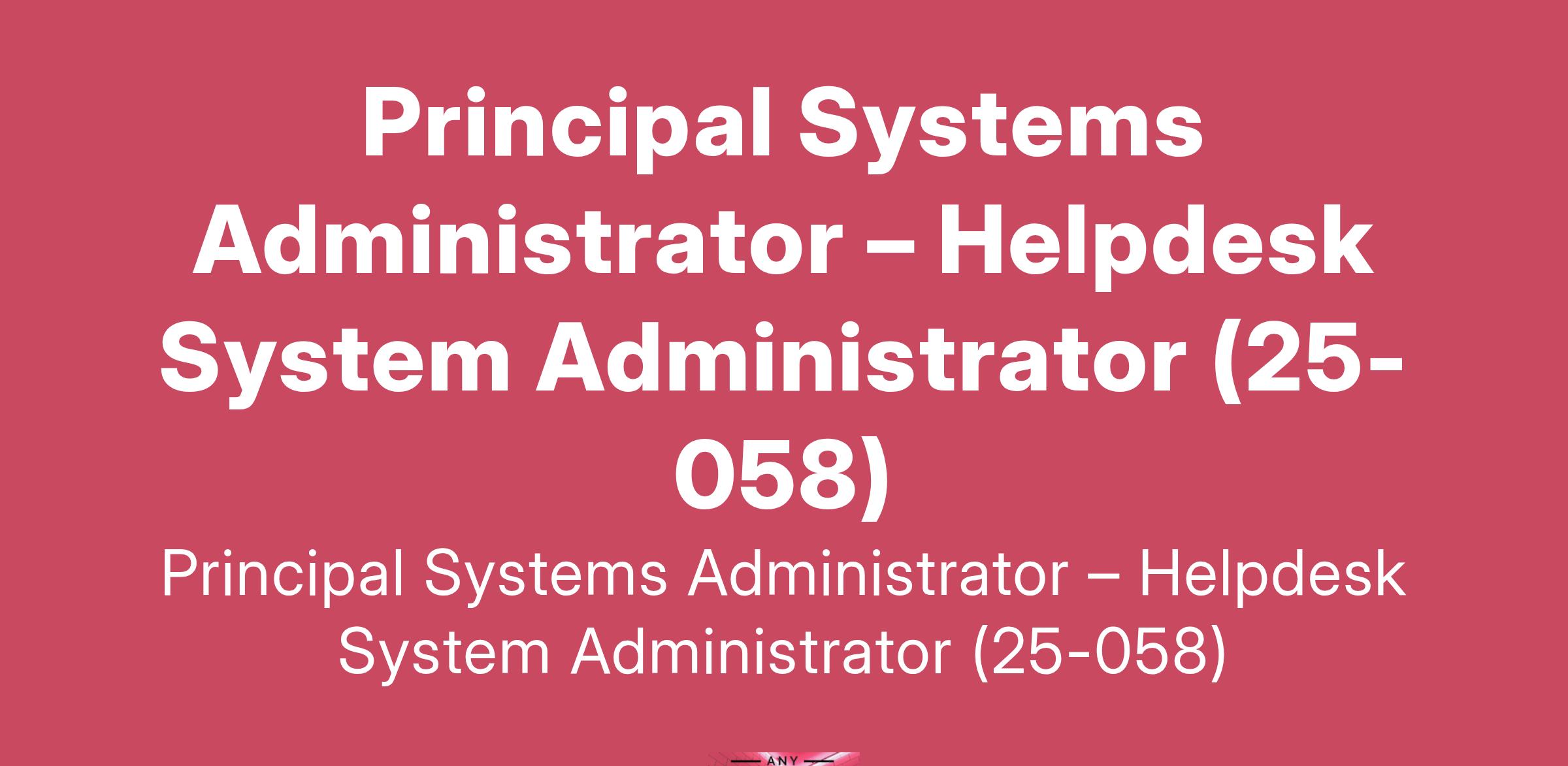 Principal Systems Administrator – Helpdesk System Administrator (25-058)