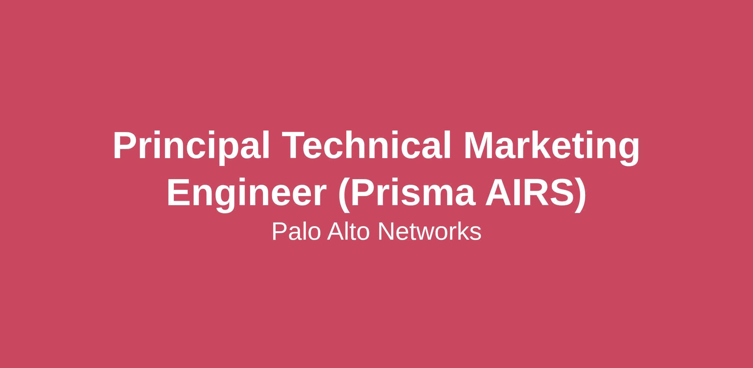 Our MissionAt Palo Alto Networks®, we’re united by a shared mission—to protect our digital way of life. We thrive at the intersection of innovation and impact, solving real-world problems with cutting-edge technology and bold thinking. Here, everyone has a voice, and every idea counts. If you’re ready to do the most meaningful work of your career alongside people who are just as passionate as you are, you’re in the right place.Who We AreIn order to be the cybersecurity partner of choice, we must trailblaze the path and shape the future of our industry. This is something our employees work at each day and is defined by our values: Disruption, Collaboration, Execution, Integrity, and Inclusion. We weave AI into the fabric of everything we do and use it to augment the impact every individual can have. If you are passionate about solving real-world problems and ideating beside the best and the brightest, we invite you to join us!This role is remote, but distance is no barrier to impact. Our hybrid teams collaborate across geographies to solve big problems, stay close to our customers, and grow together. You will be part of a culture that values trust, accountability, and shared success where your work truly matters.Job SummaryYour CareerAs a Principal Technical Marketing Engineer for Prisma AIRS, you will be a key member of the team driving the future of AI security. This critical, customer-facing role involves developing outbound technical communications, performing competitive analysis, and supporting product management to identify next-generation innovations. You will influence strategy, collaborate with marketing and sales to execute go-to-market plans, and act as a thought leader, evangelizing our products and shaping the industry.Your ImpactDevelop, refine, and execute the comprehensive technical marketing plan for AI security products.Create, maintain, and deliver impactful technical assets, including whitepapers, demos, videos, and training for sales, customers, and partners.Lead competitive research and testing to identify key product advantages, and effectively communicate these findings to internal and external stakeholders.Act as a primary technical evangelist for Palo Alto Networks, presenting at conferences, seminars, and high-level customer briefings.Proactively collaborate with engineering and product management to identify and address product gaps based on competitive analysis and customer feedback.Serve as the domain authority on Palo Alto Networks products, providing expert guidance to Systems Engineers on competitive positioning.Document complex technical concepts to ensure products are well-understood and utilized to their fullest potential.Establish and maintain a competitive test lab, including test harnesses, competitive products, and automation environments.Qualifications Your Experience15+ years of experience as a Technical Marketing Engineer, DevOps/Solution Architect, or a similar role within the network or cybersecurity industry.Demonstrated experience with automation tools, building dashboards, and using Kubernetes and Python.Exceptional written and verbal communication skills, with proven experience presenting at industry events or trade shows.Direct experience with networking or data security products.Experience writing and editing technical documentation and operational procedures for a technical audience.Proven ability to quickly learn and experiment with new technologies and products.Strong customer advocacy skills with experience navigating and resolving difficult customer situations.A fast learner with strong initiative, a sense of ownership, and a drive to get things done in a cross-functional environment]Compensation DisclosureThe compensation offered for this position will depend on qualifications, experience, and work location. For candidates who receive an offer at the posted level, the starting base salary (for non-sales roles) or base salary + commission target (for sales/com-missioned roles) is expected to be the annual range listed below. The offered compensation may also include restricted stock units and a bonus. A description of our employee benefits may be found here.$159,000.00 - $255,000.00/yrOur Commitment We’re trailblazers that dream big, take risks, and challenge cybersecurity’s status quo. It’s simple: we can’t accomplish our mission without diverse teams innovating, together.We are committed to providing reasonable accommodations for all qualified individuals with a disability. If you require assistance or accommodation due to a disability or special need, please contact us at accommodations@paloaltonetworks.com.Palo Alto Networks is an equal opportunity employer. We celebrate diversity in our workplace, and all qualified applicants will receive consideration for employment without regard to age, ancestry, color, family or medical care leave, gender identity or expression, genetic information, marital status, medical condition, national origin, physical or mental disability, political affiliation, protected veteran status, race, religion, sex (including pregnancy), sexual orientation, or other legally protected characteristics.All your information will be kept confidential according to EEO guidelines.Is role eligible for Immigration Sponsorship? No. Please note that we will not sponsor applicants for work visas for this position.