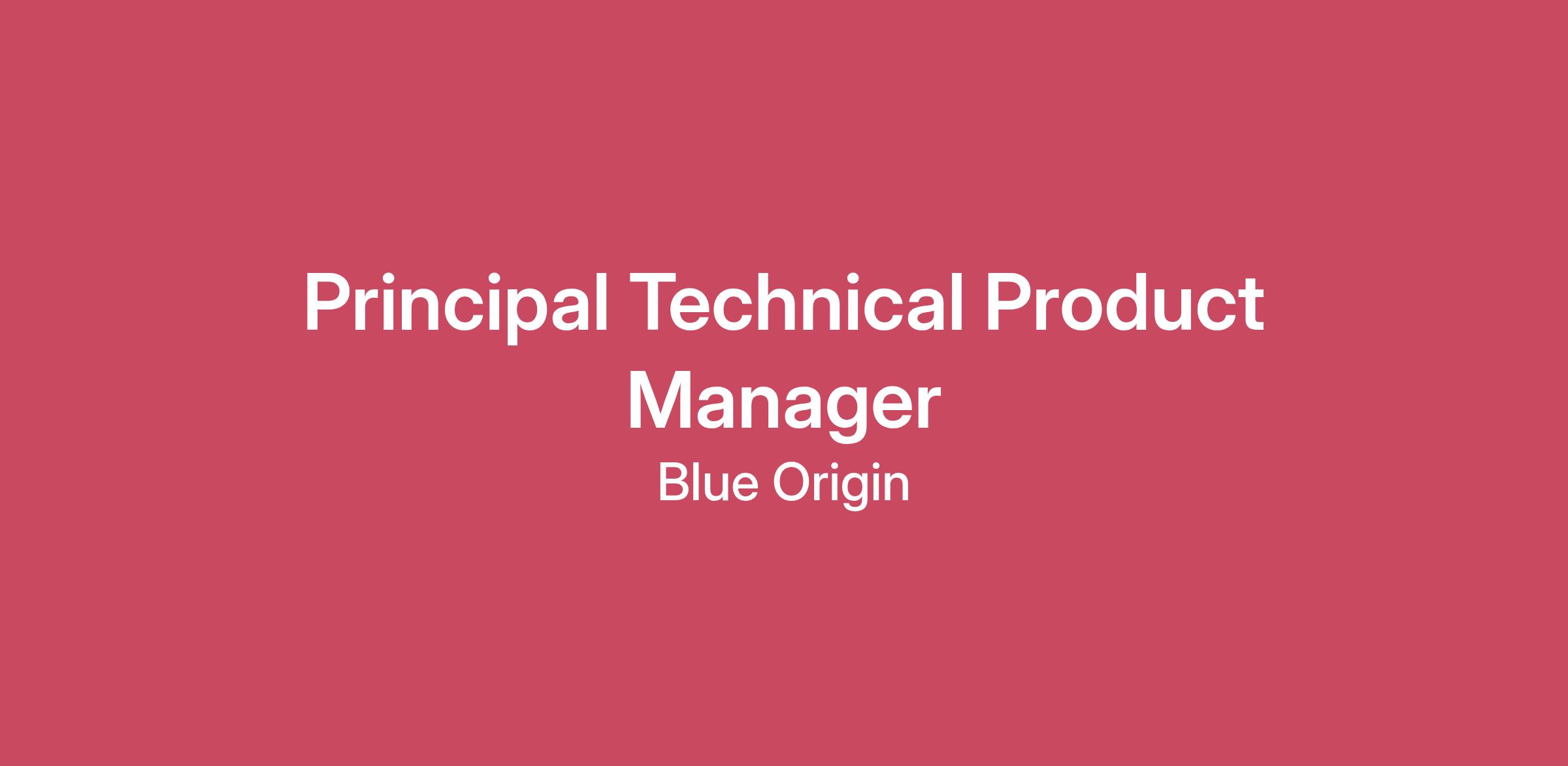 Salary range updated, see changes below.Application close date:Applications will be accepted on an ongoing basis until the requisition is closed.At Blue Origin, we envision millions of people living and working in space for the benefit of Earth. We’re working to develop reusable, safe, and low-cost space vehicles and systems within a culture of safety, collaboration, and inclusion. Join our team of problem solvers as we add new chapters to the history of spaceflight! This role is part of Enterprise Technology (ET), where we’re developing the digital infrastructure needed to build the road to space, with an emphasis on digital capabilities required to advance Blue Origin’s mission. Enterprise Technology is the center of excellence for digital technology at Blue Origin, providing oversight and governance to align technology and business strategies.As a Principal Technical Product Manager, you will build Blue Origin’s next generation of manufacturing and supply chain systems, powering our mission to radically reduce the cost of access to space. Achieving this mission requires technology leaders who can radically rethink how we operate, whether this means simplifying our production planning, automating work on the factory floor, or augmenting our manufacturing and engineering decisions with artificial intelligence. You will be instrumental in defining a multi-year software strategy to accelerate Blue’s operating throughput, while ensuring regulatory compliance and driving continuous process improvement. You will collaborate with cross-functional teams including software engineering, manufacturing operations, supply chain, product design, user experience, Enterprise Resource Planning (ERP), Product Lifecycle Management (PLM) and information technology to build a world class operations management suite. And, you will be responsible for end-to-end product lifecycle, from ideation to implementation and beyond.We are looking for someone to apply their technical expertise, leadership skills, and commitment to quality to positively impact safe human spaceflight. Passion for our mission and vision is required!Special Mentions:Relocation provided.Travel expected up to 25% of the time Responsibilities include but are not limited to:Product Vision & Strategy: Develop a multi-year product vision that shapes company objectives, secures executive buy-in, and enables Blue Origin to meet our ambitious goals for production and launch.Roadmap Management: Develop and manage a 12–18-month plan spanning technology areas, aligning resources, milestones, and mitigation paths while resolving cross-business conflicts.Influence & Execution: Drive decisions with leaders of core business functions and top executives at Blue Origin. Align resources across the company to deliver on goals.Customer-Backed Innovation: Deploy iterative prototyping, testing, and scaling to deliver simple, high-value solutions to complex problems, continuously validated by broad customer feedback and data.Strategic Technical Leadership: Influence technical decisions and end-state architectures for entire domains, evaluating emerging technologies for durable business value.Data-Driven Decisions: Define and implement metrics and frameworks to guide investments and measure success of product launches. Communicate insights crisply to leadership.Release & Change Management at Scale: Lead strategic risk mitigation and readiness activities to ensure smooth roll-outs and measurable impact across multiple organizations.Continuous Improvement & Tooling Innovation: Deploy new tools and methodologies—such as AI and advanced analytics—to boost productivity and codify best practices company-wide.Stakeholder Communication Excellence: Produce high-impact narratives and reviews that drive key decisions and keep executives aligned on progress, risks, and next steps.Minimum Qualifications:Education: Bachelor’s degree in Business, Engineering or a related field. MBA preferred.Experience: 8+ years of product management experience. Proven track record of managing products through their entire lifecycle from conception to launch and scale.Agile/Scrum/Lean Expertise: Strong experience with Lean, Agile, and Scrum methodologies, and proficiency with tools like JIRA and Confluence. Demonstrated ability to lead agile development processes.Technical Acumen: Experience working closing with UX design and software engineering teams. Ability to understand and discuss technical concepts, make trade-offs, and evaluate new ideas.Analytical Skills: Strong analytical and quantitative skills; ability to leverage data for decision-making and product prioritization.Communication Skills: Excellent communication and presentation skills, with the ability to convey complex ideas to both technical and non-technical audiences.Leadership: Demonstrated ability to lead and influence cross-functional teams without direct authority. Strong organizational and leadership skills.Customer-Centric: Strong customer empathy and a passion for building products that deliver exceptional customer experiences.Preferred Qualifications:Experience with Aerospace software development processes and frameworks.Experience with manufacturing, warehouse, logistics or supply chain systems. Compensation Range for:WA applicants is $197,849.00 - $276,987.90Other site ranges may differCulture StatementDon’t meet all desired requirements? Studies have shown that some people are less likely to apply to jobs unless they meet every single desired qualification. At Blue Origin, we are dedicated to building an authentic workplace, so if you’re excited about this role but your past experience doesn’t align perfectly with every desired qualification in the job description, we encourage you to apply anyway. You may be just the right candidate for this or other roles.Export Control RegulationsApplicants for employment at Blue Origin must be a U.S. citizen or national, U.S. permanent resident (i.e. current 