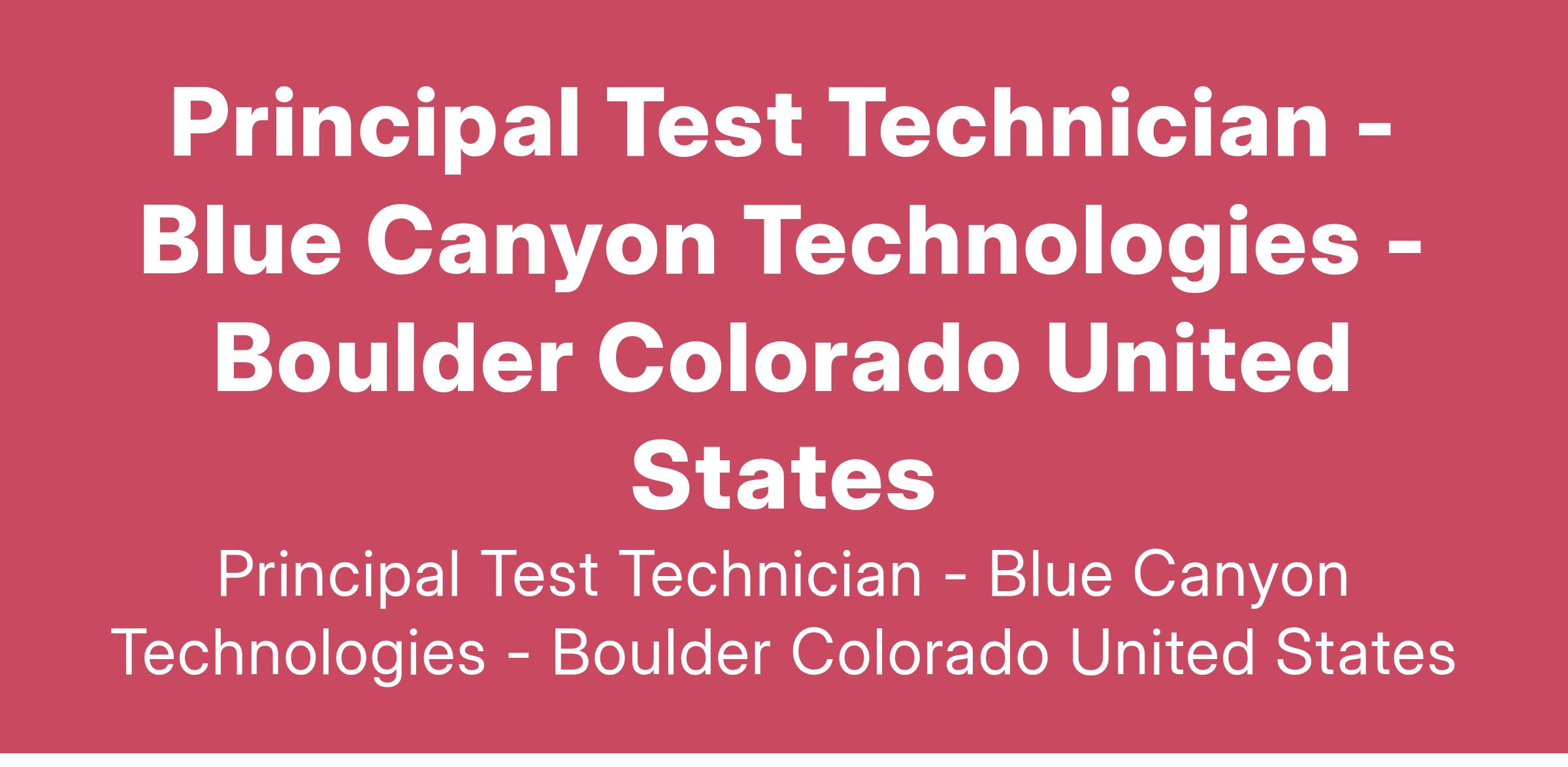 Position Purpose: The Principal Test Technician has the responsibility for supporting test engineering tasks associated with the development, qualification, and acceptance testing efforts of spacecraft systems. This technician would be working in a team environment, sometimes with remote team members, engaging in test and support of flight and non-flight spacecraft electronics. The Test Technician will be expected to execute tests using aerospace standard approaches.