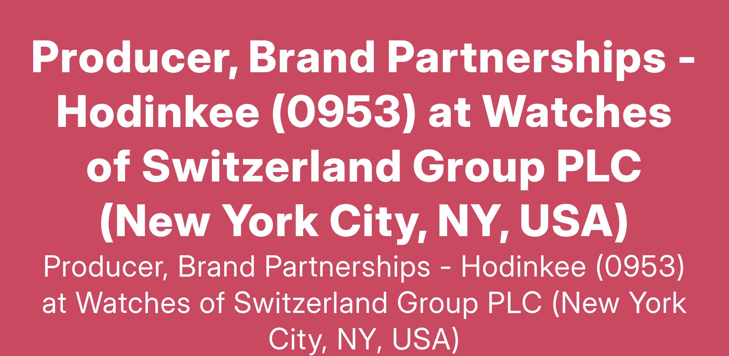 Producer, Brand Partnerships - Hodinkee (0953) at Watches of Switzerland Group PLC (New York City, NY, USA)