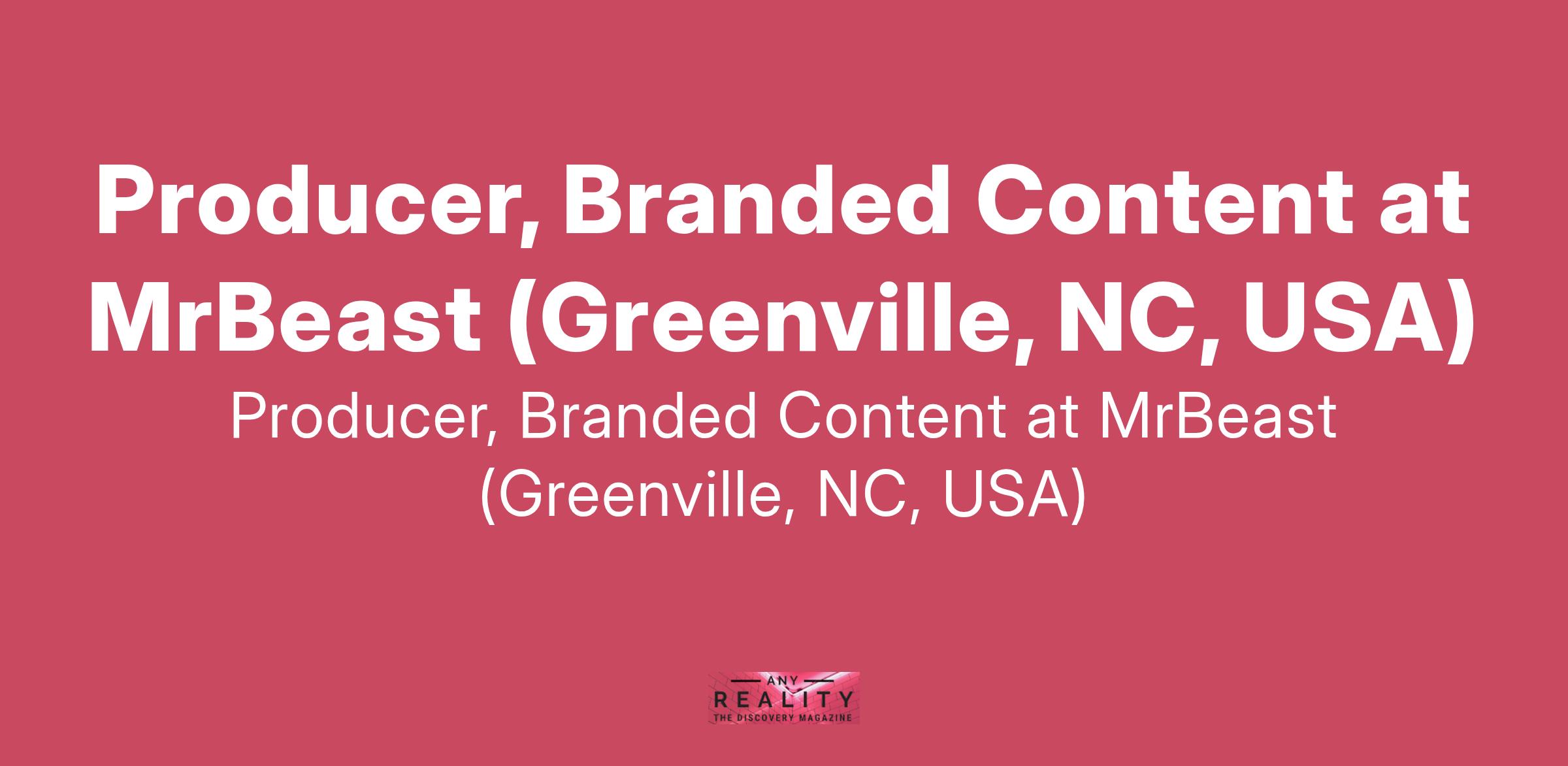 Producer, Branded Content at MrBeast (Greenville, NC, USA)