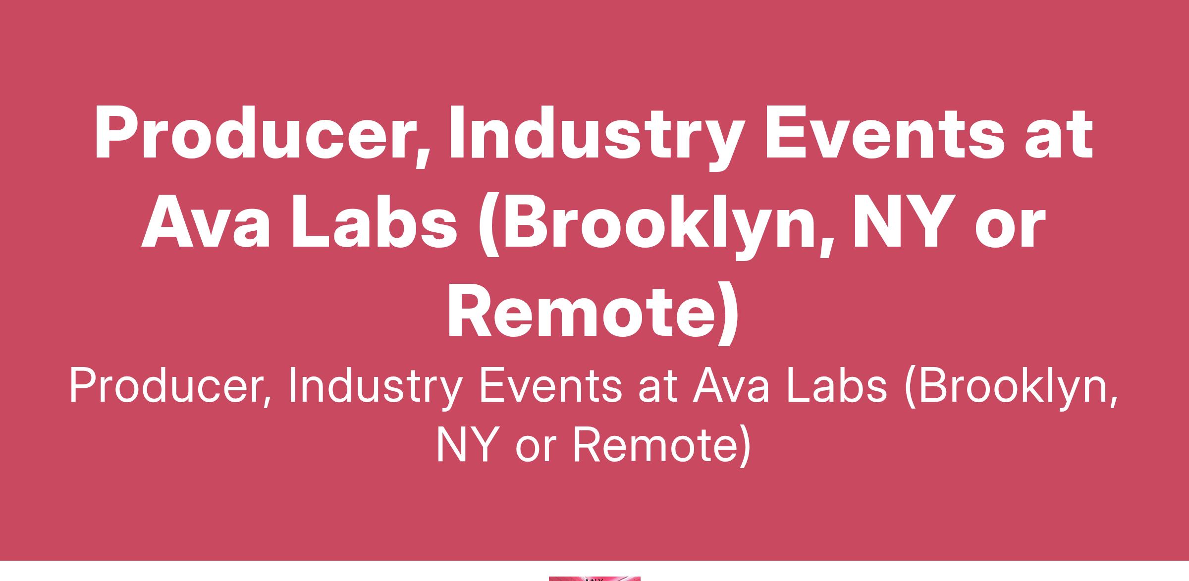 Producer, Industry Events at Ava Labs (Brooklyn, NY or Remote)