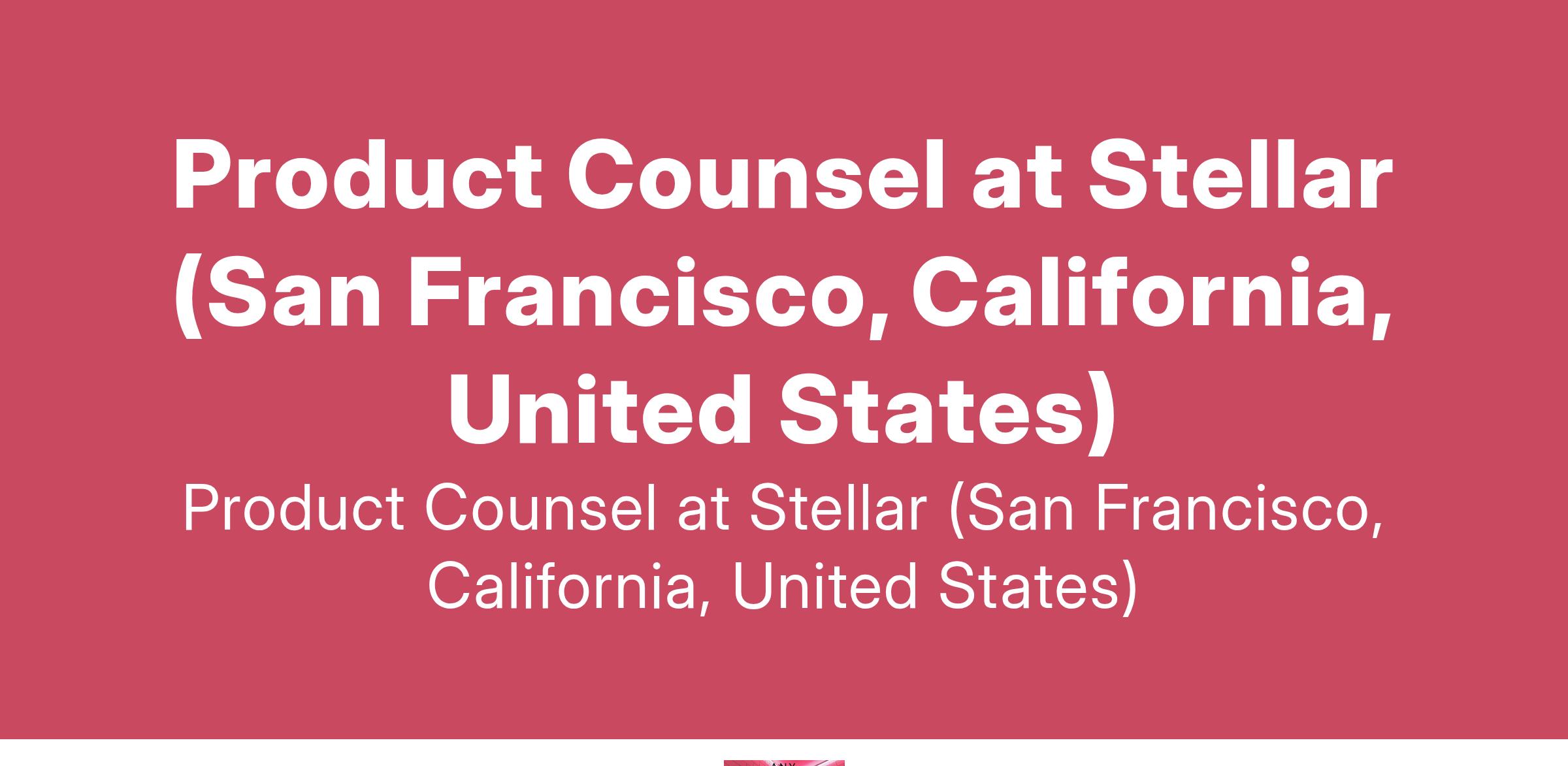 Product Counsel at Stellar (San Francisco, California, United States)