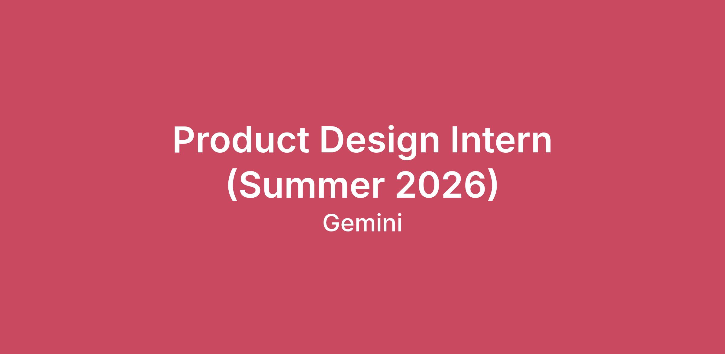 Gemini is looking for Summer 2026 Interns to work on our multi-functional product team that are interested in design, marketing and user experience. You will be assigned high impact projects that help build a more equitable future for all and gain meaningful experience working on all areas of the design process including analysis and reaction to user needs, architecture of layouts, flows and interactions, and design. The Product Design Intern will work cross-functionally with a variety of teams to support great user experiences for Gemini products. Our goal is to provide a valuable experience that makes a direct impact on our business and jump starts your engineering career.