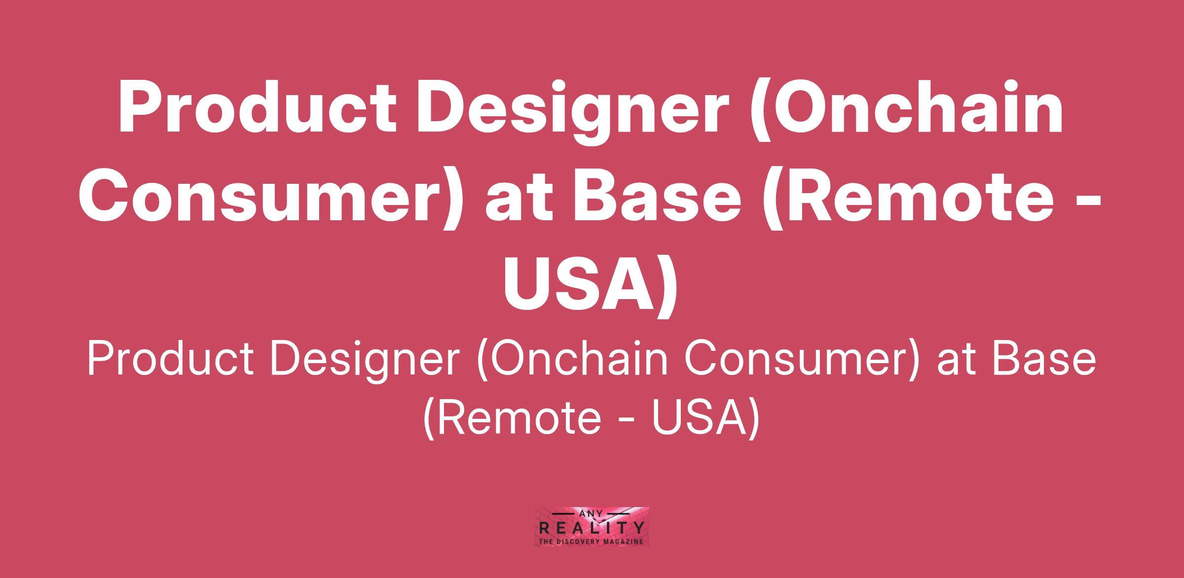 Product Designer (Onchain Consumer) at Base (Remote - USA)