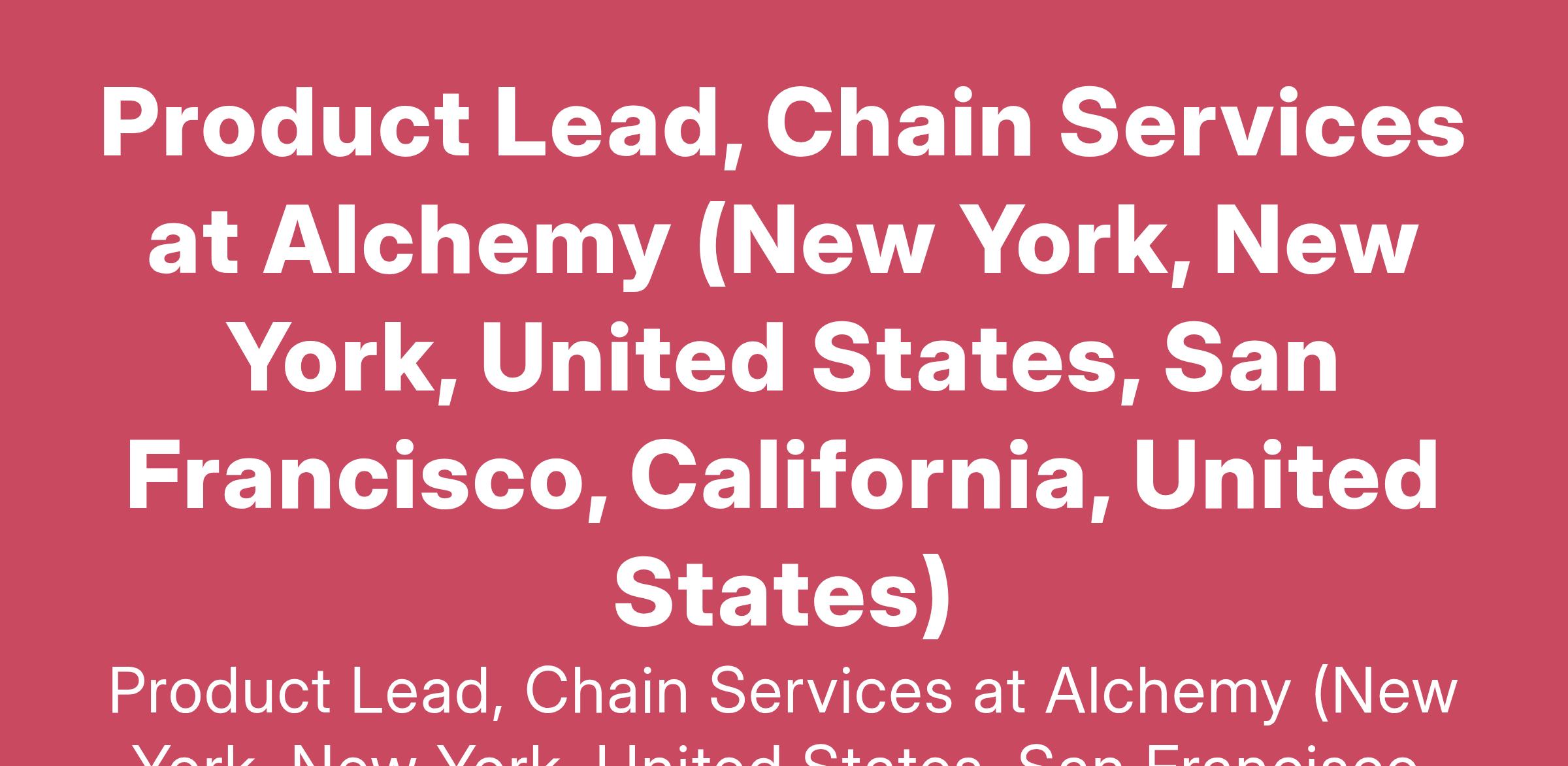 Product Lead, Chain Services at Alchemy (New York, New York, United States, San Francisco, California, United States)