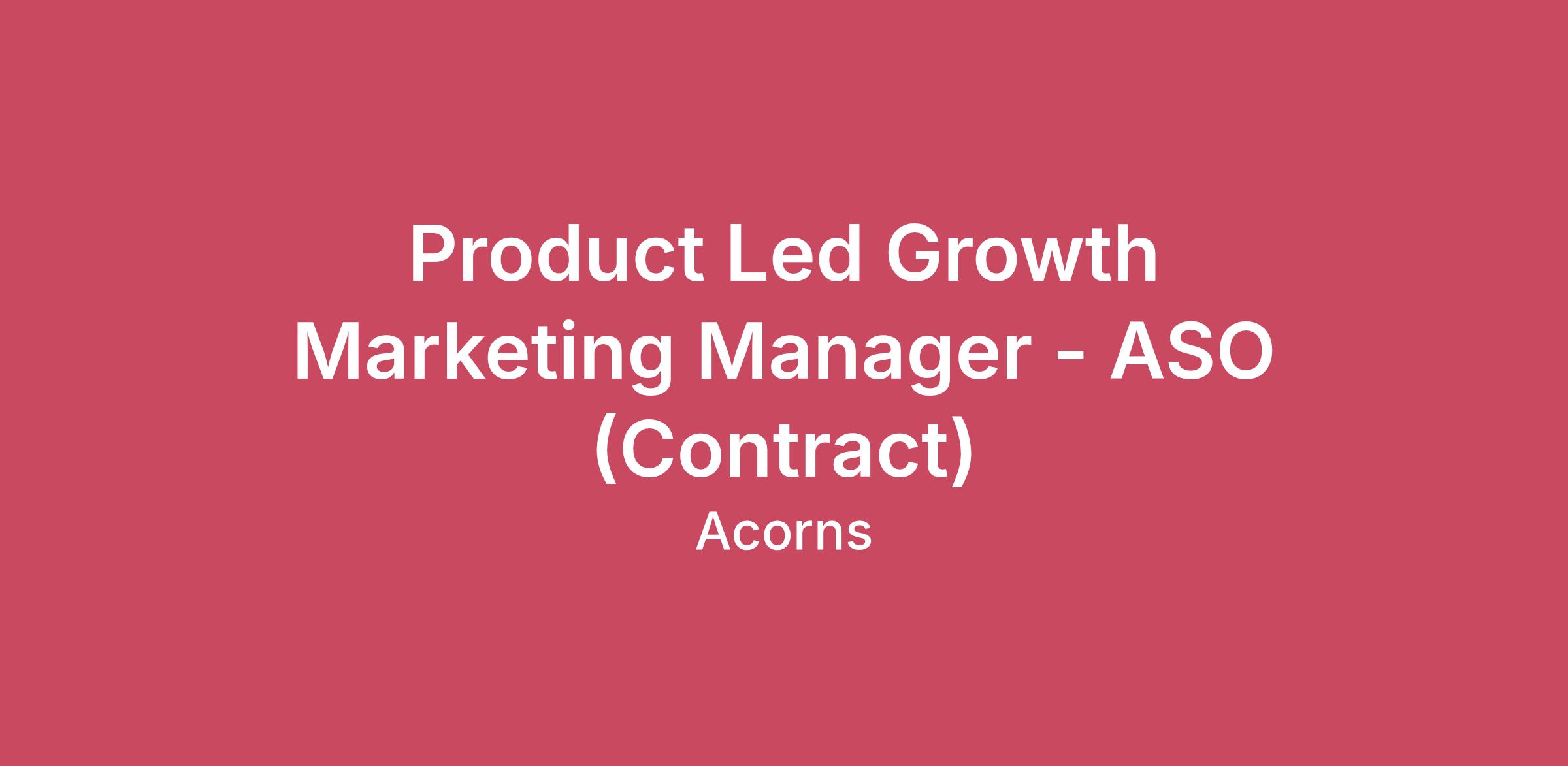 At Acorns, our mission is to look after the financial best interests of the up-and-coming, beginning with the empowering, proud step of micro-investing. How do we accomplish our mission? Our values.Lead With Heart - With compassion, integrity, and tenacity, inspire yourself and others to move past all previous thresholds of possibilityMake Bold Decisions - We are creating a new world. Be optimistic, adventurous, and courageous. Leap fearlessly into the futureAlways Build Trust - Say what you mean, mean what you say, and do what you say you’re going to do. We are all owners. We are one teamNever Stop Growing - Change IS the constant. Stay hungry and curious. Be relentless in the pursuit of progressFind a way - Never settle, no excuses, nothing is impossible. Just make it happenOur values guide us, and our mission drives us. Come join us and help deliver financial wellness for the whole family, putting the tools of wealth-making into everyone’s hands.__________________________________________________________________Product Led Growth Marketing Manager- ASO (Contract) | AcornsAcorns is seeking a Product-Led Growth Marketing Manager- ASO to drive organic growth through our product experience. This role will support growth initiatives across our global product portfolio, including Acorns, Acorns Early, and GoHenry.This white-space role sits at the intersection of product and marketing, leading experimentation across App Store Optimization (ASO) and in-app growth loops. You’ll build the global playbook to turn our apps and core funnels into scalable growth engines that connect our mission to new audiences worldwide.This role is being offered on a contract basis with an expected duration of 3 months with potential to expand based on business need and requiring 40 hours of work per week.Acorns is a remote-first organization, offering the flexibility to work remotely while providing optional access to office space in Irvine, CA.What you will do at Acorns:Own and implement the strategy for App Store Optimization (ASO) for our core brands across both the Apple App Store and Google Play Store to maximize organic downloads and increase overall visibility for key search terms.Design, execute, and analyze A/B and multivariate tests for mobile conversion flows, from initial landing pages to final sign-up, to improve acquisition efficiency and quality.Identify and implement product-led growth (PLG) initiatives that leverage the core product experience to acquire and activate new customers, such as referral loops and viral mechanics.Partner with Product and Growth Engineering to implement and measure marketing-led experiments in the product onboarding flow.Conduct in-depth data analysis to monitor funnel performance, identify drop-off points, and translate insights into actionable product and marketing initiatives.Collaborate with Lifecycle and Paid teams to ensure initiatives complement paid and retention efforts.Collaborate closely with Product, Engineering, Design, and Marketing teams to prioritize and launch experiments that drive measurable growth and align with the overall business objectives.What you will bring to Acorns:3+ years of hands-on experience in a growth-focused role, with a strong emphasis on App Store Optimization (ASO) and conversion rate optimization (CRO).Proven track record of designing and executing A/B tests that resulted in significant, measurable increases in acquisition or conversion rates.Experience working cross functionally with Product and Engineering teams to design and measure technical experiments.Expertise in analyzing large datasets and using tools like Google Analytics, Amplitude, or similar platforms to derive actionable insights.Strong understanding of mobile acquisition channels and the levers of product-led growth.Exceptional project management skills and the ability to drive cross-functional projects to completion.Hunger to deliver game-changing products.Exceptional drive and precision in delivery.A belief that your work is tied to your life's mission.You are not expected to have experience with all listed requirements. If you feel passionate about Acorns' mission, vision, and values, please apply.What we offer:Competitive hourly rates.Talented and motivated team who care deeply about one another, our mission, and our customers.The rare opportunity to create a new world, solving big societal challenges through meaningful work.About Acorns:Acorns is a financial wellness app that helps everyday people and families save and invest money for the long term. Since 2014, Acorns has grown into a global company with multiple life-stage products serving the needs of kids, teens, adults, and parents. Named one of Time’s “World’s Best Brands of 2024,” Acorns has helped over 14 million people save & invest over $25 million dollars, much of it from spare change and small amounts.Compensation Information:The pay range for this position at commencement of employment is expected to be between $57/hour and $67/hour; commensurate with experience and qualifications. Company reserves the right to modify hourly rate at any time, including for reasons related to individual performance, Company or individual department/team performance, and market factors.Work Authorization:Acorns participates in E-Verify to confirm the employment eligibility of all newly hired employees. For more information about E-Verify, please visitwww.e-verify.gov.