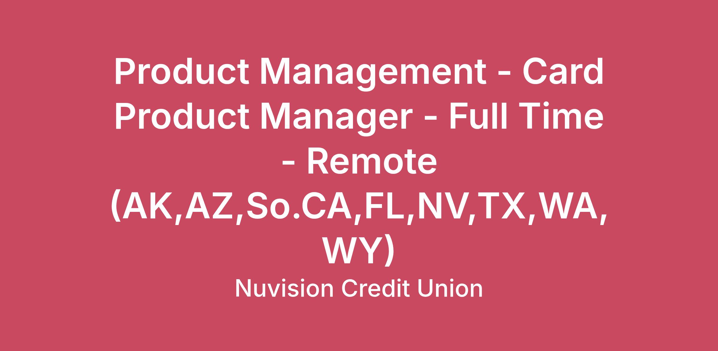 Product Management - Card Product Manager - Full Time - Remote (AK,AZ,So.CA,FL,NV,TX,WA,WY)