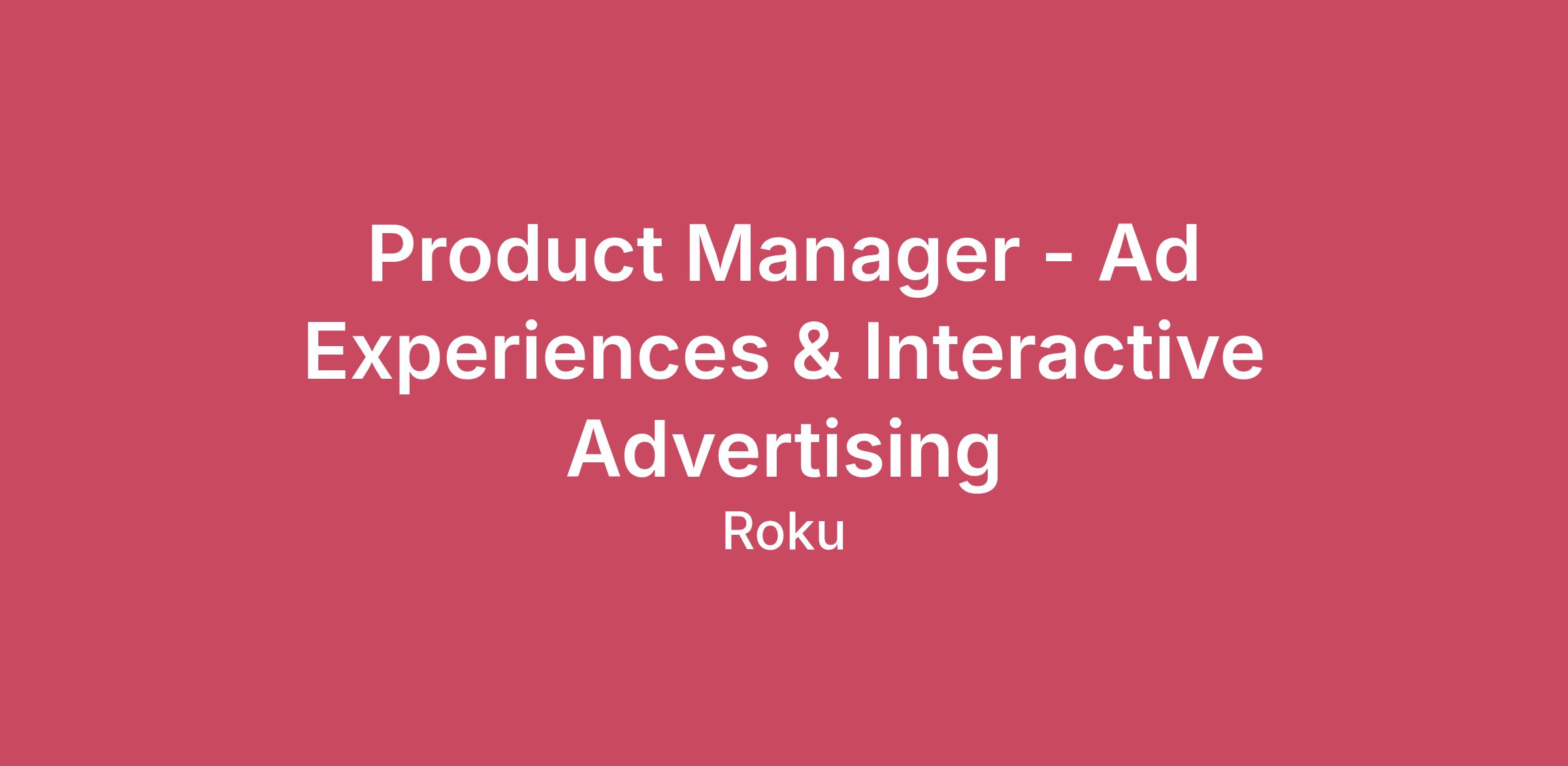 Teamwork makes the stream work. Roku is changing how the world watches TV Roku is the #1 TV streaming platform in the U.S., Canada, and Mexico, and we've set our sights on powering every television in the world. Roku pioneered streaming to the TV. Our mission is to be the TV streaming platform that connects the entire TV ecosystem. We connect consumers to the content they love, enable content publishers to build and monetize large audiences, and provide advertisers unique capabilities to engage consumers. From your first day at Roku, you'll make a valuable - and valued - contribution. We're a fast-growing public company where no one is a bystander. We offer you the opportunity to delight millions of TV streamers around the world while gaining meaningful experience across a variety of disciplines. About the role The Ads Product team is responsible for monetizing Roku's platform through innovative advertising solutions across the Roku TV experience, including its premiere streaming service, The Roku Channel, on both Roku devices and off-platform environments. Collectively, these products reach millions of users daily, creating valuable advertising inventory and engagement opportunities throughout the entire Roku ecosystem. We're looking for a Senior Product Manager to lead the development of next-generation Ad Experiences and Interactive Advertising solutions that help marketers and advertisers drive visually appealing, high-impact sponsorships on the platform. The ideal candidate will pair a global mindset with locally relevant execution, serving as a gritty problem solver and self-starter who can drive programs with product and commercial teams at Roku and with external strategic partner organizations. For California Only - The estimated annual salary for this position is between $176,163 - $233,750 annually. Compensation packages are based on factors unique to each candidate, including but not limited to skill set, certifications, and specific geographical location. This role is eligible for health insurance, equity awards, life insurance, disability benefits, parental leave, wellness benefits, and paid time off. What you'll be doing Product strategy and opportunity assessment: Conduct rigorous market analysis and user research to identify high-growth monetization opportunities; build robust business cases that balance short-term revenue goals with long-term ecosystem health Strategic roadmap ownership: Define and execute a multi-quarter roadmap for ad innovation products, ensuring alignment with Roku's overarching platform strategy and the evolving needs of the programmatic and direct-sales markets High-fidelity documentation: Author comprehensive Product Requirement Documents (PRDs) and technical specifications; translate complex business needs into actionable engineering tasks to ensure on-time, high-quality delivery Agile innovation: Partner with the UX team for rapid prototyping, A/B testing, and iterative design methodologies to validate ad formats and minimize "time to insight" by testing hypotheses in live environments Operational excellence: Drive feature prioritization and process improvements, maintaining a relentless focus on key KPIs such as Ad Fill Rate, CPM, User Engagement, and Churn impact Engineering partnership: Serve as the "voice of the customer" for the engineering team; provide deep business context to technical leads to foster creative problem-solving and architectural scalability Stakeholder orchestration: Lead cross-functional teams—including Sales, Marketing, Data Science, Finance, and Legal—to navigate the complexities of privacy regulations and advertising standards Vendor ecosystem management: Manage strategic relationships with 3rd-party technology vendors/partners; ensure rigorous SLA compliance and influence their roadmaps to align with Roku's proprietary tech stack Market intelligence and thought leadership: Act as the internal authority on AdTech trends (e.g., CTV measurement, identity solutions, shoppable TV); translate industry shifts into strategic POVs that influence executive decision-making and monitor the competitive landscape to ensure Roku remains the industry leader in native, non-intrusive, and high-performing ad experiences We're excited if you have 5+ years of product management experience building advertising and marketing solutions Domain expertise in AdTech, Ad UX, OTT, and/or DMPs An extraordinarily high level of customer empathy Experience working with business intelligence/data analytics tools and data dashboarding tools such as Tableau or Looker Practical knowledge of experimentation, A/B testing, and lift measurement Data-driven and entrepreneurial self-starter who deals well with ambiguity Experience working with marketers, marketing operations, data scientists, and data analysts Strong, influential cross-functional team leader with experience working in enterprise and matrixed environments Excellent problem-solving skills and ability to work independently Minimum of a bachelor's degree (preferably in engineering); MBA preferred Light travel as needed. #LI-SR2 Our Hybrid Work Approach Roku fosters an inclusive and collaborative environment where teams work in the office Monday through Thursday. Fridays are flexible for remote work except for employees whose roles are required to be in the office five days a week or employees who are in offices with a five day in office policy. Benefits Roku is committed to offering a diverse range of benefits as part of our compensation package to support our employees and their families. Our comprehensive benefits include global access to mental health and financial wellness support and resources. Local benefits include statutory and voluntary benefits which may include healthcare (medical, dental, and vision), life, accident, disability, commuter, and retirement options (401(k)/pension). Our employees can take time off work for vacation and other personal reasons to balance their evolving wo