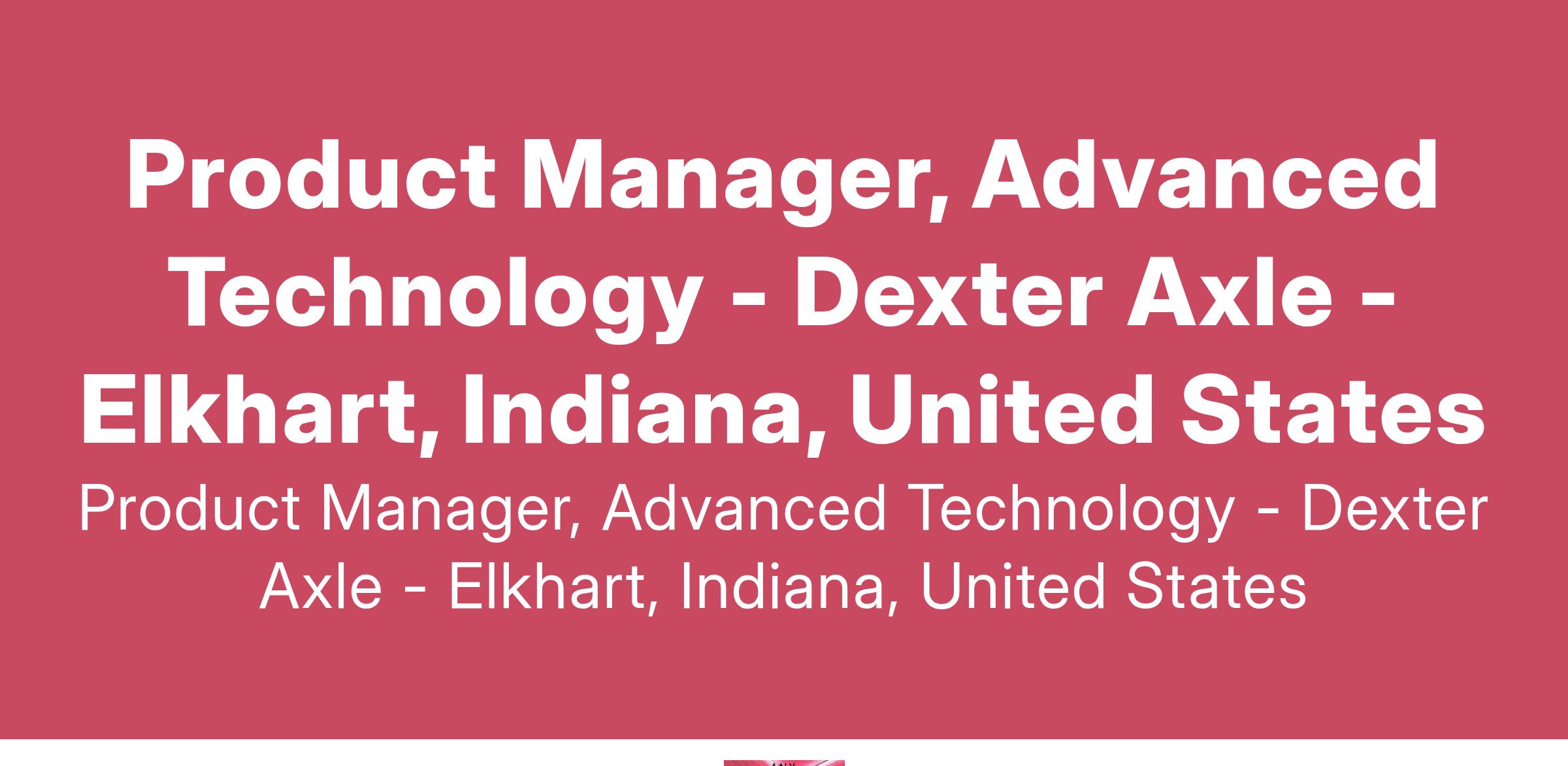 Dexter is the premier manufacturer and supplier of axles, suspension, brakes, doors, venting products, trailer parts, accessories, and towing components serving the commercial trailer, RV, heavy-duty, marine, agriculture, and manufactured housing markets has an opportunity for a Product Manager at our manufacturing facility located in Elkhart, Indiana.