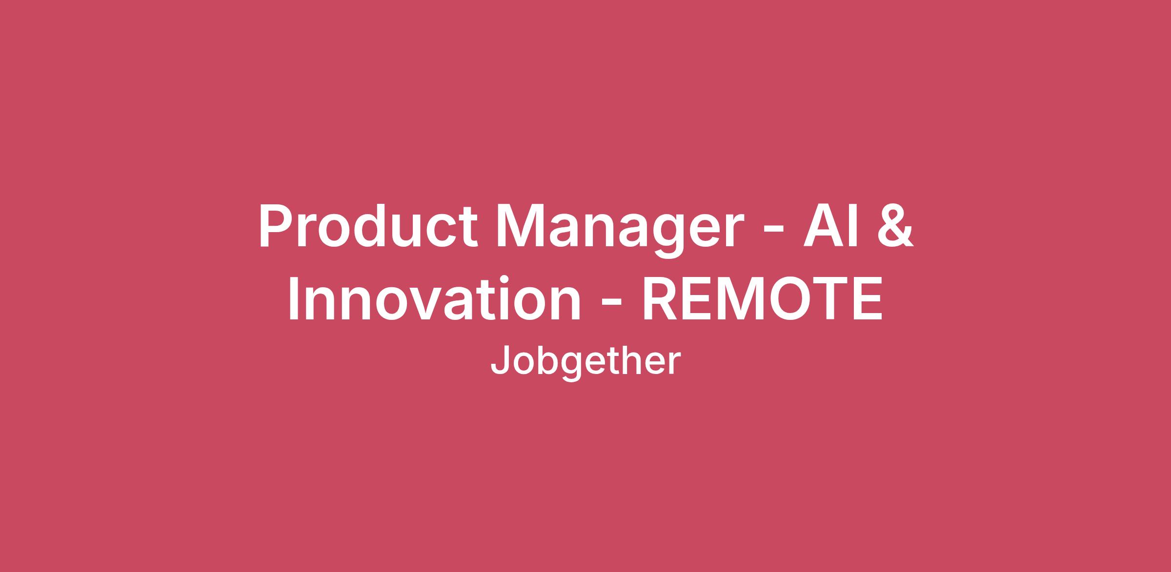 Product Manager - AI & Innovation - REMOTE