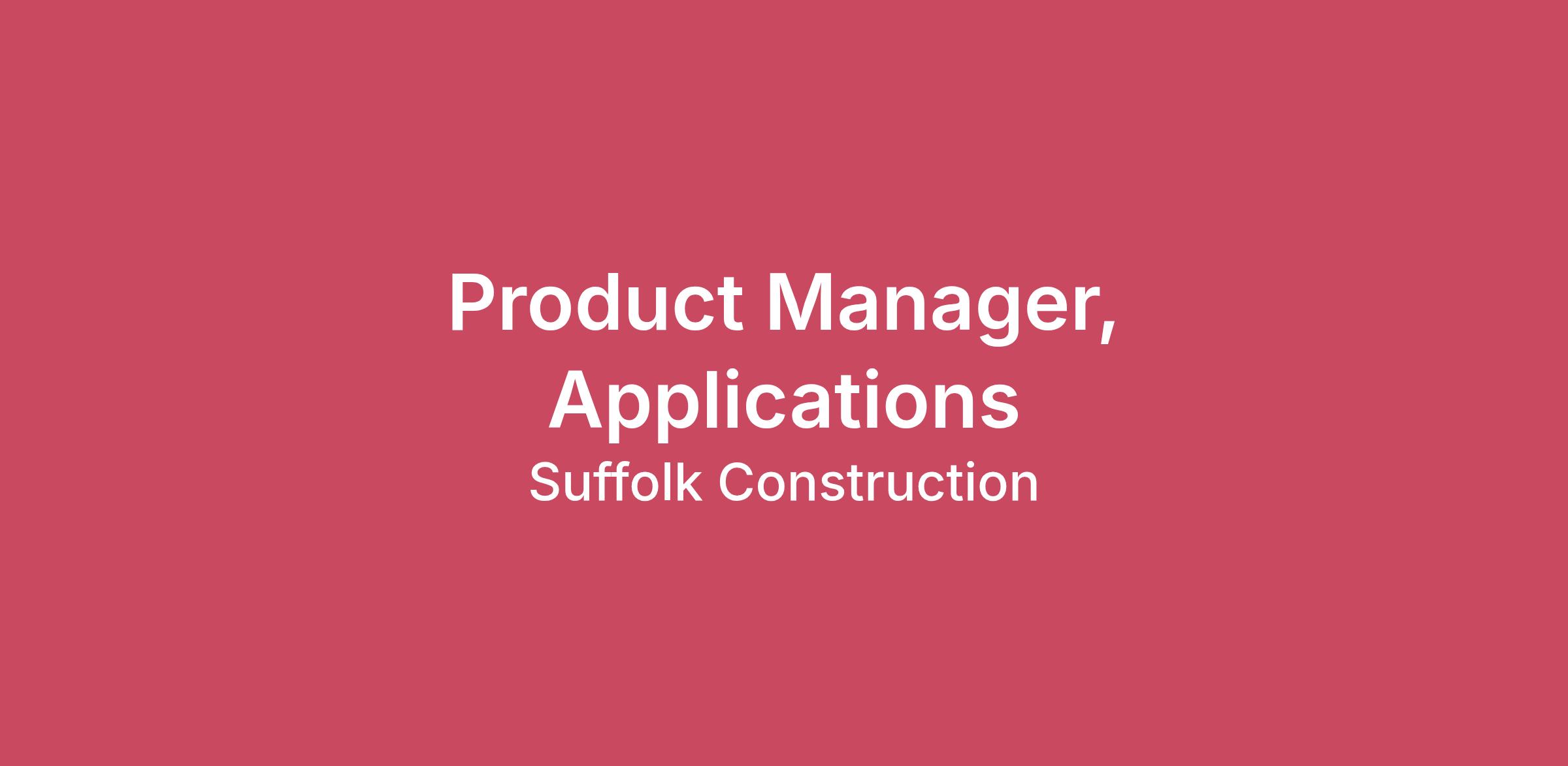 Overview About SuffolkSuffolk is a national enterprise that builds, innovates, and invests. We provide value across the entire project lifecycle through our core construction management services and complementary business lines in real estate investment, design, self-perform construction, and technology start-up investment (Suffolk Technologies). By integrating data, artificial intelligence, and advanced technology through our Seamless Platform, we connect design, construction, and operations to deliver smarter, more predictable results and redefine how America builds. Suffolk – America’s Contractor – is a national company with more than $8 billion in annual revenue, 3,000 employees, and 17 offices, including Boston (headquarters), New York City, Miami, West Palm Beach, Tampa, Estero, Dallas, Los Angeles, San Francisco, San Diego, Las Vegas, Herndon, U.S. Virgin Islands, and other key markets. Suffolk manages some of the most complex and transformative projects in the country, serving clients across healthcare, life sciences, education, gaming, aviation, transportation, government, mission critical, and commercial sectors. Suffolk is privately held and is led by founder, chairman and CEO John Fish. Suffolk is ranked #8 on ENR’s list of “Top CM-at-Risk Contractors.” For more information, visit www.suffolk.com and follow Suffolk on Facebook, Twitter, LinkedIn, YouTube, and Instagram. At Suffolk, we believe that our total rewards program should offer you and your family the support you need when it matters most. That’s why we have created a program that provides employees with access to a wide variety of options that can be personalized to support you and your loved ones physically, emotionally, and financially. Benefits include, competitive salaries, auto allowances and gas cards for certain roles, access to market leading medical and emotional and mental health benefits, dental, and vision insurance plans, virtual care options for physical therapy and primary care, generous paid time off, 401k plan with employer match and access to expert financial resources, company paid and voluntary life insurance, tax deferred savings accounts, 10 backup daycare days each year, short- and long-term disability, commuter benefits and more. For more information, click here. Role SummaryAs a Product Manager on the Construction Technology team, you will play a crucial role in leading the delivery and continuous improvement of our construction applications portfolio. You will lead the performance and adoption of a portfolio of construction technology applications, ensuring that solutions create business value for colleagues, partnering with the IT Digital Product Owner to align with enterprise architecture, standards, and strategy. You will serve as an operational product owner and voice of the customer, driving adoption, satisfaction, and process improvement. Your ability to provide leadership across multiple solutions while balancing business priorities, resources and stakeholder expectations will be key to delivering domain-wide business value realization. This role is highly cross-functional and customer-centric, requiring the acumen to translate the voice of the customer into business and technical requirements to ensure high quality products bolster Suffolks’ industry-shaping approach to construction project delivery. Responsibilities Translate vision into action and contribute to our strategy for the Operations Technology application portfolio, collaborating with operations domain stakeholders (e.g., Estimating, Preconstruction, Planning, Safety and Digital Delivery) to identify end-user pain points, map product white spaces and deploy a joint IT-Operations governance framework to manage application portfolio health. Define the roadmap and implement an aligned strategy for the application portfolio within a specified business domain(s). Collaborate closely with the IT Digital Product Owner to jointly prioritize the product backlog, drive stakeholder engagement, and deliver product outcomes aligned with business strategies and operational needs. Serve as the domain solutions expert, bridging business needs with technology capabilities for applications already in the portfolio. Develop clear understanding of the product landscape to enable the identification and evaluation of prospective products that complement or provide enhanced capabilities to serve the customers’ long-term needs and company technology vision. Strengthen operational engagement by partnering directly with operations leaders and end-users, conducting field interviews, mapping workflows, and piloting solutions to address real operational pain points. Manage the end-to-end product life cycle, defining use cases, performance metrics, and adoption data to curate required and recommended product categories. This responsibility includes, but is not limited to coordinating and developing standard operating procedures, training materials, new workflows, etc. Champion continuous improvement and partner with deployment associates to support scaling and establish feedback loops, aligned success criteria, and governance structures to ensure digital tools remain effective and aligned with evolving business needs. Lead evaluation, pilot and scaling of new features, functionality for current applications portfolio and identify product capability gaps. Develop decision criteria and recommend potential replacements for existing applications when product coverage gaps emerge or user needs evolve. Facilitate the planning and execution of key construction technology initiatives by conveying product roadmaps in alignment with company-wide objectives. Lend support to cross functional project teams to ensure representation and delivery at the initiative level. Serve as the joint stakeholder for external technology partners, partnering with IT on implementation workflows, service and commercial agreement negotiations, and life-cycle manage