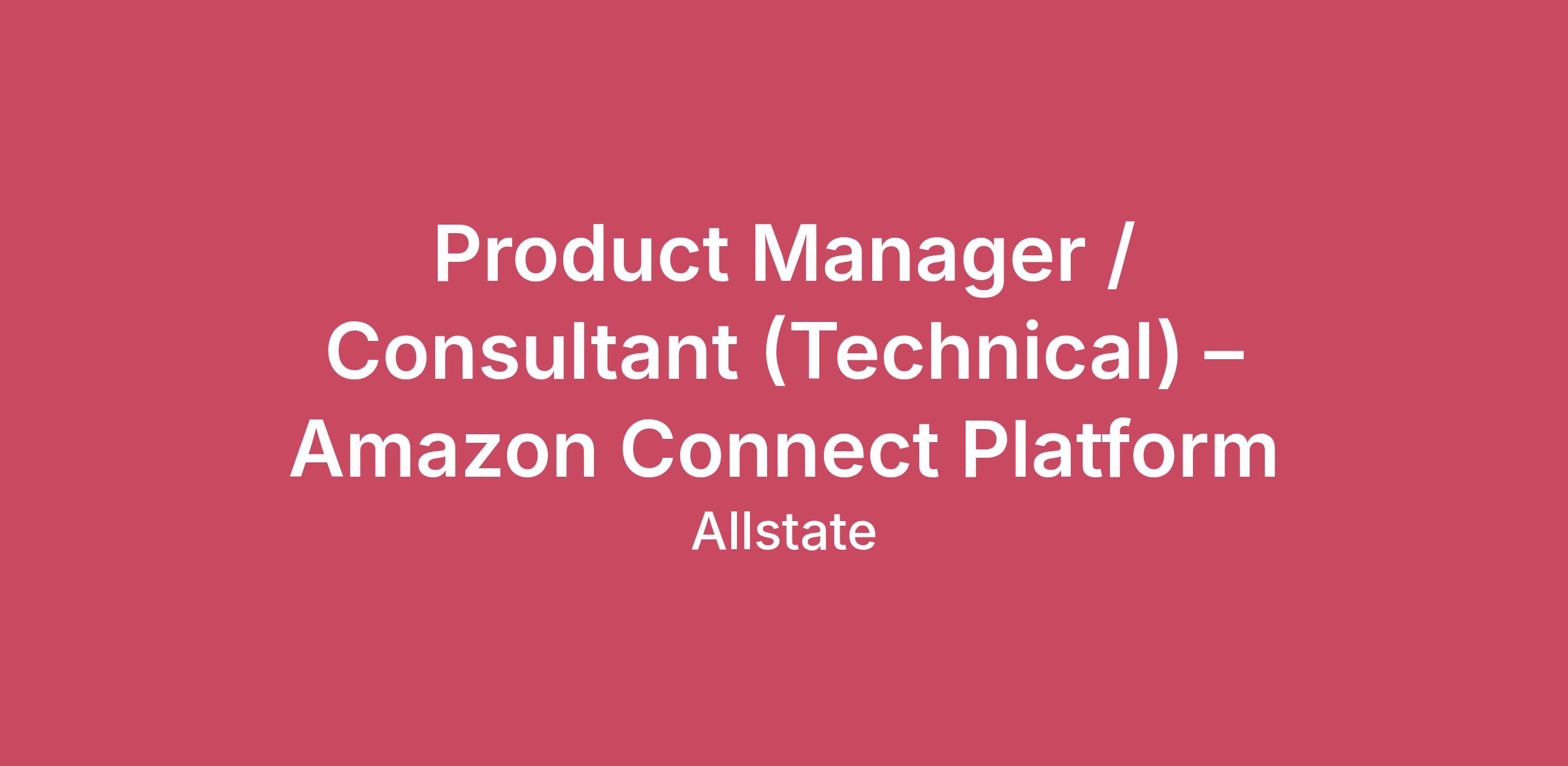 At Allstate, great things happen when our people work together to protect families and their belongings from life’s uncertainties. And for more than 90 years, our innovative drive has kept us a step ahead of our customers’ evolving needs. From advocating for seat belts, air bags and graduated driving laws, to being an industry leader in pricing sophistication, telematics, and, more recently, device and identity protection. Job DescriptionRole OverviewThe Direct Phone Sales Telephony and Support team is seeking a Product Manager / Consultant (Technical) to contribute to the definition, delivery, and ongoing ownership and evolution of the Amazon Connect platform.This role is part of a team of Product Managers responsible for maximizing customer value, operational efficiency, and platform effectiveness across the contact center ecosystem. The position emphasizes platform strategy, operational alignment, and customer experience optimization.Role Leveling & ScopeThis role is a mid-to-senior individual contributor position focused on Amazon Connect platform ownership. The Product Manager / Consultant is expected to operate within an established product team, owning platform initiatives, influencing cross-functional stakeholders, and driving outcomes across multiple functional areas, without direct people management responsibility.Key ResponsibilitiesPlatform Strategy & Lifecycle ManagementContribute to the vision, roadmap, and long-term strategy for the Amazon Connect platform, aligning with enterprise customer experience and operational objectives.Collaborate with fellow Product Managers to manage the full lifecycle of Amazon Connect capabilities, from intake and discovery through launch and ongoing optimization.Provide recommendations to leadership to guide platform investment and prioritization decisions based on customer impact and operational value.Act as a platform steward to ensure capabilities are implemented consistently and in alignment with enterprise standards.Backlog & Delivery EnablementTranslate business needs into prioritized platform initiatives, epics, user stories, and acceptance criteria.Partner with Agile/Scrum teams, IT, and vendor partners to deliver high-quality platform enhancements.Review delivered functionality and provide feedback to ensure outcomes meet business and customer experience objectives.Amazon Connect Platform EnablementServe as a knowledgeable point of contact for Amazon Connect platform capabilities, including call flows, routing strategies, and self-service experiences.Provide functional guidance on platform administration, configuration, and environment management.Partner with Quality Management, Reporting, Analytics, Workforce Management, and outbound dialing teams to ensure platform alignment with operational goals.Discovery, Innovation & AI EnablementParticipate in discovery and pilot initiatives to validate new Amazon Connect features and enhancements.Stay informed on Amazon Connect roadmap updates and contact center trends, including AI-driven self-service and agent assistance.Recommend adoption of emerging platform and AI capabilities based on business value and readiness.Metrics, Reporting & InsightsHelp define and track key performance indicators across the Amazon Connect platform.Collaborate with analytics teams to derive actionable insights from reporting, call journey data, and quality results.Support pilots and A/B testing to measure the impact of platform changes prior to enterprise rollout.Collaboration, Governance & CompliancePartner with IT, compliance, legal, and security teams to ensure adherence to regulatory and data protection requirements.Align platform capabilities with Workforce Management, Quality Management, and Analytics teams.Contribute to training, documentation, and change management efforts supporting platform enhancements.QualificationsExperience3–5 years of experience in Product Management, Product Consulting, Business Analysis, or a related role supporting enterprise platforms or contact center technologies.Required experience with Amazon Connect, including demonstrated knowledge of platform capabilities, features, and administrative functions.Experience working with contact center operations, IT, analytics, Workforce Management, and Quality teams.Experience with additional CCaaS platforms such as Genesys, NICE CXone, Five9, or Avaya is a plus.Insurance industry experience is a plus but not required.Technical & Platform AptitudeStrong understanding of contact center platform concepts including routing, self-service, agent workflows, quality management, and reporting.Familiarity with Amazon Connect capabilities related to administration, quality evaluations, reporting, workforce management integration, and outbound dialing.Knowledge of AI and automation use cases such as conversational experiences, speech analytics, and real-time agent support.Ability to interpret dashboards and performance data and translate insights into platform recommendations.Other SkillsStrong analytical and problem-solving skills with the ability to define, track, and optimize KPIs.Excellent communication and collaboration skills across technical and non-technical audiences.Experience working in Agile/Scrum environments; familiarity with SAFe or other scaled agile frameworks is a plus.Strong business acumen with the ability to balance customer experience, operational efficiency, and compliance.Experience with ad-hoc reporting or data analysis tools such as SQL is a plus.SkillsAmazon Connect, Business Case Analyses, Call Center, Client Counseling, Communication, Compliance, Contact Center Operations, Product Management, Product Roadmapping, ReportingCompensationCompensation offered for this role is 100,000.00 - 170,500.00 annually and is based on experience and qualifications.The candidate(s) offered this position will be required to submit to a background investigation.Joining our team isn’t just a job — it’s an opportunity. One that