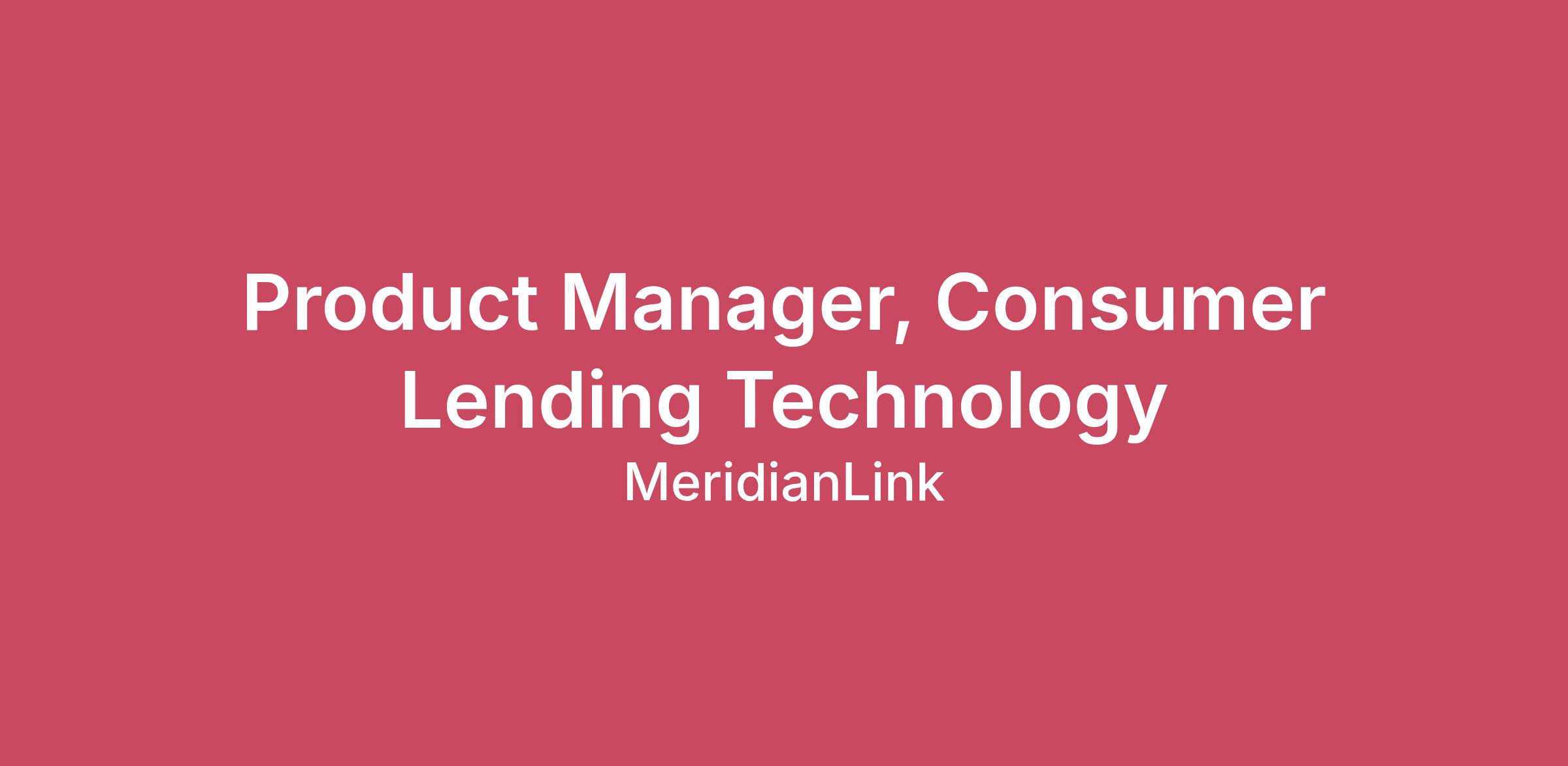 We are seeking a strategic, technically fluent Product Manager to join the MeridianLink Consumer product team — the team behind our flagship consumer lending origination platform. In this role, you will own a defined area of the consumer lending experience, partnering closely with engineering, design, and go-to-market teams to deliver high-impact improvements that matter to the financial institutions and borrowers we serve.MeridianLink Consumer is a complex, deeply integrated platform with a large and growing customer base. The PM team works collaboratively across product areas — from origination workflows and credit decisioning to API integrations and digital borrower experiences. You will contribute meaningfully to team strategy while driving focused execution within your domain.We want someone who brings strong product instincts, a genuine curiosity about financial technology, and the ability to thrive in a collaborative, cross-functional environment. Experience with API-integrated platforms and a passion for using modern technology — including AI/ML and real-time data — to improve lending experiences will set you apart.Responsibilities:Discovery & Product Delivery• Own the roadmap for your product area within MeridianLink Consumer, from discovery through delivery and iteration.• Lead continuous discovery through customer interviews, usage analytics, and collaboration with financial institution partners to identify high-value problems worth solving.• Write crisp, well-reasoned PRDs and user stories that give engineering teams the clarity they need to build with confidence.• Drive agile delivery ceremonies and maintain a healthy, well-prioritized backlog aligned to team OKRs.• Define and monitor product KPIs for your area, using data to inform prioritization and demonstrate business impact.Cross-Functional Collaboration• Work closely with fellow PMs on the Consumer team to ensure coherence across product areas and alignment on platform-level decisions.• Partner with Engineering, UX, Sales, Customer Success, and Compliance to drive alignment and unblock delivery.• Serve as the product expert for your domain — representing customer needs internally and translating them into clear requirements.• Contribute to team-level strategy discussions and help shape the broader Consumer product roadmap over time.Innovation & Domain Expertise• Identify opportunities to incorporate modern capabilities — such as AI/ML-assisted decisioning, intelligent automation, and API extensibility — into your product area.• Stay current on consumer lending trends, fintech competitive dynamics, and regulatory developments (CFPB, TILA, ECOA, fair lending) relevant to your domain.• Champion thoughtful UX and API-first design patterns that keep MeridianLink Consumer competitive with emerging fintech challengers.Qualifications:Required• 2+ years of product management experience.• Proven track record of owning a product area end-to-end — discovery, definition, delivery, and iteration.• Experience managing API-integrated software products with multiple stakeholder groups.• Strong command of agile methodologies and modern product discovery practices (Jobs-to-Be-Done, continuous discovery, etc.).• Analytical mindset — comfortable using data and product analytics tools to drive decisions and measure outcomes.• Exceptional written and verbal communication skills; able to simplify complexity and align diverse stakeholders.• Deep customer empathy — you've invested real time understanding users and translated those insights into shipped improvements.Strongly Preferred• Domain experience in consumer lending, loan origination systems (LOS), or financial institution software.• Familiarity with API/integration products — you understand developer needs and how platform extensibility creates value.• Exposure to AI/ML in product contexts — you've thought carefully about where intelligent automation adds genuine value vs. hype.• Experience working with or selling to banks, credit unions, or other regulated financial institutions.• Working knowledge of consumer lending regulations (TILA, ECOA, fair lending, CFPB guidance).Why Join MeridianLink• Work on a platform trusted by hundreds of financial institutions and used in millions of lending decisions across the US.• Join a collaborative PM team where your work has real visibility — you'll ship things that matter and see the impact.• Competitive compensation ($95K–$160K) with equity, bonus, and a comprehensive benefits package.• Flexible, remote-first work environment with a strong culture of team collaboration and psychological safety.• Clear pathways to grow into senior PM, principal, and leadership roles as the team scales.• A product that is genuinely complex and interesting — consumer lending at scale involves hard problems worth solving.