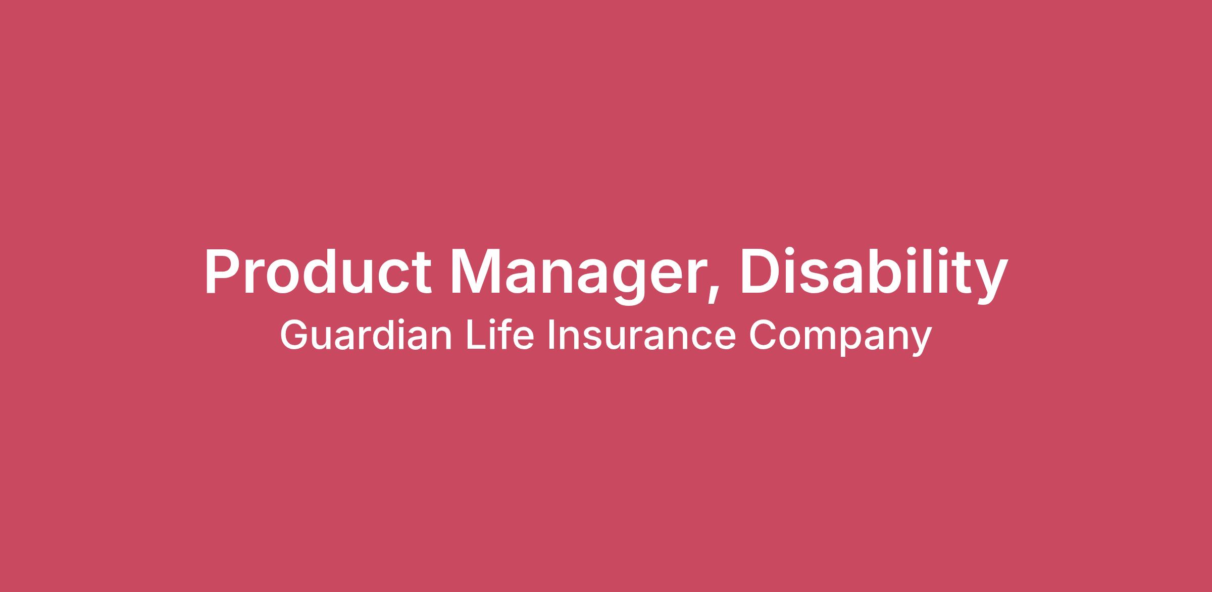 Overview:The Disability Product Manager is instrumental in defining, implementing, maintaining, and improving our Disability solutions (e.g. Short-Term Disability, Long-Term Disability, Paid Leave Rider), coordinating go-to-market activities, and plays a key role in maintaining competitiveness and compliance of the Disability offerings. The Disability Product Manager will support the various aspects of the Disability product offering including but not limited to: new product development, the overall management of the existing portfolio, partnering with distribution and marketing to improve the go-to-market strategy, evaluating and finding ways to improve the customer experience, and ensuring the solutions are aligned to the product and company goals. The Disability Product Manager is passionate about supporting our customers, identifying creative solutions, and understands how to bring these solutions to life in the key moments that matter with the ability to work collaboratively with other stakeholders across the value chain.You Are:An experienced insurance professional who is comfortable working in a matrixed environment and contributing to cross-functional teams.Experienced in project management with a track record of delivering results on time and within budget.An individual who fosters a high level of teamwork and collaboration between employees, teams, across departments and the field as appropriate.Entrepreneurial, with the abilities to work independently under pressure and bring clarity to ambiguous ideas/concepts.An excellent communicator and negotiator, possessing stakeholder management skills.You Have:Bachelor's degree or equivalent experience in business, computer science, marketing science or related fields.Minimum 5+ years of experience in product management, underwriting, and/or claims, preferably in disability, absence, or supplemental health group insurance.Ability to contribute to the development of a clear product vision, translate that vision into actionable product roadmaps, and produce clear supporting documents in PowerPoint, Excel, etc.Financial acumen and analytical skills, ability to analyze and communicate financial information, and support business case development.Analytical and problem-solving skills; comfortable using metrics and data to form insights, guide decisions, and measure success.Knowledge of Agile and Lean product development methodologies.Ability to effectively handle multiple priorities.Excellent organizational skills.You Will:Contribute to the development of a clear product vision and roadmap that is aligned with Guardian’s goals and objectives.Support monitoring and refinement of existing Disability product strategy, aligning with stakeholders and an evangelist for improving the wellness of those we serve.Own accountability for monitoring KPIs to ensure proper adoption and performance outcomes are achieved.Work independently and collaborate with the rest of the product managers and matrix partners to identify opportunities and deliver on shared initiatives.Effectively communicate with all levels of the organization, externally, and in large public forums; articulate information in a manner that is easily understood.Influence negotiations with vendor partners and stakeholders across multiple teams and departments.Execute product management processes throughout the product lifecycle, including product development, roadmap planning, and launch activities.Conduct regular market research, monitor the market, and analyze feedback/data to determine priorities and identify opportunities to improve the offering.Deliver and present reports, product plans, and competitive analyses to internal stakeholders.Develop compelling presentations and documentation. This includes representing Guardian in Thought Leadership webinars and speaking engagements, broker meetings and roadshows, industry associations, etc.Represent the company as the SME and present internally and externally.Occasionally lead projects or sub-teams within a broader project.Occasionally be assigned to other Group Products as neededLocation, Travel, and Work Arrangement:Travel up to 20%Hybrid work arrangement (3+ days in office per week in a local Guardian Office)Preferred Guardian Office locations include: Bethlehem, PA; New York, NY (Hudson Yards); Boston, MA; and Holmdel, NJ.This is a highly rewarding position that affords great opportunities for growth and impact across the organization. Come and join one of the most exciting and dynamic companies in the industry and help make an immediate and positive impact on the world! Salary Range:$79,310.00 - $130,295.00The salary range reflected above is a good faith estimate of base pay for the primary location of the position. The salary for this position ultimately will be determined based on the education, experience, knowledge, and abilities of the successful candidate. In addition to salary, this role may also be eligible for annual, sales, or other incentive compensation.Our PromiseAt Guardian, you’ll have the support and flexibility to achieve your professional and personal goals. Through skill-building, leadership development and philanthropic opportunities, we provide opportunities to build communities and grow your career, surrounded by diverse colleagues with high ethical standards.Inspire Well-BeingAs part of Guardian’s Purpose – to inspire well-being – we are committed to offering contemporary, supportive, flexible, and inclusive benefits and resources to our colleagues. Explore our company benefits at www.guardianlife.com/careers/corporate/benefits. Benefits apply to full-time eligible employees. Interns are not eligible for most Company benefits.Equal Employment OpportunityGuardian is an equal opportunity employer. All qualified applicants will be considered for employment without regard to age, race, color, creed, religion, sex, affectional or sexual orientation, national origin, ancestry, marital status, disability, mil