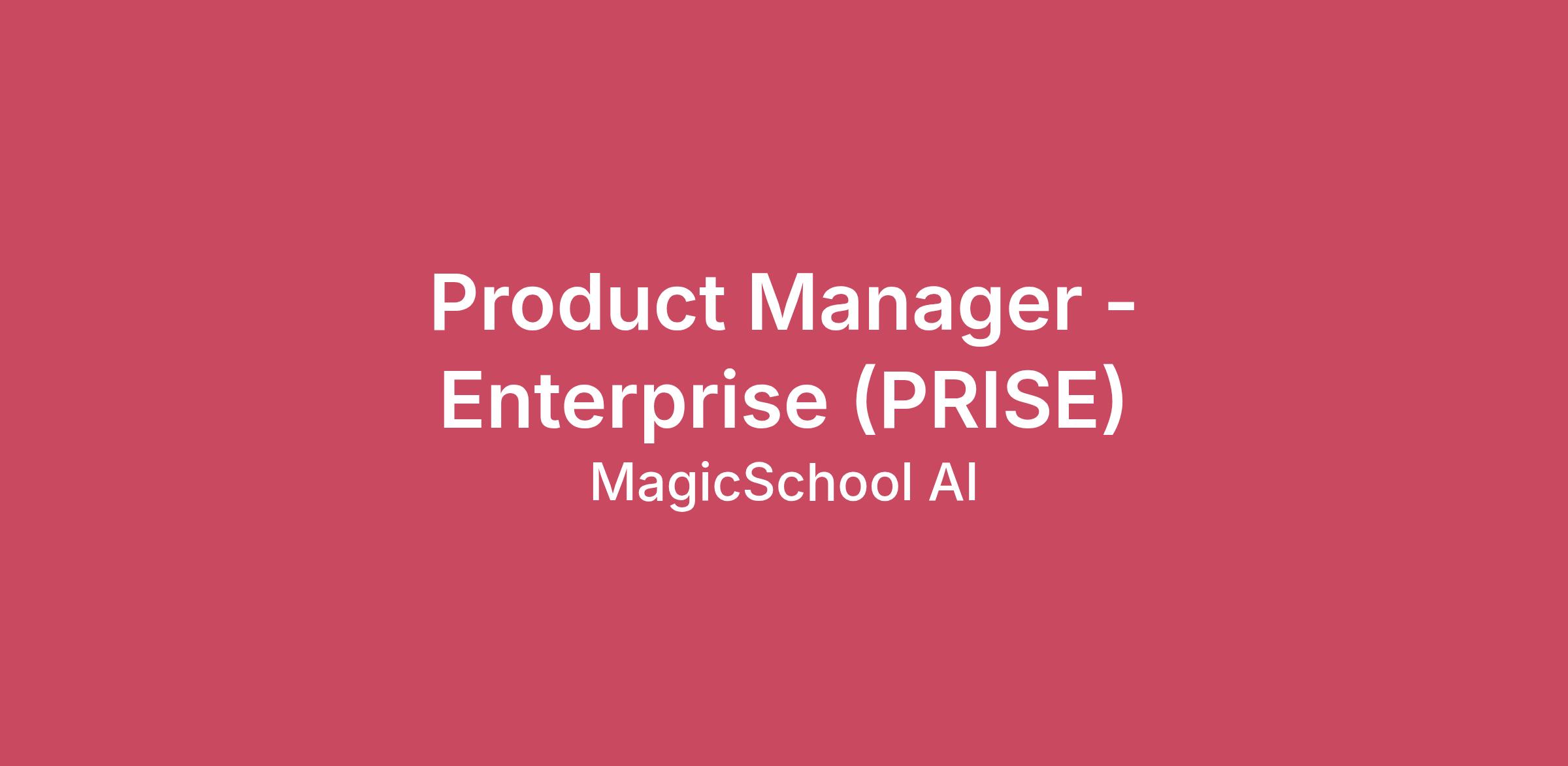 WHO WE ARE: MagicSchool is the premier generative AI platform for teachers. We're just over 2 years old, and more than 7 million teachers from all over the world have joined our platform. Join a top team at a fast growing company that is working towards real social impact. Make an account and try us out at our website and connect with our passionate community on our Wall of Love.Product Manager - Enterprise (PRISE)Role DescriptionAs a Product Manager focused on district partnerships, you will own product experiences that help MagicSchool serve school districts as we onboard and support schools and sites. You’ll build features that address district-level needs such as administration, configuration, governance, adoption, observation and impact. These new experiences will ensure district leaders, IT teams, and educators can confidently deploy and manage MagicSchool across diverse environments.This role emphasizes strong execution and customer empathy, with a focus on translating district partner needs into clear product requirements and shipped solutions. It will require thoughtful synthesis and ability to prioritize amidst tradeoffs. You’ll collaborate closely with engineering, design, and cross-functional partners to deliver reliable, scalable capabilities that support district adoption and day-to-day operations, while contributing to ongoing roadmap refinement as we learn from district usage and feedback.ResponsibilitiesIn this role, you will be responsible for driving towards the following outcomes:Prioritize enterprise and district-facing features that enable successful district-wide adoption, informed by customer needs, sales motions, and long-term platform strategy.Partner closely with engineering to design and deliver scalable, secure, and reliable solutions that meet district requirements and constraints.Collaborate with Sales, CX, and Partnerships to ensure strong expansion and engagement with Enterprise features within school districts.Define and monitor success metrics related to district adoption, usage, and outcomes to guide roadmap decisions.Navigate complex tradeoffs across district stakeholders (IT, curriculum, administrators, educators) to deliver cohesive, high-impact product experiences.Experience & QualificationsTo be successful in this role, you’ll bring the following experience and qualifications:3+ years of product management experience, with demonstrated ownership of complex, multi-user or enterprise-focused products.Strong ability to partner deeply with engineering to translate district needs into scalable product solutions.Track record of evaluating ambiguous problems and delivering pragmatic, high-impact product outcomes.Experience prioritizing and executing in fast-paced, startup environments.Excellent communication and collaboration skills; comfortable working with technical and non-technical stakeholders.Bias toward action and ownership, with the ability to move work forward independently while keeping cross-functional partners aligned.Proven ability to use qualitative and quantitative insights, such as customer feedback, usage data, and operational signals, to inform product decisions and iteration.Nice to have:Experience building or managing enterprise SaaS products, particularly in environments with complex customer needs or long adoption cycles.Familiarity with K–12 school districts or public-sector organizations, including an understanding of how district priorities, constraints, and decision-making structures shape product adoption.Exposure to district procurement, implementation, or change-management processes, and an appreciation for the coordination required to roll out products across schools and sites.Application Notice:Notice: Priority Deadline and Review Start DatePlease note that applications for this position will be accepted until 2/8/26 - applications received after this date will be reviewed on an intermittent basis. While we encourage early submissions, all applications received by the priority deadline will receive equal consideration. Thank you for your interest, and we look forward to reviewing your application.Why Join Us?Work on cutting-edge AI technology that directly impacts educators and students.Join a mission-driven team passionate about making education more efficient and equitable.Flexibility of working from home, while fostering a unique culture built on relationships, trust, communication, and collaboration with our team - no matter where they live.For full time employees:Unlimited time off to empower our employees to manage their work-life balance. We work hard for our teachers and users, and encourage our employees to rest and take the time they need.Choice of employer-paid health insurance plans so that you can take care of yourself and your family. Dental and vision are also offered at very low premiums.Every employee is offered generous stock options, vested over 4 years.401k match & monthly wellness stipend.Our Values:Educators are Magic: Educators are the most important ingredient in the educational process - they are the magic, not the AI. Trust them, empower them, and put them at the center of leading change in service of students and families.Joy and Magic: Bring joy and magic into every learning experience - push the boundaries of what’s possible with AI.Community: Foster community that supports one another during a time of rapid technological change. Listen to them and serve their needs.Innovation: The education system is outdated and in need of innovation and change - AI is an opportunity to bring equity, access, and serve the individual needs of students better than we ever have before.Responsibility: Put responsibility and safety at the forefront of the technological change that AI is bringing to education.Diversity: Diversity of thought, perspectives, and backgrounds helps us serve the wide audience of educators and students around the world.Excellence: Educators and students deserve the best - and we 