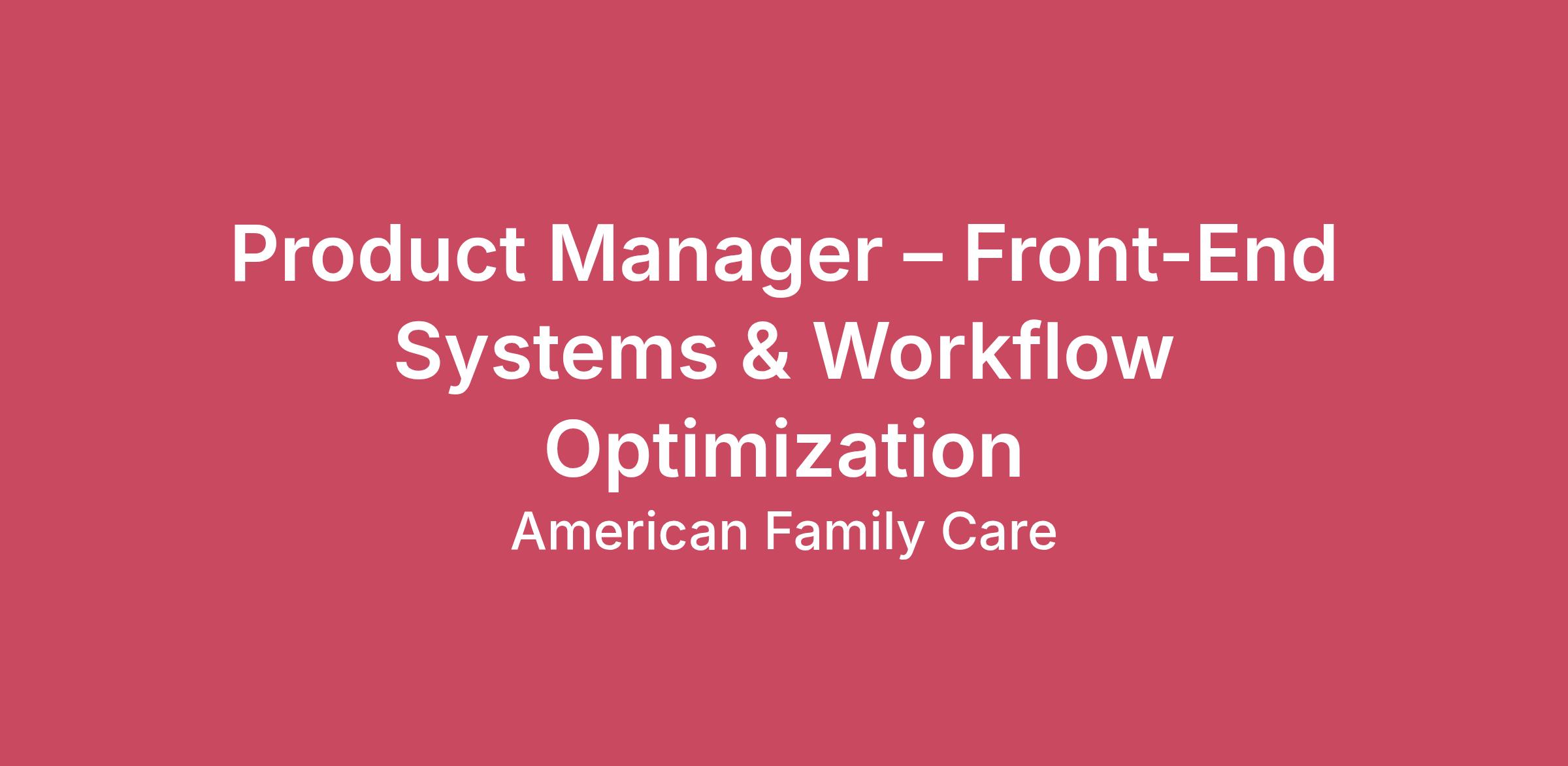 Product Manager – Front-End Systems & Workflow Optimization Overview This role is responsible for improving and optimizing AFC’s core practice management systems and front-end revenue workflows. This role owns the performance and configuration of scheduling, intake, eligibility, and checkout processes across the enterprise. We are seeking a hands-on, technically fluent product manager with a builder mindset — someone who understands how software works under the hood and can independently diagnose, design, and drive system improvements. This is not a coordination-only role. This position requires practical technical depth, bias toward action, and ownership of measurable operational outcomes. What You Will Own · Optimization of AFC’s Practice Management System (Experity or equivalent)· Front-end operational workflows (scheduling → intake → eligibility → checkout)· Configuration standards and governance across clinics· Cross-system alignment with RCM, BI, and digital engagement tools· Automation opportunities that improve throughput and revenue capture This is an enterprise-facing role focused on scalable solutions — not project or practice management support role. Core Responsibilities 1. Practice Management System Optimization · Serve as the product lead for scheduling, registration, eligibility, and checkout workflows.· Improve system configurations (visit types, templates, payer rules, permissions, workflows).· Identify root causes of workflow friction and propose technical or configuration-based solutions.· Partner with vendors and engineering teams to implement enhancements. 2. Workflow Architecture & Throughput Improvement · Redesign front-end workflows to reduce manual work and improve clinic throughput.· Align system configuration with operational best practices.· Eliminate duplicate data entry and rework.· Balance operational needs with scalable enterprise standards. 3. Technical Collaboration & Integration · Understand and document data flow between PMS, RCM, BI, and engagement platforms.· Work directly with vendors to troubleshoot integration or configuration issues.· Interpret API documentation and system behaviors when diagnosing issues.· Support system enhancements involving integrations, automation, or workflow logic. 4. Automation & Digital Enablement · Identify opportunities to automate manual processes.· Support evaluation and implementation of AI or digital workflow enhancements.· Prioritize practical, ROI-driven improvements over experimental initiatives. 5. Data-Driven Product Execution · Partner with BI to track key operational metrics (throughput, utilization, eligibility accuracy, POS collections, workflow rework).· Use performance data to prioritize roadmap decisions.· Measure and report ROI of implemented changes. Ideal Candidate Profile · 5–8 years of experience in product management, healthcare technology, or system implementation.· Previously written production-level code (earlier in career acceptable), OR led complex technical implementations involving system configuration and integrations.· Understands how software is built and deployed, even if not actively coding today.· Comfortable reading API documentation and mapping data flows.· Demonstrates strong ownership and does not wait for direction to drive resolution.· Thinks beyond individual clinic problems and prioritizes scalable enterprise solutions.Former vendor implementation consultants, technical PMs, or former developers who transitioned into product are strongly encouraged to apply. Qualifications · Bachelor’s degree required; healthcare or technical background preferred.· Experience configuring or implementing PMS/EMR systems.· Familiarity with integration concepts (APIs, webhooks, data mapping).· Experience collaborating closely with engineering teams.· Strong analytical skills and comfort working with operational data.· Demonstrated bias toward diagnosing root causes rather than escalating issues. Key Success Metrics · Reduction in manual front-desk steps.· Improved eligibility accuracy and POS collections.· Increased scheduling utilization and visit throughput.· Reduced workflow-related support tickets and rework.· Scalable configuration standards adopted across clinics. Compensation Base salary range: $125,000 – $150,000, plus performance-based bonus tied to operational and revenue impact. This Role Is Not · A meeting coordinator.· A pure project manager.· A clinic-level support desk function.· A documentation-only change management role. This role requires ownership, technical confidence, and measurable execution. This is a remote position. Compensation: $125,000.00 - $150,000.00 per year We are an equal opportunity employer and all qualified applicants will receive consideration for employment without regard to race, color, religion, sex, national origin, disability status, protected veteran status, or any other characteristic protected by law. PS: It’s All About You! American Family Care has pioneered the concept of convenient, patient-centric healthcare. Today, with more than 250 clinics and 800 in-network physicians caring for over 6 million patients a year, AFC is the nation's leading provider of urgent care, accessible primary care, and occupational medicine. Ranked by Inc. magazine as one of the fastest-growing companies in the U.S., AFC's stated mission is to provide the best healthcare possible, in a kind and caring environment, while respecting the rights of all patients, in an economical manner, at times and locations convenient to the patient. If you are looking for an opportunity where you can make a difference in the lives of others, join us on our mission. We invite you to grow with us and experience for yourself the satisfying and fulfilling work that the healthcare industry provides. Please note that a position may be for a company-owned or franchise location. Each franchise-owned and operated location recruits