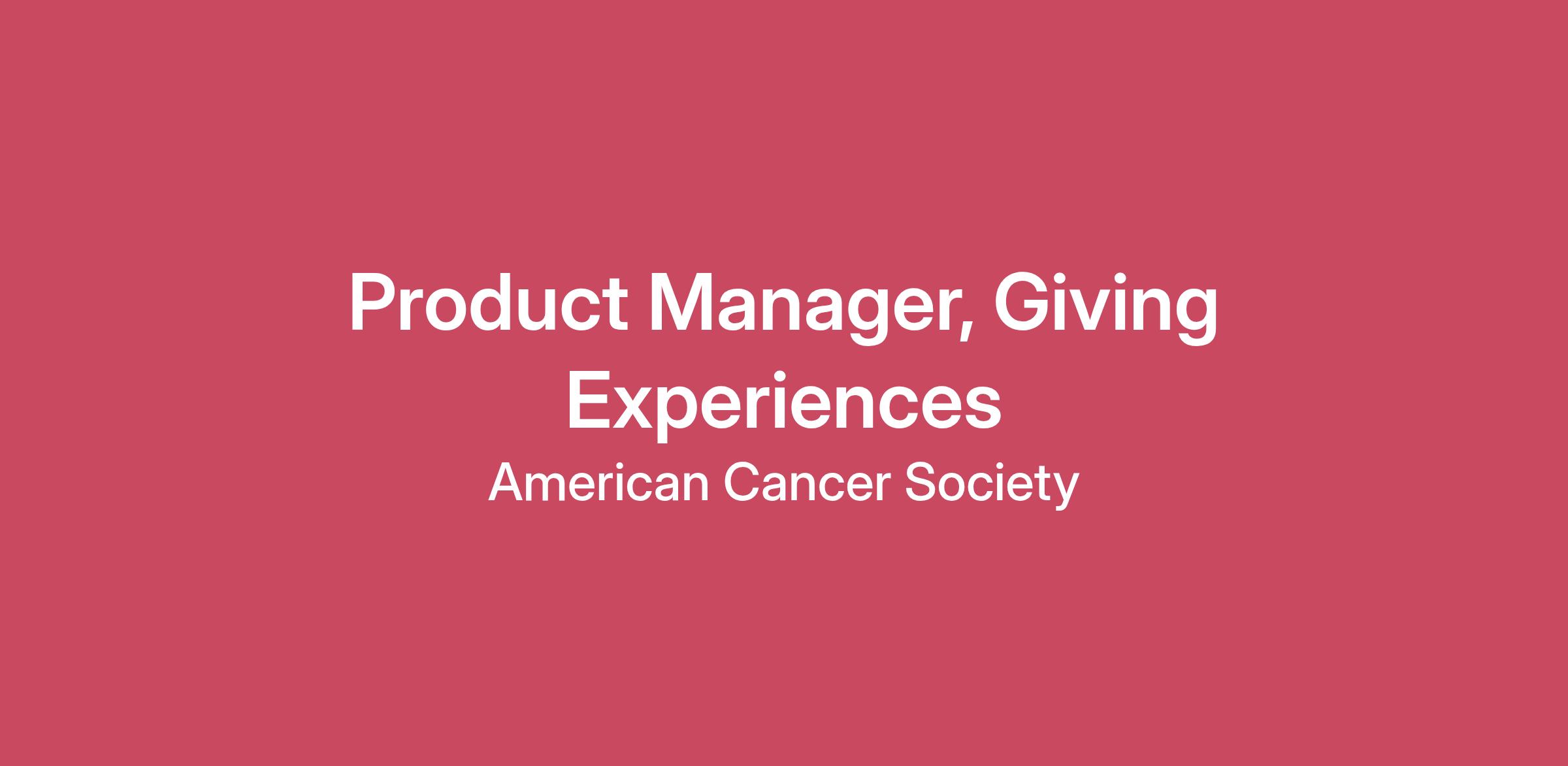 At the American Cancer Society, we're working to end cancer as we know it, for everyone. Our employees and 1.3 million volunteers are raising the bar every single day. We are a culture comprised of diverse backgrounds and experience, to better serve our communities. The people who work at the American Cancer Society focus their diverse talents on our lifesaving mission. It is a calling. And the people who answer it are fulfilled.The Product Manager, Giving Experiences is responsible for managing the lifecycle of assigned digital fundraising products and features from discovery through launch and ongoing iteration. This role supports the delivery of new and existing digital capabilities designed to enhance customer experience, drive revenue and engagement for the digital giving experiences supporting the organization. The Product Manager will have a strong customer focus and analytical skills along with experience in product discovery, writing business requirements, quality assurance testing, and product marketing. This role partners with product leadership, business leads, engineering, design, marketing, and regional staff and volunteers to maximize the effectiveness of fundraising experiences that support the American Cancer Society’s mission and revenue objectives.*This is a remote position*ESSENTIAL FUNCTIONS:Manage the development of new digital product features & enhancements, for products including donation forms, e-commerce, DAF giving, etc; from concept through launch, QA, and ongoing optimization, ensuring scalability and alignment with organizational and product goals and objectives. (25%)Assist with creating, maintaining, and socializing product concepts and roadmaps for digital giving experiences to establish a shared vision and build consensus on priorities with key stakeholders. (20%)Gather and analyze user feedback, usage data, KPI’s, and competitive trends to validate decisions, monitor product performance, and and guide continuous improvements. (15%)Write requirements, user stories, and acceptance criteria, in partnership with product leads and business analysts, and serve as UAT/production validation tester during development sprints. (15%)Support go-to-market strategy and adoption, including campaign readiness, launch planning, documentation, and training resources for staff and volunteers to drive platform engagement and usage. (15%)Perform ongoing market research and recommend new product features, tools, or enhancements that improve the product or constituent experience. (10%)EXPERIENCE/QUALIFICATIONS:Minimum Degree Required: Bachelor's DegreePreferred Degree: Bachelor's Degree – preferably in business or marketing, and/or equivalent work experience.Years of experience: 3-5KNOWLEDGE, SKILLS, AND ABILITY: 3-5 years experience, some digital product management experience preferredWorking knowledge of agile product management practices, experience of nonprofit technology a plus.Strong user research and data analysis skills, with ability to translate insights into product enhancements.Excellent communication and collaboration with stakeholder teams. Ability to balance multiple priorities in a fast-paced environment.Knowledge of nonprofit fundraising, donor behavior, and digital giving trends a plus. TRAVEL REQUIREMENTS:Ability to travel, when necessary, limited to external meetings and conferences. PHYSICAL REQUIREMENTS:No or very limited physical effort required. The starting rate is $71,600 to $89,500. The final candidate's relevant experience/skills will be considered before an offer is extended. Actual starting pay will vary based on non-discriminatory factors including, but not limited to, geographic location, experience, skills, specialty, and education.ACS provides staff a generous paid time off policy; medical, dental, retirement benefits, wellness programs, and professional development programs to enhance staff skills. Further details on our benefits can be found on our careers site at: jobs.cancer.org/benefits. We are a proud equal opportunity employer.