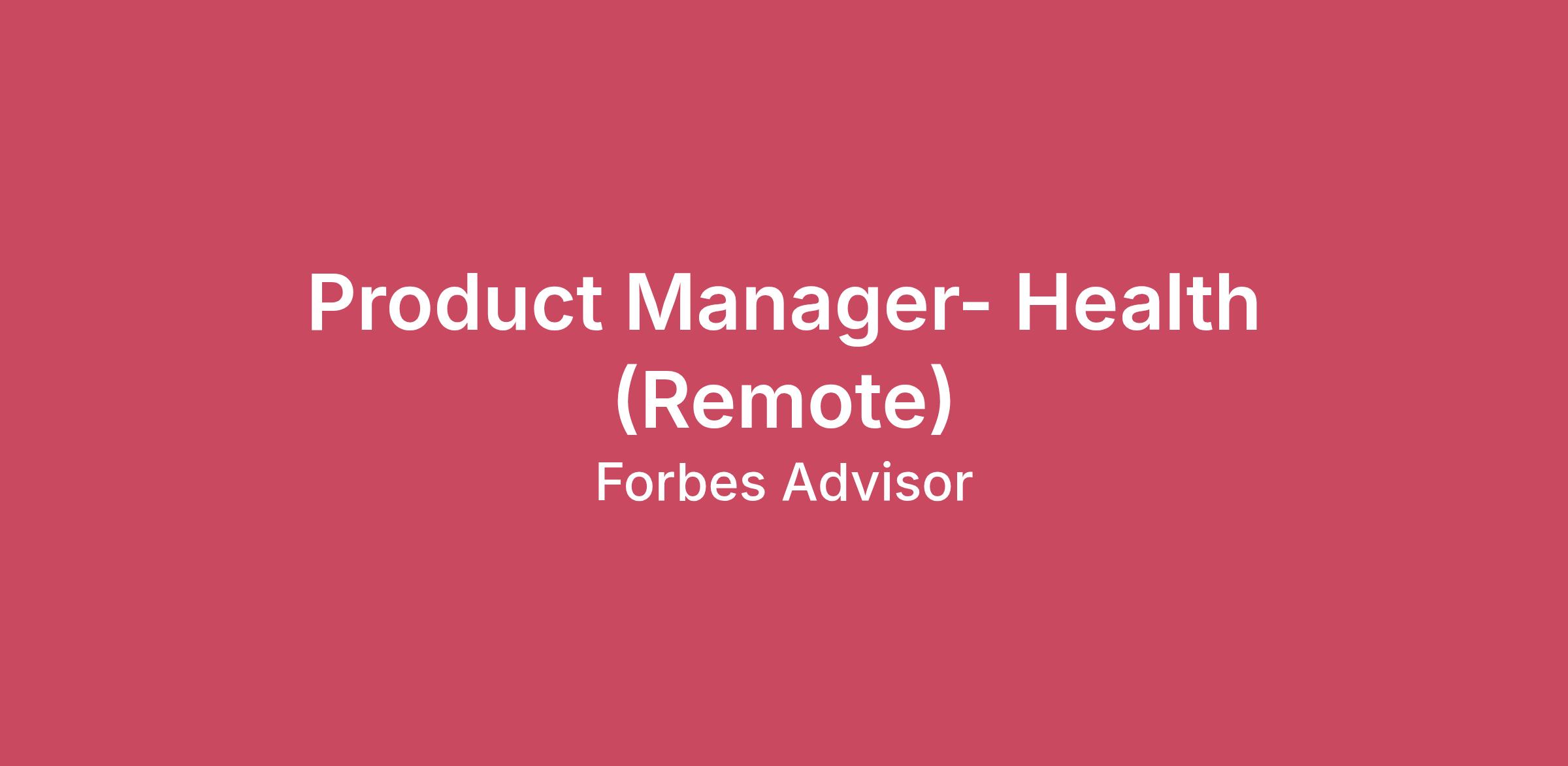 Company DescriptionAt Forbes Advisor, our mission is to help readers turn their aspirations into reality. We arm people with trusted advice and guidance, so they can make informed decisions they feel confident in and get back to doing the things they care about most.We are an experienced team of industry experts dedicated to helping readers make smart decisions and choose the right products with ease.Forbes Advisor boasts decades of experience across dozens of geographies and teams, including Content, SEO, Business Intelligence, Finance, HR, Marketing, Production, Technology and Sales. The team brings rich industry knowledge to Forbes Advisor’s global coverage of consumer credit, debt, health, home improvement, banking, investing, credit cards, small business, education, insurance, loans, real estate and travel.Job DescriptionForbes Advisor is hiring! We are searching for a Product Manager who will play a pivotal role in shaping ourselves as a tech leader in the US Health market. Reporting into the UK-based Head of Product, you will collaborate closely with senior stakeholders, customers, and cross-functional teams to drive product discovery, development, and delivery. This is an exciting opportunity to lead and influence the key areas of our business while working in an environment that values innovation, creativity, and adaptability.Responsibilities: Take full ownership of the Health product vertical, leading initiatives that balance user needs, technical feasibility, and business goals. Drive both strategy and execution, ensuring the roadmap supports long-term growth.Work collaboratively with cross-functional teams—including engineering, design, analytics, and commercial—to deliver best-in-class product experiences from concept through to release and beyond. Define and manage a structured product backlog. Clearly prioritise initiatives based on impact, resource availability, and strategic alignment, while staying responsive to new information. Dive deep into user behaviours, feedback, and data to understand what drives value. Regularly test assumptions through prototyping, experimentation, and structured discovery. Track performance across key metrics, identifying areas of improvement and driving iterative enhancements post-launch. Act as the central point of communication across the business for your product area, ensuring transparency, managing stakeholder expectations, and aligning on shared outcomes. Play a key role in refining product development practices across the team—bringing experience, structure, and a proactive mindset to each challenge. Qualifications: 6+ years of experience in product management, with a strong track record of delivering high-impact features or owning a product area Proven experience of the US Health market, an extensive knowledge of key market trends and lead generation journeysConfident working across the full product lifecycle—from discovery and definition to delivery and iteration Comfortable leading cross-functional teams and managing input from multiple stakeholders Data-driven, with the ability to define and track performance metrics, and use insights to inform decisions Strong communication and influencing skills, able to build alignment and manage trade-offs Curious, collaborative, and proactive in identifying new opportunities or resolving blockers What We Offer: A visionary role with the freedom to shape the tech stack and strategic direction of your product area. Build a modern serverless setup, moving away from monolithic solutions to version-controlled services and stores. Work with exciting brands like Forbes in a rapidly expanding environment. Enjoy a supportive and agile culture that encourages innovation and embraces change. Additional InformationForbes Advisor provides equal employment opportunities to all employees and applicants for employment and prohibits discrimination and harassment of any type without regard to race, color, religion, age, sex, national origin, disability status, genetics, protected veteran status, sexual orientation, gender identity or expression, or any other characteristic protected by federal, state or local laws.This policy applies to all terms and conditions of employment, including recruiting, hiring, placement, promotion, termination, layoff, recall, transfer, leaves of absence, compensation and training.#LI-REMOTE #LI-NM1