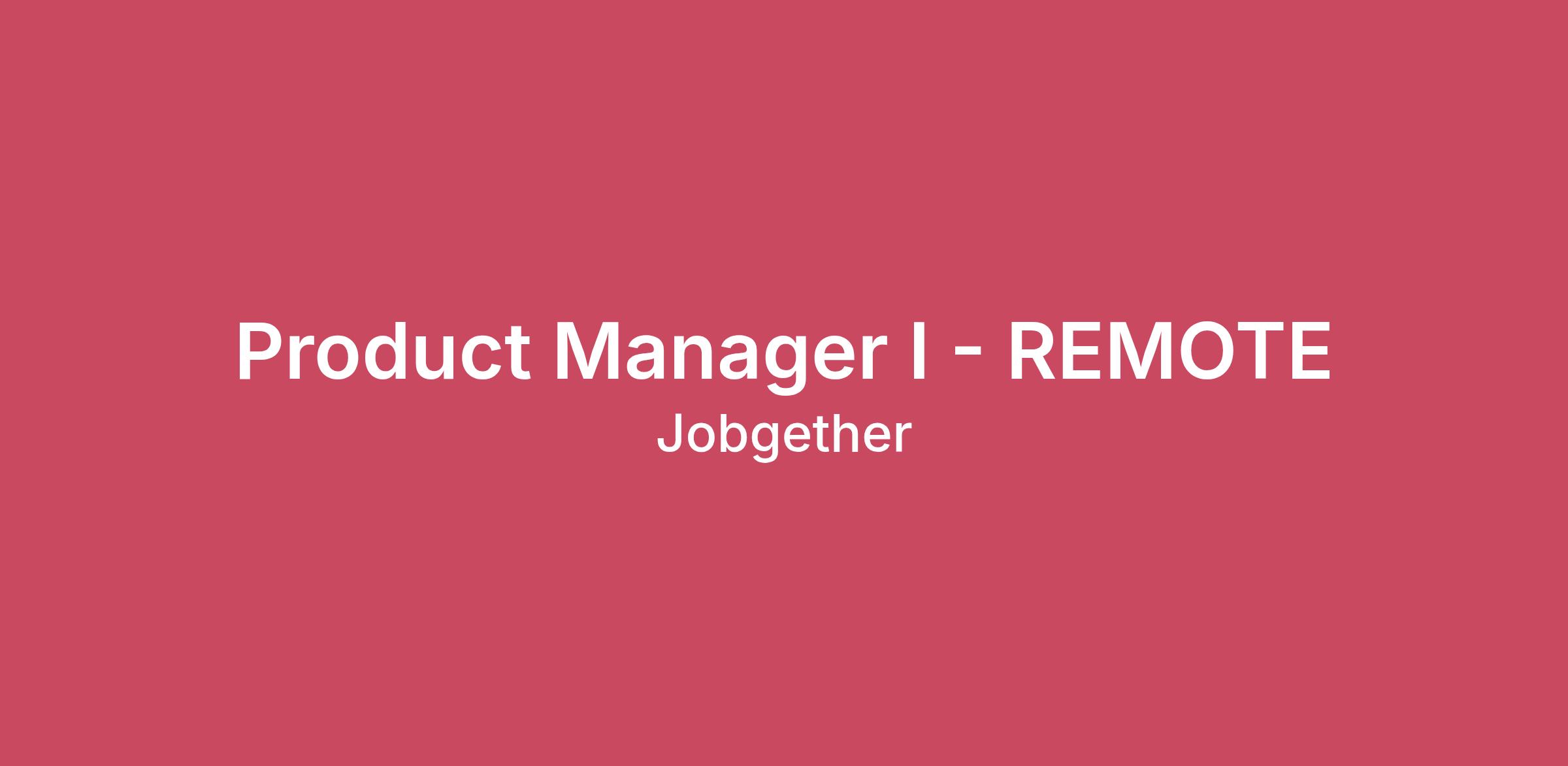 Product Manager I - REMOTE