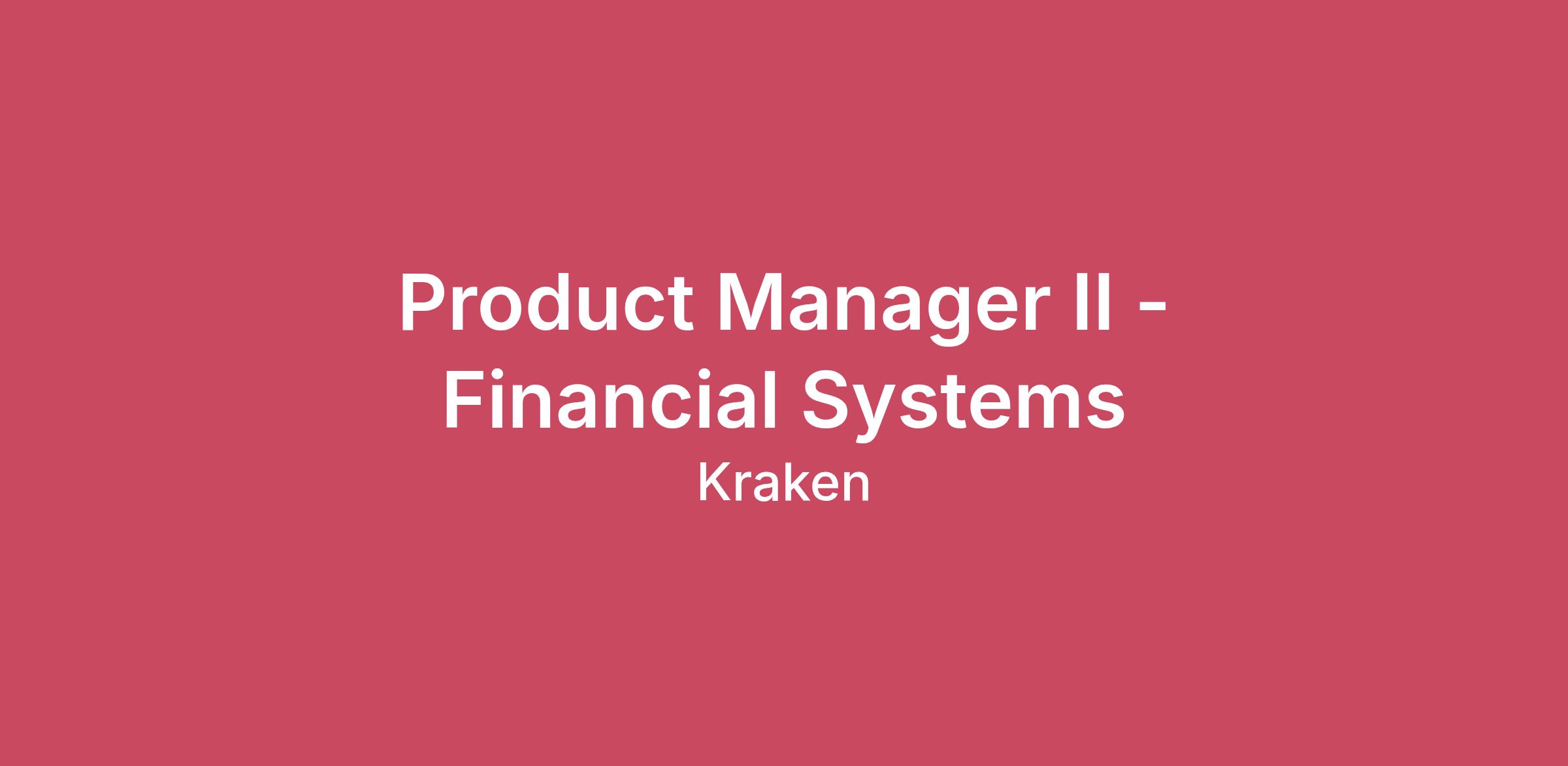Building the Future of Crypto Our Krakenites are a world-class team with crypto conviction, united by our desire to discover and unlock the potential of crypto and blockchain technology.What makes us different? Kraken is a mission-focused company rooted in crypto values. As a Krakenite, you’ll join us on our mission to accelerate the global adoption of crypto, so that everyone can achieve financial freedom and inclusion. For over a decade, Kraken’s focus on our mission and crypto ethos has attracted many of the most talented crypto experts in the world.Before you apply, please read the Kraken Culture page to learn more about our internal culture, values, and mission. We also expect candidates to familiarize themselves with the Kraken app. Learn how to create a Kraken account here.As a fully remote company, we have Krakenites in 70+ countries who speak over 50 languages. Krakenites are industry pioneers who develop premium crypto products for experienced traders, institutions, and newcomers to the space. Kraken is committed to industry-leading security, crypto education, and world-class client support through our products like Kraken Pro, Desktop, Wallet, and Kraken Futures.Become a Krakenite and build the future of crypto!Proof of workThe teamGiven our rapid growth, we are looking for a proactive Product Manager to join Kraken’s Financial Systems product group. You’ll play a critical role in shaping and scaling the systems that underpin Kraken’s accounting, treasury, and financial operations, while acting as a strong bridge between engineering, finance, treasury, and the broader product organisation.Your product area has not previously operated within a fully established product structure. As such, there is a unique opportunity to shape and define how product management operates across Kraken’s core financial systems, setting clear ownership, vision, and ways of working.You’ll be working closely with the teams that own Kraken’s accounting, treasury, and financial control platforms, as well as partnering with product owners across the organisation whose products and services interact with Finance and Treasury. These systems are foundational to the business, supporting accurate financial reporting, liquidity management, regulatory requirements, and day-to-day operational decision-making across crypto-native products, tokenized equities, and traditional financial instruments. You will report into the Senior Product Manager of this domain, operating at the intersection of highly technical systems, complex financial workflows, and cross-product dependencies.The opportunityBe the product manager for Kraken’s Financial Systems, covering accounting, treasury, and related financial platforms.Work closely with your engineering squads to establish a strong product culture and clear ownership within a historically project-driven domain.Partner deeply with Finance, Treasury, Accounting, Risk, and Compliance stakeholders to understand their needs and translate them into scalable, reliable system capabilities.Collaborate with product owners across the organisation whose teams integrate with or depend on financial and treasury systems, ensuring alignment, clear interfaces, and shared priorities.Collaborate closely with developers to ensure complex financial and technical challenges are solved in ways that ensure accuracy, auditability, scalability, and resilience.Drive the development process end-to-end, ensuring products are delivered on time and meet Kraken’s quality, reliability, and control standards.Participate in strengthening the overall product group through close collaboration with your globally distributed team of fellow product managers.Skills you should HODLPrior experience in product management or technical product management.Experience working on complex internal systems, platforms, or enterprise software, ideally within financial services or trading environments.Deep understanding of financial instruments and markets, including crypto assets, tokenized equities, derivatives, securities, and their associated lifecycle events.Strong knowledge of payment processes and methods, including fiat and crypto rails, settlement, clearing, and reconciliation concepts.A background that enables you to engage confidently in discussions around system design, integrations, data models, and trade-offs impacting reliability and performance.Ability to bridge highly technical system design with financial, accounting, and treasury requirements.Nice to havesExperience with accounting systems, treasury management systems, or financial data platforms.Familiarity with financial controls, audits, or regulatory reporting requirements across multiple jurisdictions.Experience coordinating across multiple product teams with shared platform dependencies.Experience integrating systems across trading, payments, custody, or securities platforms.Experience working in a fast-paced start-up or scale-up environment.Unless a specific application deadline is stated in the job posting, applications are accepted on an ongoing basis.Please note, applicants are permitted to redact or remove information on their resume that identifies age, date of birth, or dates of attendance at or graduation from an educational institution.We consider qualified applicants with criminal histories for employment on our team, assessing candidates in a manner consistent with the requirements of the San Francisco Fair Chance Ordinance.Kraken is powered by people from around the world and we celebrate all Krakenites for their diverse talents, backgrounds, contributions and unique perspectives. We hire strictly based on merit, meaning we seek out the candidates with the right abilities, knowledge, and skills considered the most suitable for the job. We encourage you to apply for roles where you don't fully meet the listed requirements, especially if you're passionate or knowledgable about crypto!As an equal opportunity employer, we don