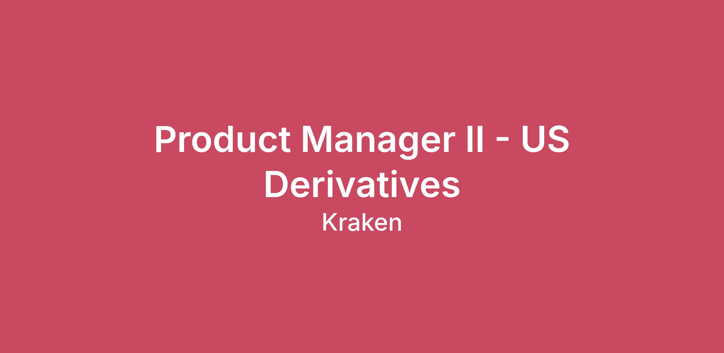 Building the Future of Crypto Our Krakenites are a world-class team with crypto conviction, united by our desire to discover and unlock the potential of crypto and blockchain technology.What makes us different? Kraken is a mission-focused company rooted in crypto values. As a Krakenite, you’ll join us on our mission to accelerate the global adoption of crypto, so that everyone can achieve financial freedom and inclusion. For over a decade, Kraken’s focus on our mission and crypto ethos has attracted many of the most talented crypto experts in the world.Before you apply, please read the Kraken Culture page to learn more about our internal culture, values, and mission. We also expect candidates to familiarize themselves with the Kraken app. Learn how to create a Kraken account here.As a fully remote company, we have Krakenites in 70+ countries who speak over 50 languages. Krakenites are industry pioneers who develop premium crypto products for experienced traders, institutions, and newcomers to the space. Kraken is committed to industry-leading security, crypto education, and world-class client support through our products like Kraken Pro, Desktop, Wallet, and Kraken Futures.Become a Krakenite and build the future of crypto!Proof of workThe teamThe Derivatives Product Team is responsible for driving the derivatives roadmap and strategy forward to deliver our clients a best in class derivatives exchange. Our team builds a range of derivatives services including the derivatives trading engine, trading APIs and UIs, and the products that trade on them.The opportunityAssume ownership of the prediction markets and event-based contracts product roadmap, functional design and competitive strategy.Lead relevant working groups including front-end applications and APIs from ideation to product launch.Work closely with Engineering, Design, Operations, Compliance and other product managers to manage priorities within the working group and balance the needs of internal stakeholders on the product road map.Contribute to the development of the strategy, road map, and business plan for prediction markets, event based contracts and other US derivative products.Perform research to gain market insights across the industry.Perform User Acceptance Testing and ensure that engineering work has been built to meet the requirements laid out.Help to manage engagement with customers, internal and various other external parties.Evangelize the power of analytics and experimentation in building a data-driven organization.Skills you should HODLWorking knowledge of US CFTC based derivative products, including but not limited to event-based contracts and strong understanding of market design and structure.Previous experience building out US derivative trading products for institutional and / or retail clients.Proven track record of leading cross-functional teams to deliver complex, high-impact products.Familiarity with flow of funds within different parties that engage with US based derivatives products and crypto native spot products.Previous product management experience, with a minimum of 1 year in crypto and/or forex/brokerage industries; preferably derivative focused offerings.Strong knowledge of global crypto derivative offerings across traditional markets and crypto-native CeFi & DeFi.Exceptional communication, stakeholder management, and the ability to distill complex ideas.Unless a specific application deadline is stated in the job posting, applications are accepted on an ongoing basis.Please note, applicants are permitted to redact or remove information on their resume that identifies age, date of birth, or dates of attendance at or graduation from an educational institution.We consider qualified applicants with criminal histories for employment on our team, assessing candidates in a manner consistent with the requirements of the San Francisco Fair Chance Ordinance.Kraken is powered by people from around the world and we celebrate all Krakenites for their diverse talents, backgrounds, contributions and unique perspectives. We hire strictly based on merit, meaning we seek out the candidates with the right abilities, knowledge, and skills considered the most suitable for the job. We encourage you to apply for roles where you don't fully meet the listed requirements, especially if you're passionate or knowledgable about crypto!We may ask candidates to complete job-related skills or work-style assessments as part of our hiring process. These assessments are designed to evaluate competencies relevant to the role and are applied consistently across candidates for similar positions. Assessment results are considered alongside other relevant information, such as experience and interviews, and are not the sole basis for any employment decision.As an equal opportunity employer, we don’t tolerate discrimination or harassment of any kind. Whether that’s based on race, ethnicity, age, gender identity, citizenship, religion, sexual orientation, disability, pregnancy, veteran status or any other protected characteristic as outlined by federal, state or local laws. Stay in the knowFollow us on TwitterLearn on the Kraken BlogConnect on LinkedInCandidate Privacy Notice