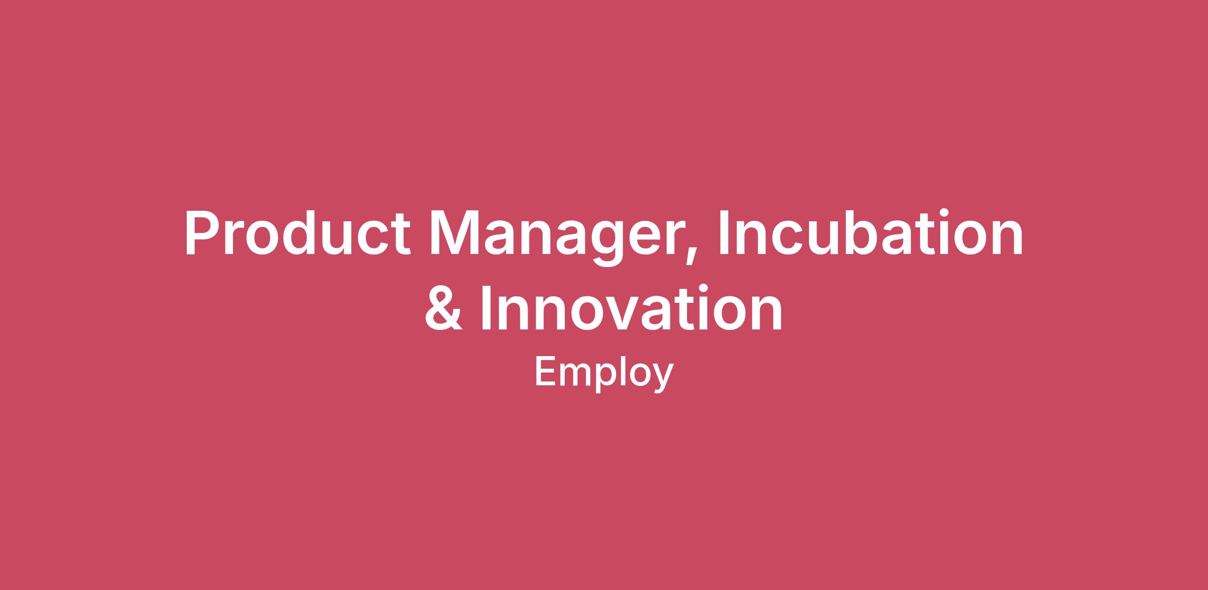 Product Manager, Incubation & Innovation