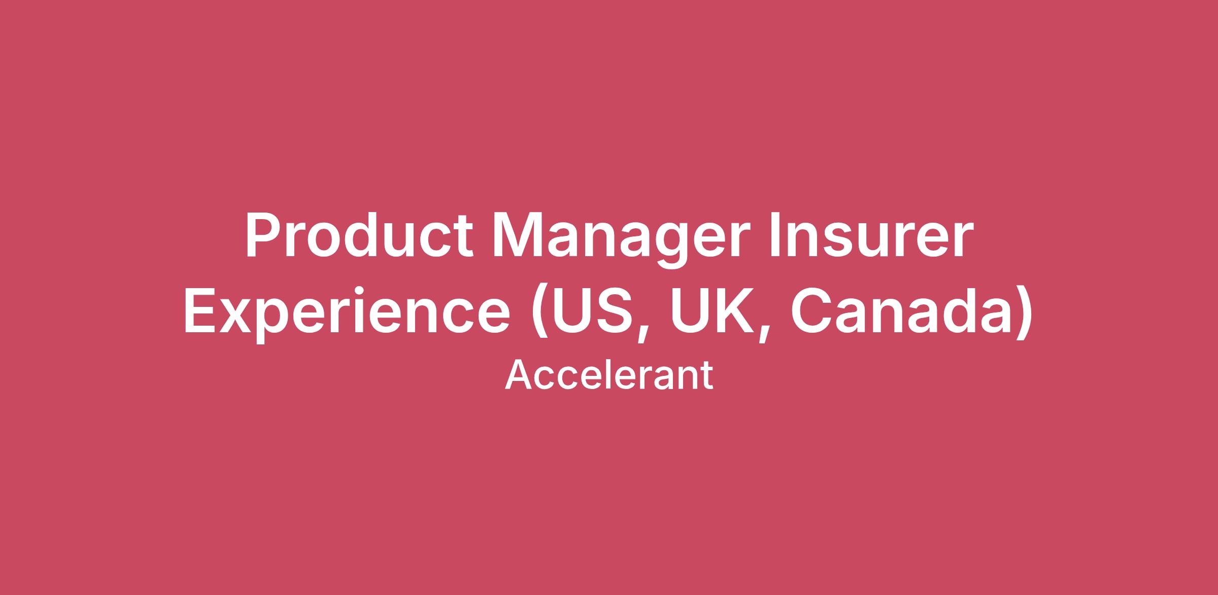 Product Manager Insurer Experience (US, UK, Canada)