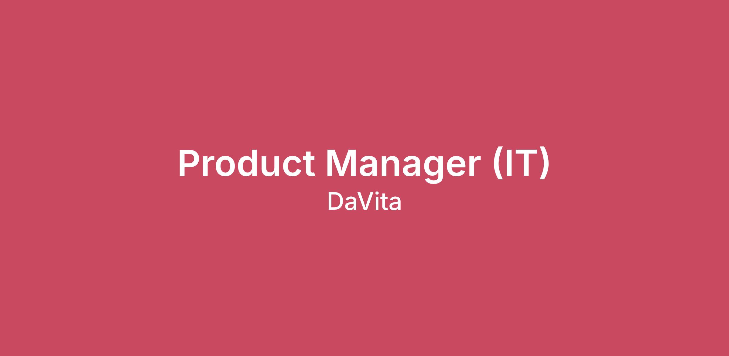 Posting Date02/11/20262000 16th St, Denver, Colorado, 80202-5117, United States of AmericaAt DaVita, we find that our best leaders are those who create an inspiring vision for the future and empowers their team to achieve success. They have always enjoyed tackling difficult problems and believe that the best way to solve them is through collaborative, team efforts. They take ownership of results and instill accountability in those they lead. They are driven, strong communicators, relationship builders, and find real fulfillment in challenging work.Sound like you? Then you might be a great fit for Product Manager with DaVita.Here's what you can expect as a Product Manager at DaVita:Product Managers are the conduit for requirements between our customer community, product management team, clinical operations, and development team in a highly collaborative and complex clinical environment. In addition to defining product requirements and specification to drive the engineering development process, Product Mangers also actively participate in the take-to-market strategy to assure product success.Product Managers are responsible for transforming business objectives and domain specific marketing requirements into actionable engineering stories, actively participate in the sprinting process and drive cost, content and planning trade-offs throughout the development cycle. Product Managers work closely with clinical product management, technical, and architecture leads in developing product concepts and technology road map.In addition to upstream activities, Product Managers also participate in roll-out and pilot program assessment - working closely with field operations, documentation, and product road-mapping.Responsibilities include, but are not limited to:Serve the role of product lead in both agile and waterfall software development methodologies: define Epics and Features, actively participate and facilitate capability mapping and feature definition workshops to craft Business Requirements DocumentsRoadmapping and implementation planningManage scope and requirements schedule, negotiate scope trade-offs throughout the development cycleReview and guide Solution Requirement Specification crafting by Business Analysts on the teamEffectively interface with cross-functional teams of clinical domain experts, product directors, program management, and application development teams in a new product development/enhancement processAnalyzing data using simple SQL queriesPartnering with Architecture, Data Governance, Data Integration, and other related teams to develop and maintain a data product roadmapPrioritize product fixes and enhancements based on input from key stakeholdersWork with developers and QA Engineers to produce and test new features and fixesBecome a product expert and subject matter expert on a portfolio of data productsQualifications:Minimum 8 years in a dedicated Business Analyst roleExperience with data warehousing, data marts, and data lakes requiredIn-depth understanding of data models requiredStrong experience building SQL Queries requiredExperience with enterprise reporting preferred: Cognos or Tableau preferredJoin us as we pursue our vision "To Build the Greatest Healthcare Community the World has Ever Seen."Why wait? Explore a career with DaVita today.Go to http://careers.davita.com to learn more or apply.What We’ll Provide:More than just pay, our DaVita Rewards package connects teammates to what matters most. Teammates are eligible to begin receiving benefits on the first day of the month following or coinciding with one month of continuous employment. Below are some of our benefit offerings.Comprehensive benefits: Medical, dental, vision, 401(k) match, paid time off, PTO cash outSupport for you and your family: Family resources, EAP counseling sessions, access Headspace®, backup child and elder care, maternity/paternity leave and moreProfessional development programs: DaVita offers a variety of programs to help strong performers grow within their career and also offers on-demand virtual leadership and development courses through DaVita’s online training platform StarLearning.#LI-JH4At DaVita, we strive to be a community first and a company second. We want all teammates to experience DaVita as "a place where I belong." Our goal is to embed belonging into everything we do in our Village, so that it becomes part of who we are. We are proud to be an equal opportunity workplace and comply with state and federal affirmative action requirements. Individuals are recruited, hired, assigned and promoted without regard to race, national origin, religion, age, color, sex, sexual orientation, gender identity, disability, protected veteran status, or any other protected characteristic.This position will be open for a minimum of three days.The Salary Range for the role is $85,000.00 - $135,000.00 per year. If a candidate is hired, they will be paid at least the minimum wage according to their geographical jurisdiction and the exemption status for the position.New York Exempt: New York City and Long Island: $66,300.00/year, Nassau, Suffolk, and Westchester counties: $66,300.00/year, Remainder of New York state: $62,353.20/year New York Non-exempt: New York City and Long Island: $17.00/hour, Nassau, Suffolk, and Westchester counties: $17.00/hour, Remainder of New York state: $16.00/hourWashington Exempt: $80,168.40/year Washington Non-exempt: Bellingham: $19.13/hour, Burien: $21.63/hour, Everette: $20.77/hour, Unincorporated King County: $20.82/hour, Renton: $21.57/hour, Seattle: $21.30/hour, Tukwila: $21.65/hour, Remainder of Washington state: $17.13/hourFor location-specific minimum wage details, see the following link: DaVita.jobs/WageRatesCompensation for the role will depend on a number of factors, including a candidate’s qualifications, skills, competencies and experience. DaVita offers a competitive total rewards package, which includes a 401k match, healthcare coverage and a br