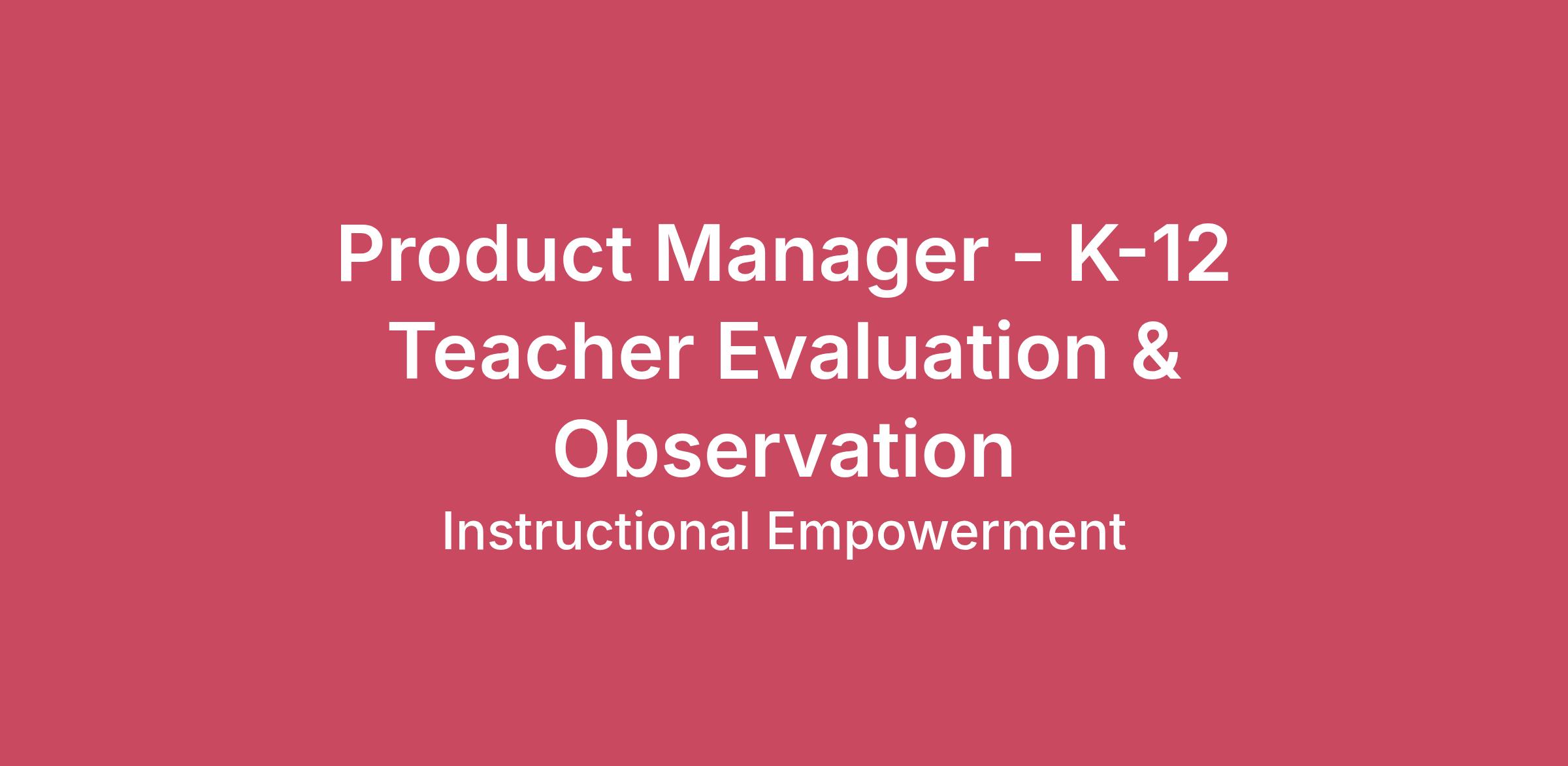 Product Manager – Teacher Evaluation & ObservationRemote/Full-time/ExemptCentral or Eastern Time Zone Applicants OnlyInstructional Empowerment (IE) is a mission-driven organization dedicated to ending generational poverty and eliminating achievement gaps through rigorous Tier 1 instruction that ensures deeper learning for ALL students.We are seeking a Product Manager to define and lead the long-term strategy for IE’s teacher evaluation and observation model. This is a highly visible, high-accountability role for a self-directed, results-driven leader who brings urgency, ownership, and relentless commitment to building the best instructional product in the K–12 market.What You’ll DoOwn the multi-year product vision and roadmap with a relentless commitment to strengthening the product and delivering results.Proactively identify market opportunities, instructional gaps, and competitive threats—and act on them.Drive the thoughtful integration of AI and emerging technologies to raise the bar on instructional impact and usability.Represent the voice of K–12 educators and leaders, translating insight into decisive, high-impact priorities.Push work forward in ambiguous environments, making clear trade-offs to maintain momentum.Align and influence cross-functional teams to execute against ambitious strategic goals.Monitor adoption, engagement, and impact metrics and adjust strategy quickly to improve results.What You BringProven experience leading product K-12 strategy with a strong bias toward action and follow-through.Deep understanding of K–12 instruction and educator evaluation systems.Self-starter mentality—comfortable taking ownership, setting direction, and driving progress without waiting to be asked.High personal standards and a willingness to work hard to build something exceptional.Ability to influence across teams, challenge thinking, and move work forward.Strong analytical judgment paired with clear, compelling communication.Curiosity and discernment around AI and emerging technologies, focused on real instructional value.Core CompetenciesStrategic Thinking & OwnershipCustomer-Centric InsightBias for Action & ResultsCross-Functional InfluenceData-Informed Decision-MakingMission-Driven ProfessionalismWhy IEThis role is for someone who wants to build, improve, and push—not maintain the status quo. Your work will directly shape instruction, support educators, and impact student outcomes at scale.What We Offer?At Instructional Empowerment, you’ll be part of a passionate, mission-driven team working to transform K–12 education. We offer a collaborative, inclusive work culture, opportunities for professional growth, and the chance to make a tangible impact on students, schools, and communities.Salary range- $100,000-$120,000Competitive compensation and benefits package100% paid medical/dental/vision/LTD/STD/Life (Employee & Dependents) 15 Days PTO given upfront in your first year8 Paid Holidays + 2 Floating Holidays401K plan - 4% company matchExceptional Onboarding ProcessAnd many more benefitsWant to learn more about Instructional Empowerment?Visit our website at: www.instructionalempowerment.com Follow us on FacebookSee what our employees have to say GlassdoorLike us on InstagramThis is a remote role with approximately 25% travel for events and conferences.EEO StatementInstructional Empowerment provides equal employment opportunity to all individuals regardless of their race, color, creed, religion, age, sex, gender identity or expression, sexual orientation, national origin, disability, veteran status, or any other characteristic protected by state, federal, or local law. This policy applies to all terms and conditions of employment, including recruiting, hiring, placement, promotion, termination, layoff, recall, transfer, leaves of absence, compensation, and training.