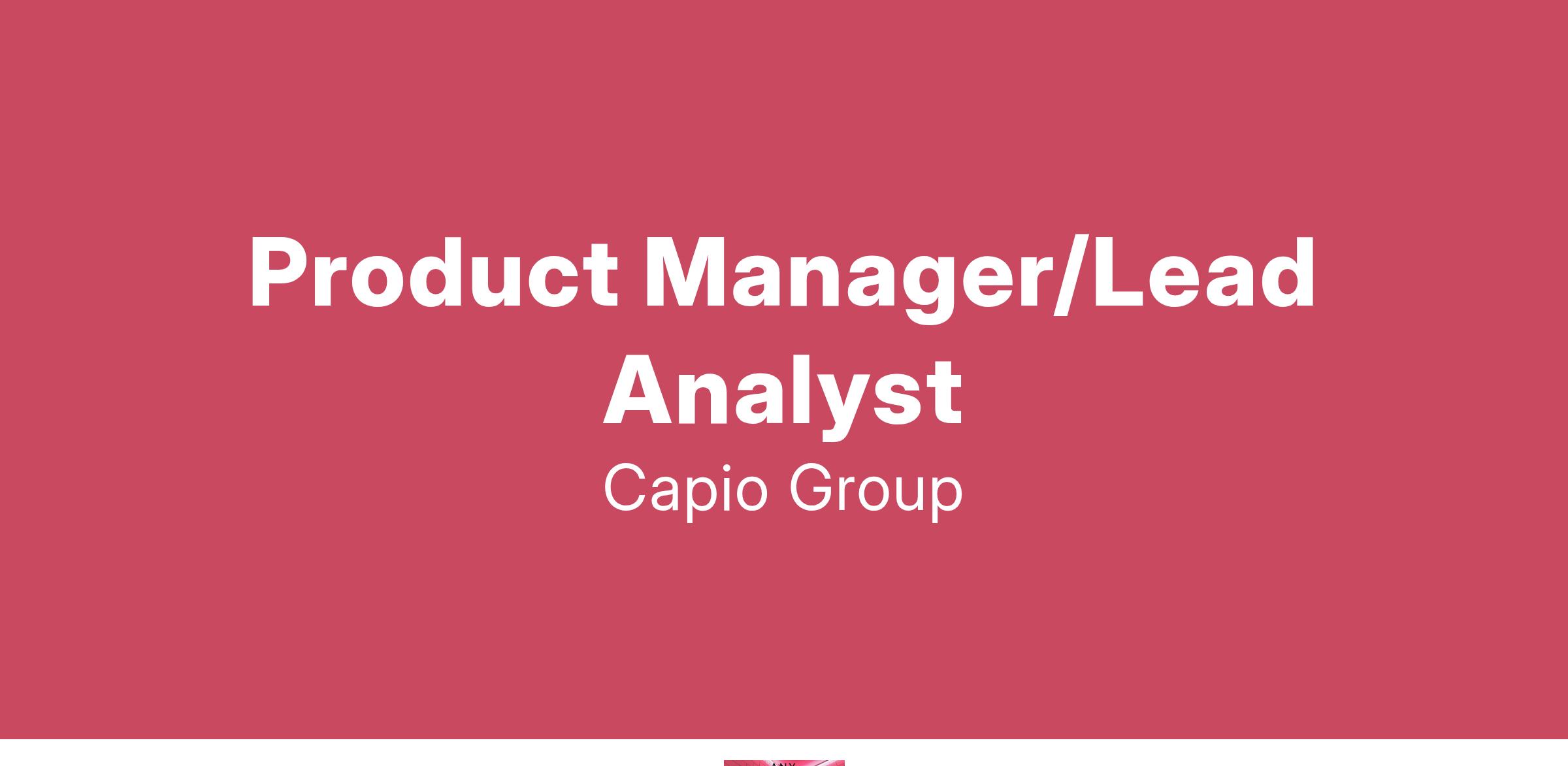 Capio Group is looking for an experienced Product Manager/Lead Analyst!