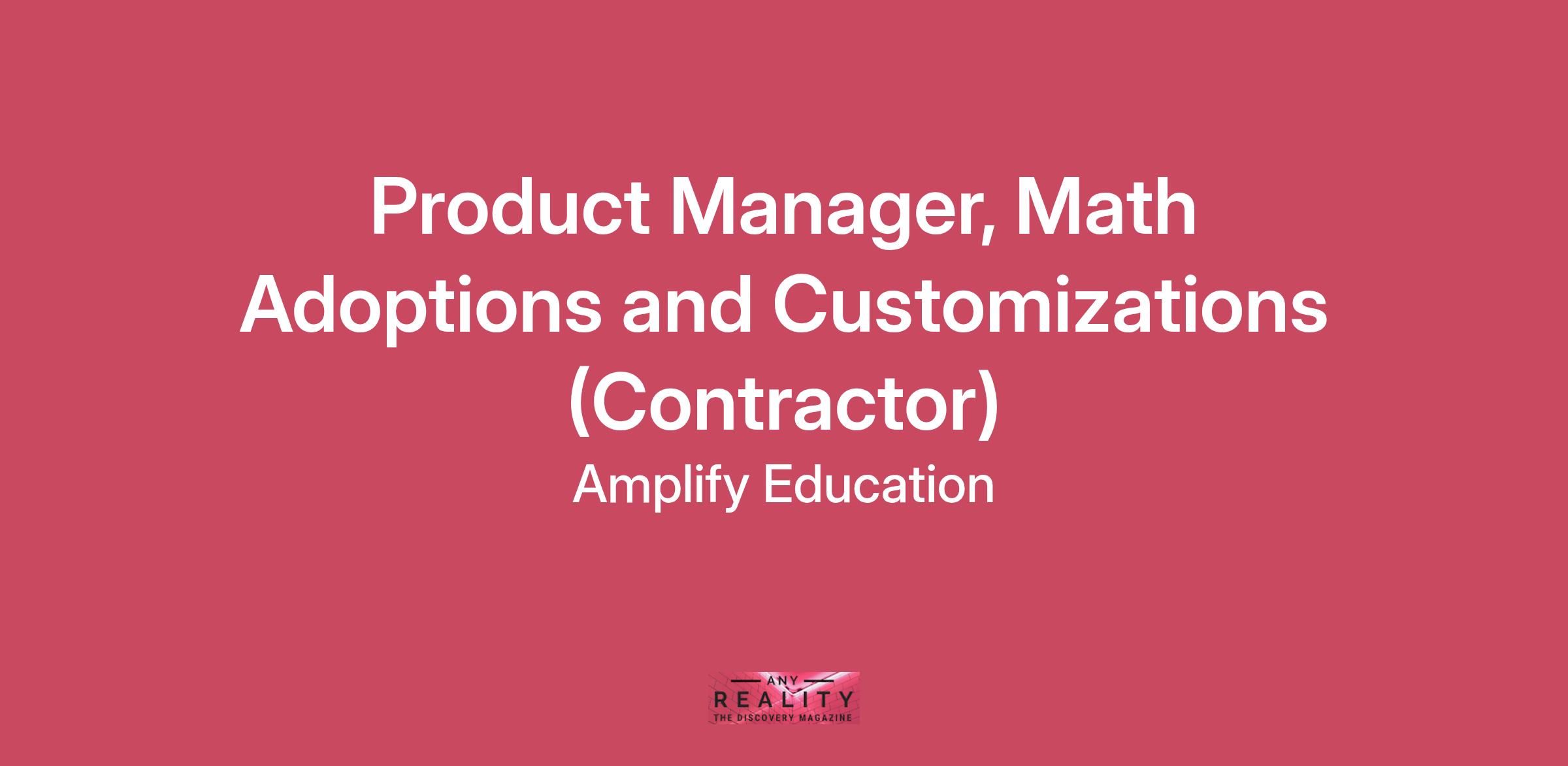 A pioneer in K–12 education since 2000, Amplify is leading the way in next-generation curriculum and assessment. Our core and supplemental programs in ELA, math, and science engage all students in rigorous learning and inspire them to think deeply, creatively, and for themselves. Our formative assessment products help teachers identify the targeted instruction students need to build a strong foundation in early reading and math. All of our programs provide educators with powerful tools that help them understand and respond to the needs of every student. Today, Amplify serves more than 15 million students in all 50 states. For more information, visit amplify.com.Job Description: The Product Manager, Math Adoptions and Customization will be a leader in building product solutions for math adoptions and custom math projects. The Product Manager will drive planning and execution in the research, design, and development of products built to serve students, teachers, and other education stakeholders in key adoption markets.Partnering with math leadership and key members of other internal teams, the Product Manager will lead research strategies that inform market fit for adoption opportunities. The Product Manager will help develop the vision for state-specific and custom products and programs, drive concept exploration, testing, and prototyping, help develop the product strategy, and ensure strong tactical execution against that plan. The Product Manager will work with colleagues from across departments to ensure the design and development of the program adheres to the product vision and remains aligned to customer needs in each adoption market. The Product Manager will serve as a champion and voice of the program with internal and external stakeholders for each state-specific program, working closely with the teams who help market, launch, sell, and support the program. The Product Manager will report to the Associate Director, Product, Math Adoptions and Customizations. Essential Responsibilities:State-Specific Market Research Lead research strategy and plan for custom projects, partnering with marketing, market research, curriculum, sales, and the core math directors to collect insights, understand market trends and requirements. Present insights to stakeholders and use market intelligence to direct product strategy and requirements. Work with Government Relations and Sales to exhaustively understand state expectations for product and submissions. Stay up to date on the trends in the math education market in adoption states and prepare briefs to share with leadership and the product team. Research the competitive product landscape to inform product, design, and development decisions. Integrate research findings into strategic planning and product development.Product Research and Design Collaborate with a cross-functional team to concept, design, and build out initiatives that target state-specific gaps and opportunities. Create and pitch initiatives grounded in research for inclusion in the product roadmap. Execute user testing of new product ideas and designs, including interviews, focus groups, advisors, and advisory boards. Lead planning and execution of prototype development and validation through user experience testing and live classroom sessions. Create research plans, interview participants, analyze data, and recommend actions based on findings.Build Customer and Sales Relationships Forge strong relationships with key districts in adoption states to build direct channels for insights and feedback. When possible, connect with state math education leaders to understand state-level educational trends. Work closely with the adoption state sales teams to collaborate on research, events/conferences, adoption roadmaps, and product strategy. Product Development and Leadership Serve as a leader of the cross-functional team to plan, develop, and deliver finished products. Communicate product goals and objectives regularly to your project team to motivate them. Regularly collaborate with team members, and be readily available to address questions, concerns, and blockers. Partner with the curriculum and design teams to ensure regular coordination of features and product design guidelines throughout the product development phase.Develop product briefs and requirements documentation that outline the product components, design, timeline, and goals to development and support teams.Collaborate with math supplemental, math assessment, and platform teams on the development of new features and functionality, prioritization and sequencing of deliverables on the platform roadmap, and advocating for math-specific needs. Ensure that the content and design of products built for state adoptions and RFPs are on time and meet the needs of the adoption and the business. Product Expertise Serve as an expert on the products, working with marketing, sales, and implementation teammates, as needed.Collaborate on customer-facing projects including training materials, pilot support, customer conversations, and sales meetings. Minimum Qualifications:BA/BS or equivalent experience2+ years of experience in K-12 product managementExperience designing and developing print and digital products for educationExperience with customer-facing research Ability to think strategically and consider impacts of product decisionsStrong organizational skills and great attention to detailExcellent verbal and written communication skillsStrong teamwork and interpersonal skillsStrong analytical and creative problem-solving skills Preferred Qualifications:Advanced degreeClassroom teaching experience at the elementary, middle, or high school levelBackground in mathematics education or related fieldExperience in market researchBackground in technology, design, user experienceClient service experience either in consulting or another fieldCompensation:The hourly rate range for this role is $55-$60.Amplify is an Equal Opportunity Employer. Ampl