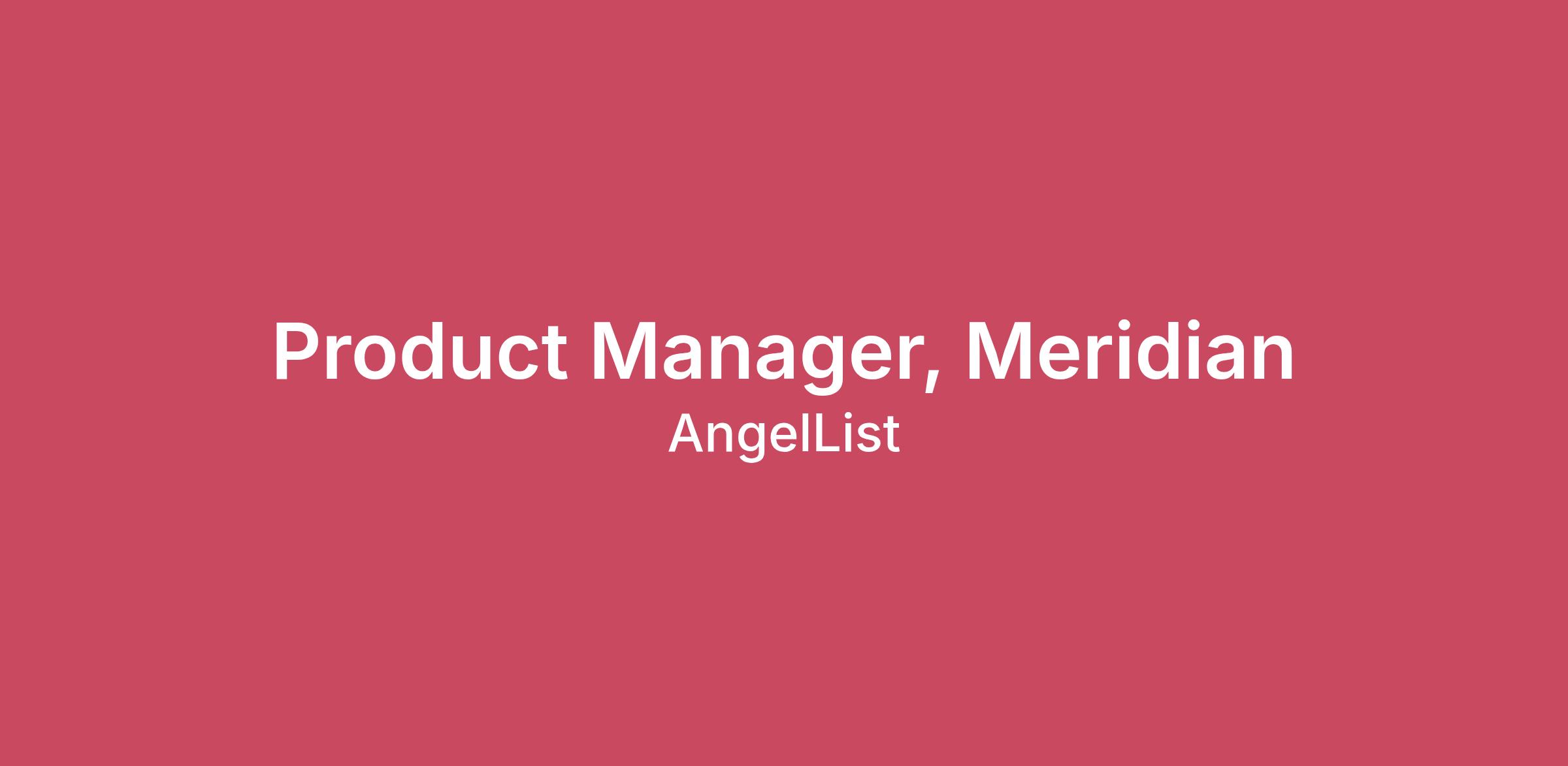 Why Join AngelList We’re solving some of the hardest problems in venture capital and private markets. You’ll work with a team that values precision, urgency, and long-term thinking. If you want to shape how startups are funded and built, this is the place.About AngelListWe exist to accelerate innovation by increasing the number of successful startups in the world. We do this by building the financial infrastructure that makes it easier for more people to invest in world-changing companies.AngelList is the nexus of venture capital and the startup community. We support $171B+ in assets and have powered investments into over 13,000 startups—over 300 of which are unicorns. Today, 57% of top-tier U.S. VC deals involve investors on AngelList. While our scale is large, our ambition is larger.If you're excited to build the future of private markets, come build with us.About the Role:Meridian is AngelList’s wealth platform for private markets. Meridian is building wealth products for the growing class of self-directed investors who want unique and direct access to private markets. Built on more than a decade of AngelList innovation, Meridian extends the platform that already supports founders and fund managers to serve investors now. Meridian is early, and this role presents an opportunity to help shape the next generation of products for private market investing.As a Product Manager on Meridian, you’ll own core investor-facing product areas—from onboarding and investing to portfolio insights and reporting. You’ll work from first principles to define the modern wealth platform for private markets. Your job is to turn customer insights, data, and regulatory constraints into elegant, performant experiences that deepen investor engagement and increase capital deployed.This is a hands-on, early-stage product role with meaningful scope. You’ll partner tightly with engineering, design, compliance, and the GM to ship high-quality product in a fast-moving, regulated environment.You will have the opportunity to:Own major product surfaces across investing and portfolio management, shaping what Meridian becomesBuild new products on top of AngelList infra, with real distribution advantagesTranslate insights and data into sharp, opinionated product decisionsPrioritize ruthlessly and drive clarity in ambiguous problem spacesCollaborate with engineering, design, legal, and operations to scope and sequence effectivelyPartner directly with the GM to influence product strategy and team directionWhat we’re looking for:5+ years of PM experience with full ownership across discovery, launch, and iterationExperience building fintech, private market, or regulated consumer productsStrong product judgment and taste, you know what good looks like and push for it0→1 product experience; comfort with ambiguity, tradeoffs, and limited resourcesFamiliarity with working across legal, compliance, and operational teamsHigh agency and urgency with a bias toward thoughtful executionExcitement about Meridian’s vision and the opportunity to help build a category-defining wealth platformWorking HereIf you don’t meet every requirement above, we still encourage you to apply. We value complementary strengths and operators who learn by doing.AngelList has offices in a few cities, New York City and San Francisco. We have a hybrid in-office model: teammates come in at least 2 days per week (Tuesdays and either Wednesday or Thursday). Exceptions may be made for exceptional individual contributor candidates in other locations.Compensation:The compensation for this role consists of a competitive base salary, benefits, and equity package. The base salary for this role is $200,000+ annually but actual will vary based on a number of factors including a candidate’s professional background, experience, and location. Full details about our Total Rewards package will be provided during the recruitment process.Benefits:We support your life both in and outside of work.Explore our benefitsLearn about Funders & FoundersWhat Guides Us:At AngelList, we are united in our purpose to accelerate innovation and build the future of private markets. Our beliefs and values shape what we work on and how we create impact. If the below resonate, we’d love to have you with us.Our beliefsOur values & leadership expectationsAngelList is an equal opportunity employer and we value diversity at our company. We do not discriminate on the basis of race, religion, color, national origin, gender, sexual orientation, age, marital status, veteran status, or disability status.