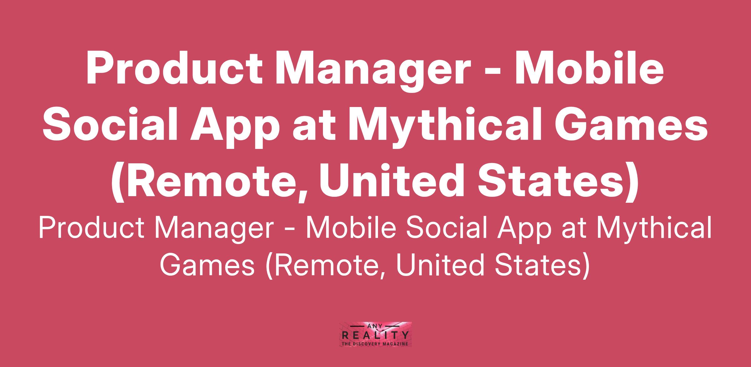 Product Manager - Mobile Social App at Mythical Games (Remote, United States)
