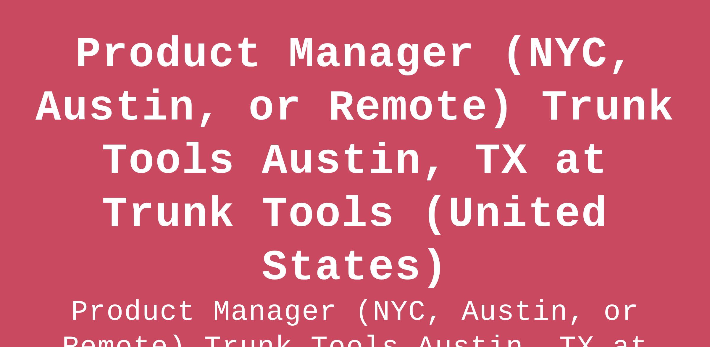 Product Manager (NYC, Austin, or Remote) Trunk Tools Austin, TX at Trunk Tools (United States)