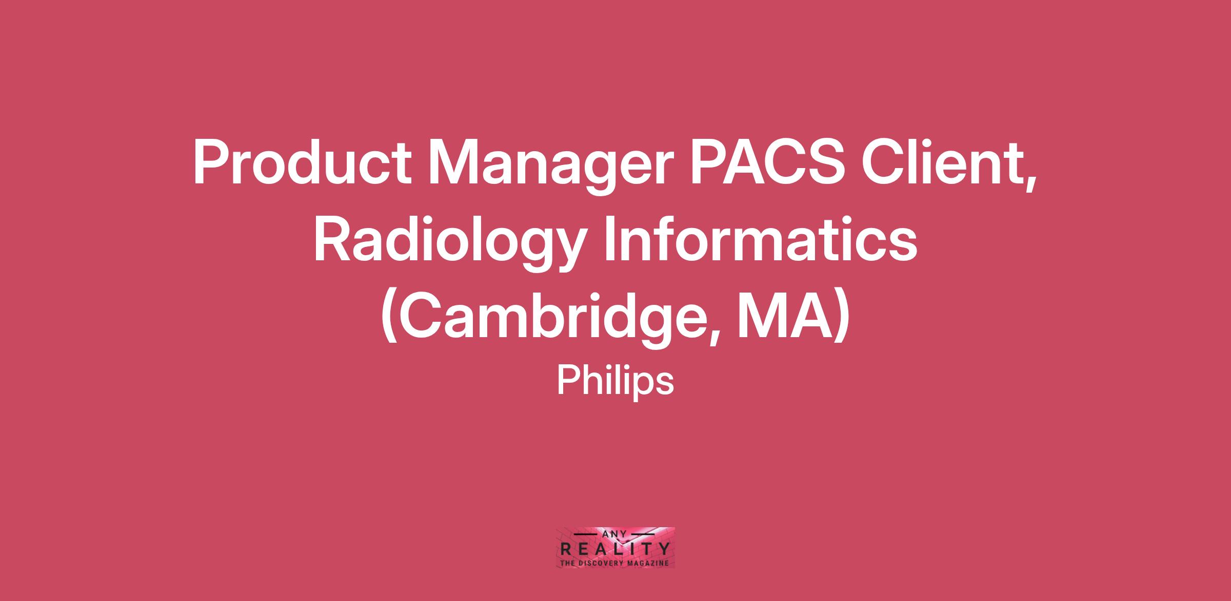 Job TitleProduct Manager PACS Client, Radiology Informatics (Cambridge, MA)Job DescriptionIn this role, you will drive the innovation roadmap of the Radiology PACS client for our Imaging Informatics business.Your role:Drive product innovation roadmap based on market segmentation, industry trends and customer signals, and in alignment with the overall Radiology Informatics portfolio strategyWork in close collaboration with a global multi-disciplinary team, ranging from product marketing, regional clinical consultants, to R&D teams and architectsCollaborate with customers in North America to define detailed use cases and review product requirementsAct as a thought leader and industry spokesperson within and outside of Philips, and represent us at relevant tradeshows.You're the right fit if: Bachelor's/ Master's Degree in Business Administration, Marketing, Engineering, Product Management or equivalent. You’ve acquired 10+ years of professional experience as clinical applications specialist and/or product management preferably within a medical device or healthcare information system regulated businessYou have a deep understanding of Radiology workflow & have PACS domain expertiseYou have experience in AI technology and its application in medical imaging and diagnostic workflows. You are detailed oriented, structured and analyticalYou have experience working across organizational boundaries, as well as in a global organization across various cultures and departmentsYou have a collaborative spirit. Given the significant influence management and cross-functional team alignment, enjoy working as part of a high performing, enthusiastic team You have international experience; cultural sensitivity and self-reliantYou must be able to successfully perform the following minimum Physical, Cognitive and Environmental job requirements with or without accommodation for this position.How we work together We believe that we are better together than apart. For our office-based teams, this means working in-person at least 3 days per week. Onsite roles require full-time presence in the company’s facilities. Field roles are most effectively done outside of the company’s main facilities, generally at the customers’ or suppliers’ locations.This is an office role. About PhilipsWe are a health technology company. We built our entire company around the belief that every human matters, and we won't stop until everybody everywhere has access to the quality healthcare that we all deserve. Do the work of your life to help improve the lives of others.Learn more about our business.Discover our rich and exciting history.Learn more about our purpose.Learn more about our culture.Philips Transparency Details The pay range for this position in AZ, AR, ID, IA, KS, KY, LA, ME, MS, MO, NE, NM, OK, SC, SD, TN, UT, or WV is $114,713 to $183,540.The pay range for this position in AL, CO, FL, GA, HI, IL, IN, MI, MN, NV, NH, NC, ND, OH, OR, PA, TX, VT, VA, WI, or WY is $120,750 to $193,200.The pay range for this position in AK, DE, MD, NY, RI, or WA is $126,788 to $202,860.The pay range for this position in CA, CT, DC, MA, or NJ is $9135,240 to $216,384.Target Earnings pay is only one component of the Philips Total Rewards compensation package, which includes a generous PTO, 401k (up to 7% match), HSA (with company contribution), stock purchase plan, education reimbursement and much more. Details about our benefits can be found here.No Sponsorship offered:“US work authorization is a precondition of employment. The company will not consider candidates who require sponsorship for a work-authorized visa." No Relocation:“Company relocation benefits will not be provided for this position."#LI-Office#LI-PH1This requisition is expected to stay active for 45 days but may close earlier if a successful candidate is selected or business necessity dictates. Interested candidates are encouraged to apply as soon as possible to ensure consideration.Philips is an Equal Employment and Opportunity Employer including Disability/Vets and maintains a drug-free workplace.