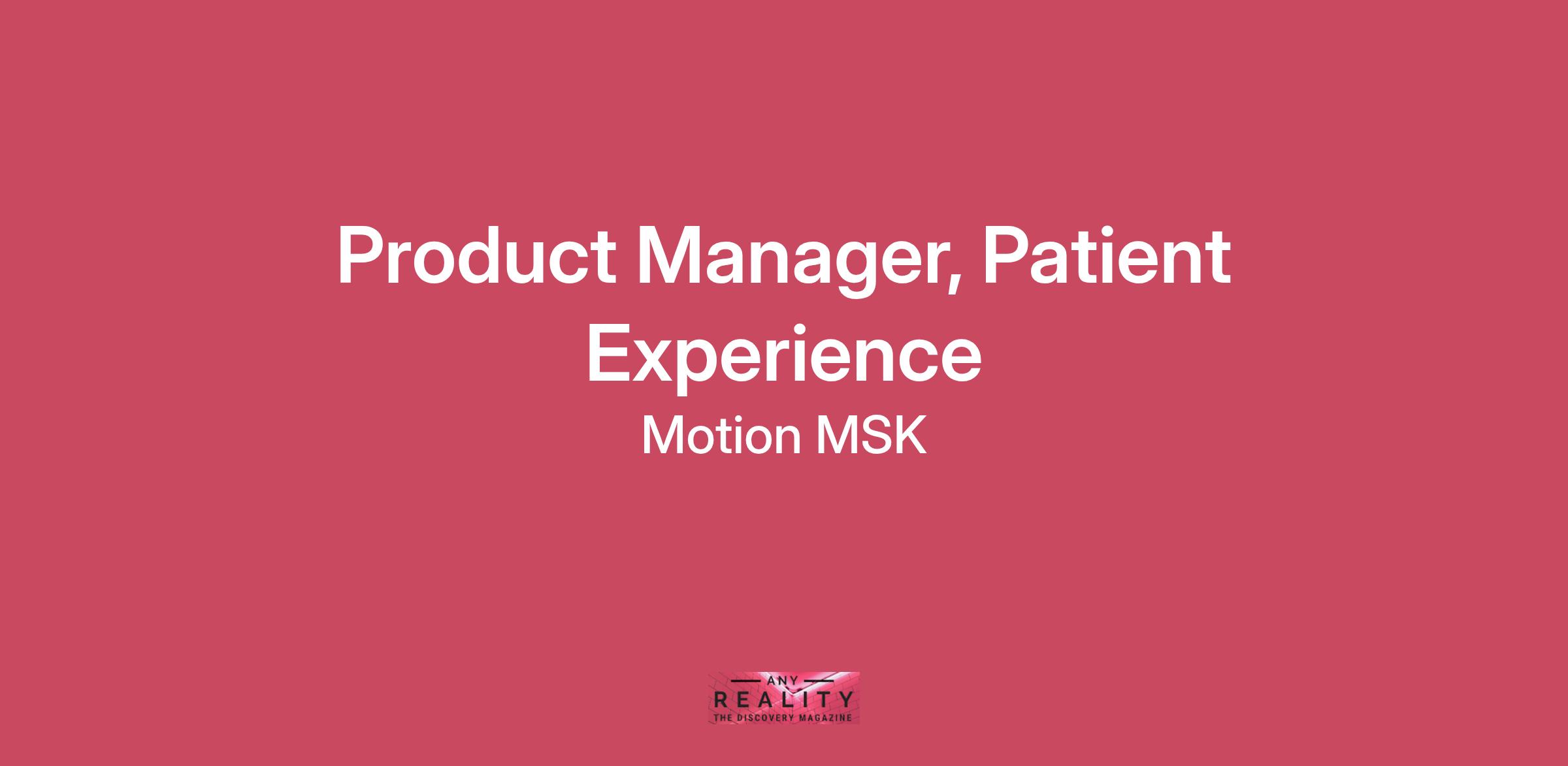 DescriptionAs our Product Manager of Patient Experience, you will own the end-to-end patient journey and all patient-facing technology. This is a unique opportunity to build from scratch - designing and launching a custom patient-facing application while fundamentally shaping how patients engage with our care model. You'll report directly to the Head of Clinical Product and serve as the voice of the patient across our organization.You will be a critical partner in executing our clinical strategy, translating clinical excellence into exceptional patient experiences. Your product decisions will directly shape how patients engage with our care model, influencing both clinical outcomes and the scalability of our value-based care approach.This role is ideal for someone who believes that exceptional user experience drives clinical outcomes, and that patient compliance begins with building products that patients genuinely love to use.What You’ll Do:Own the Patient Experience & Support Clinical StrategyDefine and own the complete end-to-end patient journey, from initial engagement through treatment completion and ongoing wellnessPartner closely with clinical leadership to translate our clinical strategy into patient-facing journeys and technology that reinforce our care modelConduct deep patient research, journey mapping, and user testing to understand pain points, moments of friction, and opportunities for delightEstablish patient experience metrics and relentlessly optimize for engagement, satisfaction, and clinical complianceIdentify opportunities where thoughtful product design can enhance clinical efficacy, improve care coordination, and drive better outcomes Lead Product DevelopmentDesign, build, and launch our patient platform that supports hybrid virtual and in-person MSK care deliveryStrategically integrate best-in-class functionalities and third-party solutions into a cohesive, seamless patient experience - prioritizing smart integration over building from scratchDefine product strategy, roadmap, and success metrics for all patient-facing digital touchpointsTranslate complex clinical workflows into intuitive, lovable user experiencesCreate technology solutions that operationalize our clinical protocols while remaining flexible to evolving care modelsWork closely with engineering, design, clinical and clinical operations teams and partners to ship high-quality products rapidlyDrive Adoption & ComplianceDesign features and experiences that drive high patient engagement and treatment plan adherenceCreate feedback loops to continuously learn from patient behavior and iterate rapidlyIdentify and eliminate barriers to patient compliance through thoughtful product designUse product design to reinforce clinical best practices and guide patients through evidence-based care pathwaysStrategic PartnershipServe as a key thought partner to clinical and clinical operations leadership, bringing a product and patient lens to strategic clinical decisionsLead cross functional teams to ensure each touchpoint is aligned to optimize patient experienceCollaborate with operations to ensure seamless integration between virtual and in-person experiencesWork with data and analytics teams to instrument the product and measure what mattersCommunicate product vision, strategy, and progress to executive leadership and stakeholdersProvide insights from patient behavior and feedback to inform broader clinical strategy evolutionRequirements5+ years of product management experience, including 2+ years in healthcare or digital healthProven experience designing and improving patient-facing experiencesExceptional user experience sensibility - you have strong opinions about what makes a product delightful and intuitive, and a portfolio that demonstrates itAbility to translate clinical workflows into simple, intuitive product experiencesSelf-sufficient product leader who can independently drive products from concept through launch and beyond with minimal oversightAbility to think strategically about how product and technology enable clinical and business objectivesDeep expertise in user research, journey mapping, and human-centered design methodologiesExperience leading cross-functional teams across engineering, design, and clinical stakeholdersDemonstrated ability to drive user engagement, retention, and behavior change through product designStrong analytical skills with and ability to define and track engagement and adherence metricsExcellent communicator who can influence without authority and partner closely with clinical leadershipPassion for improving healthcare experiences and patient outcomesMust be based in the United States and eligible to work without restriction or the need for employer sponsorship at any time.Preferred:Experience with telehealth or hybrid care delivery models, musculoskeletal care, physical therapy, or chronic condition management.Familiarity with EMRs, care coordination tools, or patient communication platformsExposure to behavior change, service design, or value-based careCompensation:$135 – $173k annual base salary. Final compensation will be determined based on experience, skills, location, and internal equity. BenefitsAt Motion, we know that providing great care starts with taking care of our team. That’s why we’re committed to supporting you both professionally and personally, offering a comprehensive set of benefits designed with your well-being in mind.Health Benefits: We’ve got you covered - literally. Our dental and vision plans are 100% company-paid and ALL our medical plans are up to 90% company-paid. Plus, 24/7 virtual care, family building assistance, HSA plans with up to a $1,000 company gift, FSAs, and more!Retirement Savings: Secure your future with our competitive retirement plans, which include a 100% company match on up to 4% of your salary to help you grow your savings.Paid Time Off: From 16 days of PTO to start (plus an additional week at your 3 year anniversary),