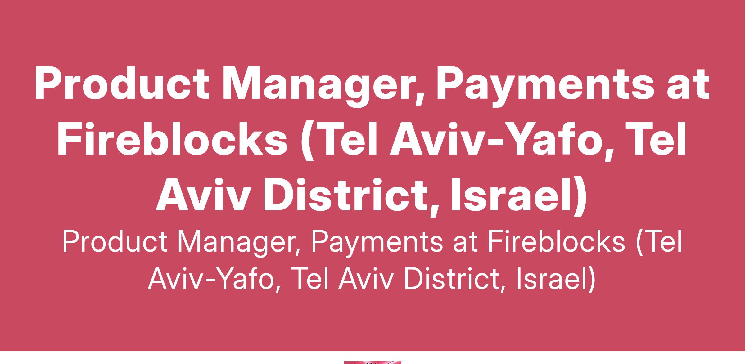 Product Manager, Payments at Fireblocks (Tel Aviv-Yafo, Tel Aviv District, Israel)