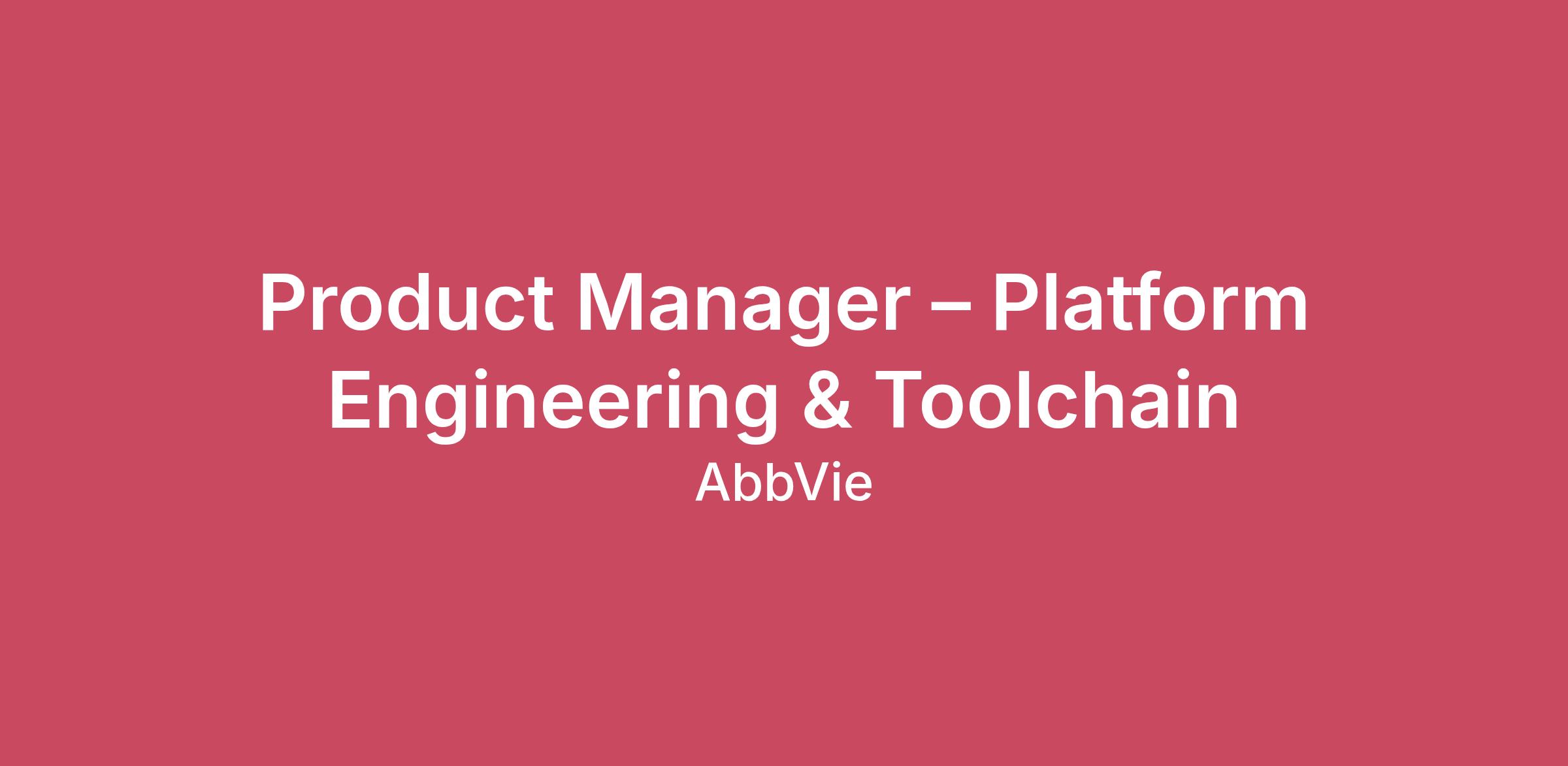 Company DescriptionAbout AbbVieAbbVie's mission is to discover and deliver innovative medicines and solutions that solve serious health issues today and address the medical challenges of tomorrow. We strive to have a remarkable impact on people's lives across several key therapeutic areas including immunology, oncology and neuroscience - and products and services in our Allergan Aesthetics portfolio. For more information about AbbVie, please visit us at www.abbvie.com. Follow @abbvie on LinkedIn, Facebook, Instagram, X and YouTube.Job DescriptionAbbVie’s Business Technology Solutions (BTS) Infrastructure, Architecture, and Innovation group is seeking a Product Manager with experience in Platform Engineering and Developer Experience, Internal Developer Toolchains and DevOps. This role supports product strategy, design and planning for multiple internal platform products that enable secure, compliant, scalable, and high-velocity software delivery across BTS. You contribute to internal platform products using product management best practices, embedding reliability, security, and compliance as differentiated capabilities while improving developer experience, operational efficiency, and time to value. Key Responsibilities: Facilitate outcome‑oriented alignment across business, engineering, and BTO stakeholders for a suite of Platform Engineering and Internal Developer Toolchain products, ensuring enterprise requirements (security, compliance, reliability, cost) are delivered as built-in platform value. Champion end-to-end product management from user research, discovery and ideation through launch, adoption, and continuous optimization of internal platforms. Own platform capabilities such as CI/CD pipelines, developer portals, artifact management, and observability. Treat compliance, security, and operational controls as first-class product features, embedding them directly into platforms and pipelines. Participate in user research, journey mapping, stakeholder engagement, and market analysis to drive platform product decisions. Focus engineering teams on the why. Own business outcomes and user problems, not solutions—deeply understand developer pain points before prescribing platform features. Work closely with Engineering, Security, Architecture, Legal, and Compliance teams to deliver platforms that are compliant-by-design, scalable, and reusable. Use data analytics, KPIs, and OKRs to measure product success, guide prioritization, and drive evidence-based, customer-centric decisions. Manage and refine backlog items: define epics and features, ensure clarity of requirements, and enable timely outcomes delivery using Agile (Scrum, Kanban) and Lean practices. Collaborate with other Product Managers to align platform strategies, manage interdependencies, and deliver a cohesive internal developer ecosystem. Guide cross-functional teams in delivering platform standards, paved roads, and self-service capabilities that accelerate product team delivery. Proactively monitor DevOps, Platform Engineering, cloud, and AI trends to ensure platform relevance, sustainability, and innovation. Facilitate outcome-oriented alignment across business, engineering, and BTO stakeholders, clearly communicating strategy, trade-offs, and progress. QualificationsRequired:Bachelor’s Degree with 7 years’ experience, master’s degree with 6 years’ experience, PhD and 2 years’ experience.Proven experience as a Product Manager contributing to platform, infrastructure, or internal developer-facing products. Knowledge of Agile product management, product discovery frameworks (Lean, Dual-Track Agile, Jobs-To-Be-Done Framework, Continuous Discovery), and outcome-based roadmapping. Strong understanding of Platform Engineering, DevOps, CI/CD, cloud platforms, infrastructure-as-code, and developer experience. Prior hands-on engineering experience or deep technical background in software delivery. Experience working with cross-disciplinary teams including Engineering, SRE, Security, and Architecture. Proven ability to engage engineering teams as a technical peer—can discuss architectural trade-offs, evaluate technical debt, and contribute to design discussions. Strong analytical, user empathy, and stakeholder management skills. Excellent communicator able to build trust, influence without authority, and align teams in a complex, matrixed enterprise environment. Preferred: Experience in regulated industries (pharma, healthcare, finance) with familiarity in GxP, SOX, GDPR, or similar frameworks. Hands-on exposure to Platform Engineering models (internal developer platforms, golden paths, paved roads). Experience delivering Compliance-as-a-Platform or Security-as-a-Platform capabilities. Background working closely with Cloud Engineering, SRE, or DevOps organizations. Ability to manage competing priorities and navigate ambiguity while driving business outcomes Why This Role Matters This role directly enables faster, safer, and more reliable delivery of digital products across AbbVie. By treating platform capabilities as products, the Product Manager will improve developer productivity, reduce operational and compliance risk, and scale engineering excellence across the enterprise. Additional InformationApplicable only to applicants applying to a position in any location with pay disclosure requirements under state or local law: The compensation range described below is the range of possible base pay compensation that the Company believes in good faith it will pay for this role at the time of this posting based on the job grade for this position. Individual compensation paid within this range will depend on many factors including geographic location, and we may ultimately pay more or less than the posted range. This range may be modified in the future. We offer a comprehensive package of benefits including paid time off (vacation, holidays, sick), medical/dental/vision insurance and 401(k) to eligible employees.This job