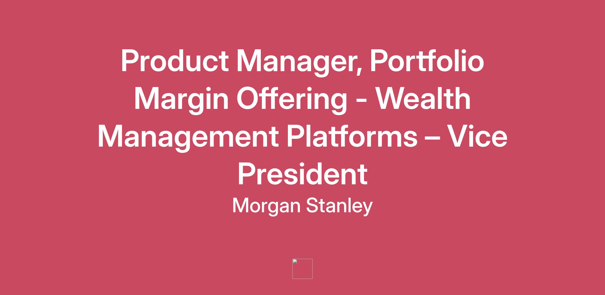 Product Manager, Portfolio Margin Offering - Wealth Management Platforms - Vice PresidentLocation: Chicago / PurchaseWe're looking for a senior leader to be part of the team in charge of the new phase of growth in the niche offering of Portfolio Margin. You will work with the Risk Management teams to build the next generation of Products that will enable the firm to manage Trading risk more effectively.The candidate is expected to articulate a clear strategy for the path forward, and get buy in with all the key stakeholders in Risk, Product, Sales and Service and Legal and Compliance teamsThe desired candidate should be a self-starter, a problem solver and must be driven to solve complex business issues.About Morgan StanleyMorgan Stanley is a leading global financial services firm providing a wide range of investment banking, securities, investment management and wealth management services. The Firm's employees serve clients worldwide including corporations, governments and individuals from more than 1,200 offices in 43 countries.Morgan Stanley is committed to helping its employees build meaningful careers and we strive to be a place for people to learn, achieve and grow.Department OverviewIn the Wealth Management division, we help people, businesses and institutions build, preserve, and manage wealth so they can pursue their financial goalsMore than 30 years ago, E*TRADE pioneered the online brokerage industry by executing the first-ever electronic individual investor trade. While the landscape of our industry has changed dramatically, our culture of innovation and drive to make online trading accessible to everyone continues to drive us forward. We believe in challenging the status quo, fostering an environment of curiosity and learning, and, above all, putting our customers first.What you'll do in the role:Work with leadership and stakeholders to articulate a clear growth plan with actionable roadmap of deliverablesSocialize the plan with the broader organization to gain acceptanceDefine the client journey to create user persona that will allow the firm to gain a deeper understanding of how these clients interact with the Product, what tool do they do they use, what is their trading pattern etcLeverage findings to guide the design and building of the next set of Product features aimed at capturing market shares and creating stickiness with current customersUtilize strong analytical skills to identify, evaluate and define complex systems.Create product artifacts (business requirements, functional requirements, migration plans, communication plans, project updates for senior management) and gain approval from business and technology leadersWork with Partners in Risk, Sales and Service, UX and channels teams to create the best experience for this group of highly sophisticated clientsDrive forward the next phase of growth of a product with high potential to new height but in a very strategic and thoughtful way.Work with Risk teams to understand their unique needs and help them build the next generation of tools to help the firm manage riskSkills Required:Minimum of 9 years of transferrable experience across work and higher education.Proven track record of building and launching new products for retail clients and/or internal stakeholders.Deep knowledge of Option pricing models and associated risk managementAbility to synthetize and model large data set to extract valuable information that can help deepen understanding of the risk or uncover insight to help better manage the productExperience building and launching client facing applicationsExperience managing a revenue generating productRisk Management and data modeling is highly desirable WHAT YOU CAN EXPECT FROM MORGAN STANLEY: We are committed to maintaining the first-class service and high standard of excellence that have defined Morgan Stanley for over 89 years. Our values - putting clients first, doing the right thing, leading with exceptional ideas, committing to diversity and inclusion, and giving back - aren’t just beliefs, they guide the decisions we make every day to do what's best for our clients, communities and more than 80,000 employees in 1,200 offices across 42 countries. At Morgan Stanley, you’ll find an opportunity to work alongside the best and the brightest, in an environment where you are supported and empowered. Our teams are relentless collaborators and creative thinkers, fueled by their diverse backgrounds and experiences. We are proud to support our employees and their families at every point along their work-life journey, offering some of the most attractive and comprehensive employee benefits and perks in the industry. There’s also ample opportunity to move about the business for those who show passion and grit in their work.To learn more about our offices across the globe, please copy and paste https://www.morganstanley.com/about-us/global-offices into your browser.IllinoisSalary range for the position: $110,000 and $190,000 per year. The successful candidate may be eligible for an annual discretionary incentive compensation award. The successful candidate may be eligible to participate in the relevant business unit’s incentive compensation plan, which also may include a discretionary bonus component. Morgan Stanley offers a full spectrum of benefits, including Medical, Prescription Drug, Dental, Vision, Health Savings Account, Dependent Day Care Savings Account, Life Insurance, Disability and Other Insurance Plans, Paid Time Off (including Sick Leave consistent with state and local law, Parental Leave and 20 Vacation Days annually), 10 Paid Holidays, 401(k), and Short/Long Term Disability, in addition to other special perks reserved for our employees. Please visit mybenefits.morganstanley.com to learn more about our benefit offerings.New YorkExpected base pay rates for the role will be between $110,000 and $190,000 per [year at the commencement of employment. However, base pay if hired will be determi