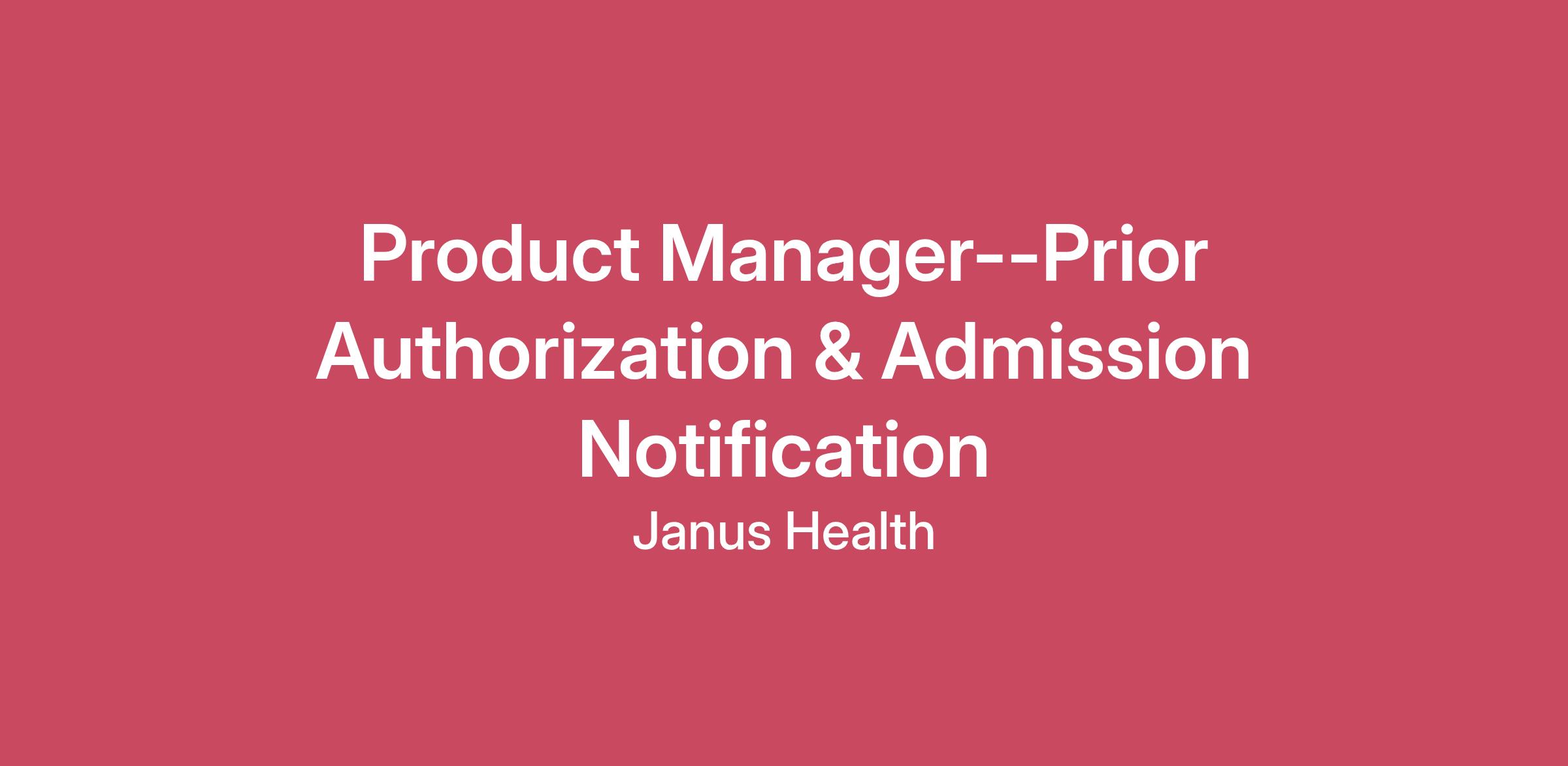 Product Manager--Prior Authorization & Admission Notification