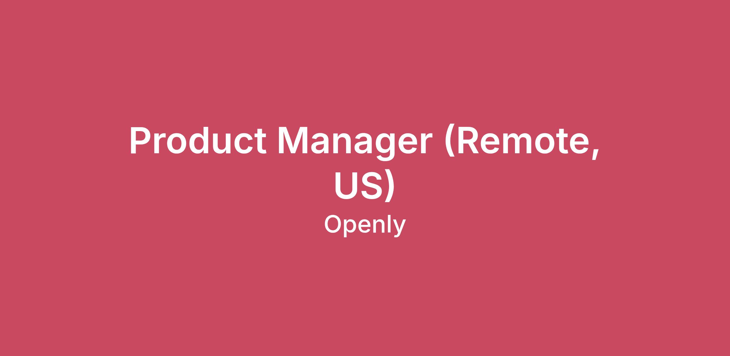 Why Openly Openly is rebuilding insurance from the ground up. We are re-envisioning and enhancing every aspect of the customer experience. Doing this requires a rapidly growing team of exceptional, curious, empathetic people with a wide range of skill sets, spanning technology, data science, product, marketing, sales, service, claims handling, finance, etc. The Openly Difference We created Openly because we saw an evident gap in the market for premium insurance made simple. Consumers deserve more complete coverage at competitive prices. The Price Difference: Using cutting-edge data and technology, we provide you with customizable, competitive prices to protect your most valuable assets. The Policy Difference: Coverages are truly customizable to meet your individual protection needs, for both standard coverages and optional add-ons. The Experience Difference: From tailored claims handling to highly responsive customer service, we are focused on making the home insurance purchasing process a better overall experience. Welcome to your next adventure. At Openly, our people are just as important as our product. For us, collaboration, communication, and work-life balance are more than nice-to-haves— they’re the must-haves that make us who we are. We believe a great company is the result of a shared set of values, so we look for these qualities in every candidate we hire. Integrity Empathy Teamwork Curiosity Urgency We've designed our hiring process with you, the candidate, in mind. At every step, you have the chance to present your strengths and learn more about what makes Openly a great place to work. We're committed to Diversity, Equity, & Inclusion We embrace individuality and believe diverse teams are winning teams. Our commitment to inclusion across race, gender, age, religion, identity, and experience drives us forward every day.Job Details As a Product Manager, you will own the execution of state-level insurance product updates, a highly regulated and detail-oriented area of Openly’s business. In this role, you will work at the intersection of Insurance Product, Engineering, and Operations to translate stakeholder-defined priorities into clear requirements, coordinated execution, and accurate, on-time delivery. Key Responsibilities Own end-to-end execution of state-level product updates, from intake of requirements through release and post-launch follow-up Partner with Insurance Product and business stakeholders to clarify priorities, scope, and sequencing Translate regulatory and underwriting requirements into clear product requirements, timelines, and dependencies for Engineering teams Maintain an execution-focused roadmap reflecting stakeholder-defined priorities and regulatory deadlines Coordinate cross-functional execution, proactively managing dependencies, risks, and trade-offs Support operational readiness and change management, including release notes, training, and internal and external communications Maintain clear tracking of state requirements, decisions, timelines, and progress to ensure shared visibility and accountability Monitor releases post-launch and coordinate follow-up work as needed Requirements 2-4 years of experience in Product Management or a related role Professional experience in personal lines insurance, with strong knowledge of insurance product management and familiarity with state regulations Experience executing regulated product changes with fixed timelines and low tolerance for error Strong organizational and project management skills, including managing multiple state-specific workstreams at the same time Proven ability to translate complex requirements into clear, actionable execution plans that can be understood across teams Clear and effective communicator, especially in written documentation Comfortable operating as a coordination layer between business stakeholders and Engineering teams Ability to navigate ambiguity, ask clarifying questions, and drive work to completion Customer and operations aware mindset, with attention to downstream impact and stakeholder management Compensation & Benefits: Below is the budgeted salary range for this position. Actual compensation for this position will be determined based on the successful candidate's experience and skills. We are committed to providing a compensation package that not only reflects the responsibilities and requirements of the role, but also the unique expertise that the chosen candidate will bring to our team.Budgeted Salary Range$124,640 - $148,000 USDThe full salary range shows the min to max salary range for this position. Actual compensation will be commensurate with experience and qualifications and determined based on various factors including the candidate's qualifications, skills, and experience.Full Salary Range$116,850 - $194,750 USDBenefits & Perks Remote-First Culture - We supported #remotelife long before it was a given. We'll keep promoting it. Competitive Salary & Equity Comprehensive Medical, Dental, and Vision Plan Offerings Life and disability coverage including voluntary options Parental Leave - up to 8 weeks (320 hours) of paid parental leave based on meeting eligibility requirements(Birthing parents may be eligible for additional leave through STD) 401K Company Contribution - Openly contributes 3% of the employee's gross income, even if the employee does not contribute. Work-from-home stipend - We provide a $1,500 allowance to spend on setting up your home workplace Annual Professional Development Fund: Each employee has $2,000 in professional development (PD) funds to spend on activities or resources annually. We want each Openly employee to achieve personal and professional success and to feel supported, confident, and informed about improving their efficiency and productivity. Be Well Program - Employees receive $50 per month to use towards your overall well-being Paid Volunteer Service Hours Referral Program and Reward Depending on position, Employees generally