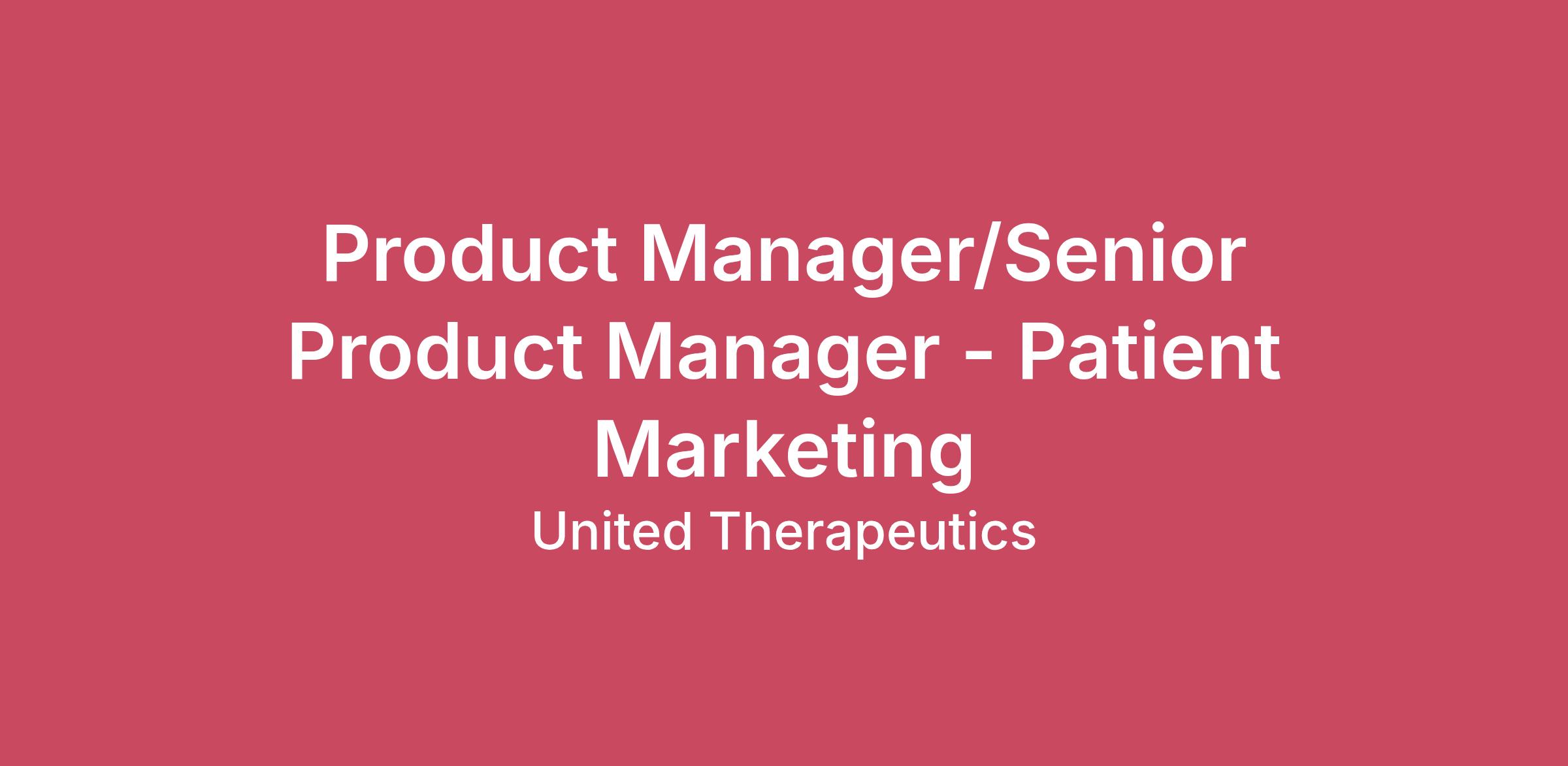 California, US residents click here.The job details are as follows:Who We AreWe are the first publicly-traded biotech or pharmaceutical company to take the form of a public benefit corporation. Our public benefit purpose is to provide a brighter future for patients through the development of novel pharmaceutical therapies; and technologies that expand the availability of transplantable organs. United Therapeutics (Nasdaq: UTHR) seeks to travel down the corridors of indifference to develop treatments for rare, deadly diseases. We were founded in 1996 by a family seeking a cure for their daughter’s pulmonary arterial hypertension (PAH). Today, we have six FDA-approved therapies that treat PAH, pulmonary hypertension associated with interstitial lung disease (PH-ILD) and neuroblastoma, a rare pediatric cancer. Our near-term pipeline seeks to develop additional therapies for PAH and pulmonary fibrosis (PF). The cure for end-stage life-threatening diseases like PAH, PH-ILD, PF, and many others is an organ transplant, but only a small percentage of donated organs are available to address the vast need. For this reason, we are working to create manufactured organs to address the shortage of kidneys, hearts, lungs, and livers available for transplant. We believe an unlimited supply of tolerable, transplantable organs will eliminate the transplant waiting list and cure end-stage organ diseases for which transplant is not currently an option.Who You AreIf you’re energized by turning patient insights into strategy – and owning strategy through execution to meaningfully impact real patients - this role is for you. As a Product Manager or Senior Product Manager, Patient Marketing, you will lead critical, patient-facing initiatives across the journey of two brands, playing a key role in shaping and elevating the patient experience. This role is for a passionate marketer who will define how patients engage with our brands across channels including CRM, paid and social media, web, printed resources and patient events. From concept to launch to ongoing optimization, you’ll drive patient initiatives end-to-end and collaborate closely with other marketers, digital transformation, cross-functional teams and agencies. If you enjoy translating strategy into action, thrive in a face-paced environment, and want to make a lasting mark on the patient experience, we’d love to connect.The Product Manager, Patient Marketing will assist in the development of patient strategies and the development and execution of patient tactics to achieve the brand goals for commercialized products under the oversight and guidance of the brand lead.The Senior Product Manager, Patient Marketing contributes to developing the patient strategy and proposing, developing and executing patient initiatives to achieve the brand goals for commercialized products. Work independently to manage marketing initiatives and tactics for assigned projects targeting patients. Lead tactical efforts through conception, development, review, production, and dissemination. Work collaboratively with agency(s) and internal partners to deliver assigned tacticsAssist with development of annual marketing plans (brand strategy, positioning, messaging, tactics) under direction of brand lead and champion the plan with internal and external partnersAssist in determining and tracking key performance indicators (KPI) for owned tactics and initativesEffectively manage individual project budgets and timelinesAssist with market research initiatives to learn insights for the brand and patient audienceCommunicate effectively with all stakeholders to ensure consistent alignment on all projectsDemonstrate command of disease state, product portfolio, competitors, patient experience, and payer landscapeManage reviews of patient promotional materials with legal, medical, regulatory in promotional review board (PRB) discussionsCollaborate within marketing and cross-functional teams including sales, training, patient relations, patient advocacyPerform other duties as assignedFor this role you will needMinimum Requirements for Product Manager Level5+ years of experience in pharmaceutical, biotech, or medical device marketing with a Bachelor's Degree or 3+ years of experience in pharmaceutical, biotech, or medical device marketing with a Master's Degree2+ years of experience in patient marketingExperience with digital tactics such as social, web, paid mediaExperience with CRM development, execution and measurementSeek to develop collaborative relationships with internal and external partnersSelf-motivated, able to work independently and prioritize tasksComfortable with fast-paced environment and possess strong organizational skills and ability to multi-taskExperienced with Microsoft Office Suite (Excel, Outlook, Powerpoint, Teams, Word)Minimum Requirements for Senior Product Manager Level8+ years of experience in pharmaceutical, biotech, or medical device marketing with a Bachelor's Degree or 6+ years of experience in pharmaceutical, biotech, or medical device marketing with a Master's Degree4+ years of experience in patient marketingExperience with digital tactics such as social, web, and paid mediaExperience with CRM development, execution and measurementExcels in a fast-paced environment and possesses strong organizational skills and ability to multi-taskSelf-motivated, willing to work independently, and prioritize tasksDevelops collaborative relationships with internal and external partnersSeeks to lead and deliver initiativesProficiency with Microsoft Office Suite (Excel, Outlook, Powerpoint, Teams, Word)Preferred QualificationsMaster’s Degree in a relevant discipline3+ years of experience in pharmaceutical, biotech, or medical device salesExperience with HCP CRM and other NPP effortsEligible employees may participate in the Company’s comprehensive benefits suite of programs, including medical / dental / vision / prescription coverage, employee wellness resources